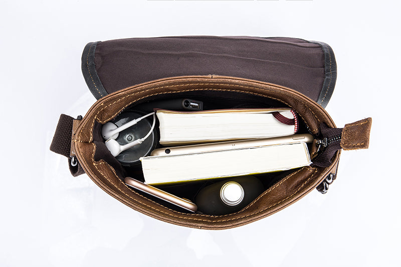 - Spacious Compartments: With multiple compartments, this small messenger bag provides ample space for your belongings.1 flap front slip pocket,the main compartment can hold a 7.9inch ipad mini, while the back zip pocket are perfect for storing your phone, wallet, and other small items.