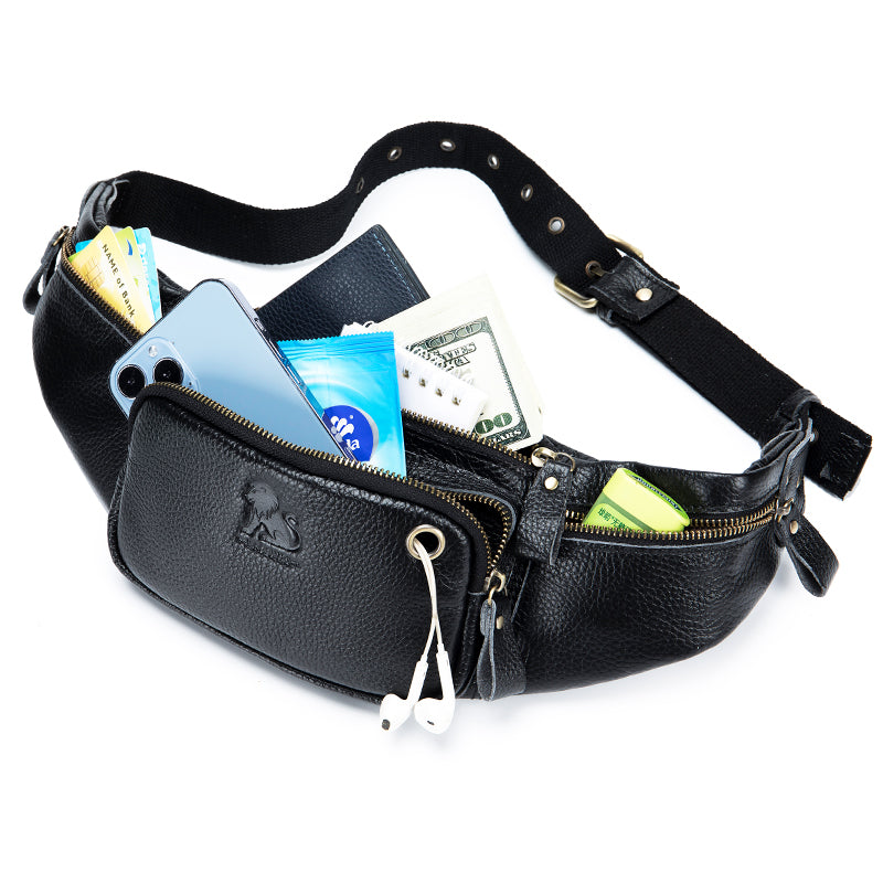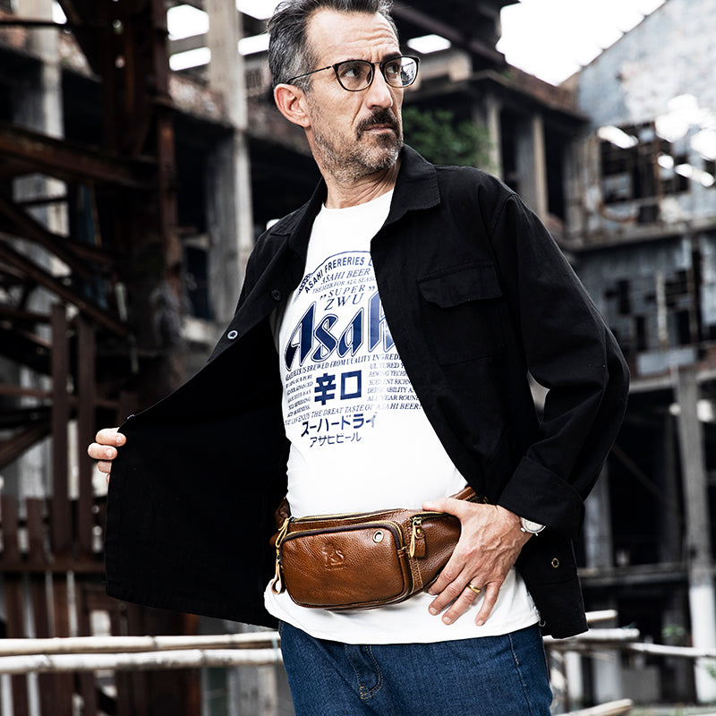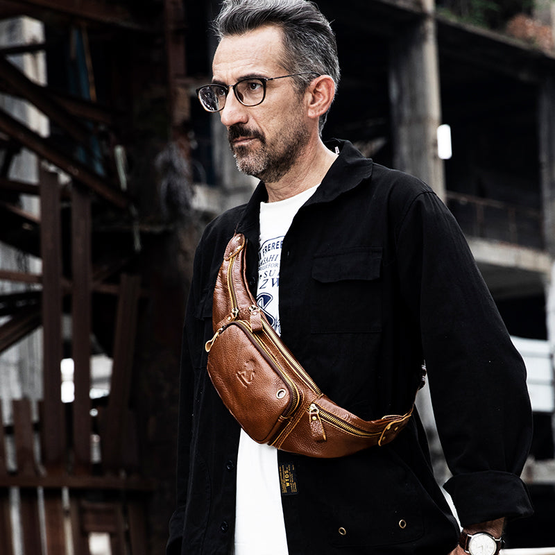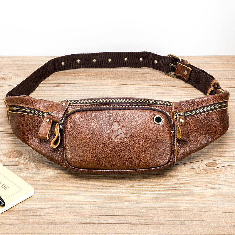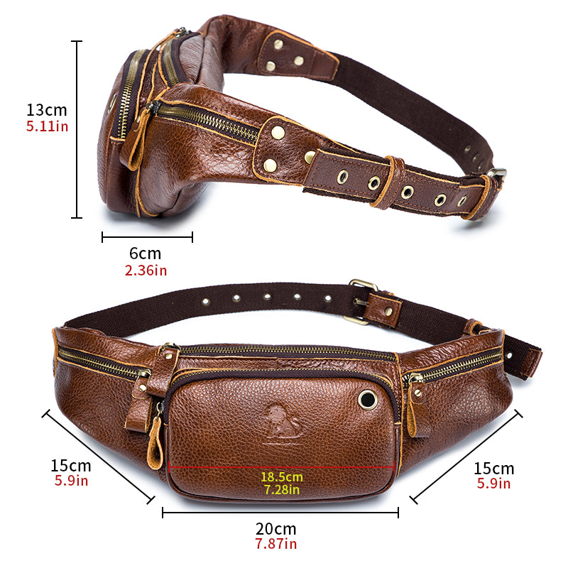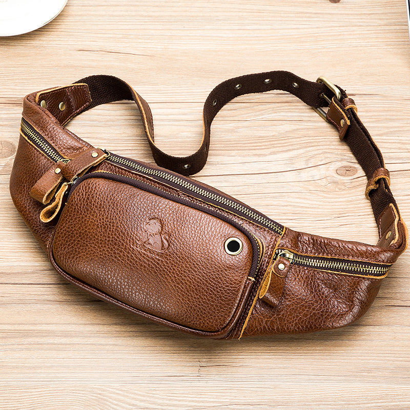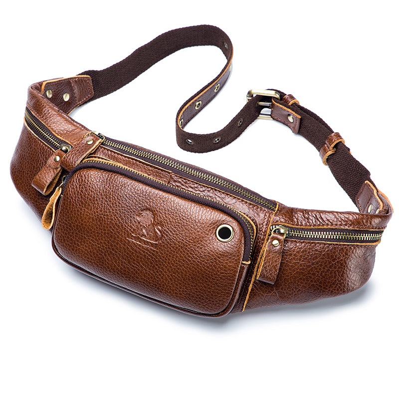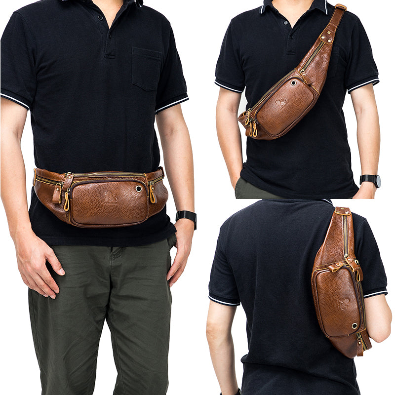 Genuine Leather Fanny Pack Waist Bag Shoulder Hiking Running Bag