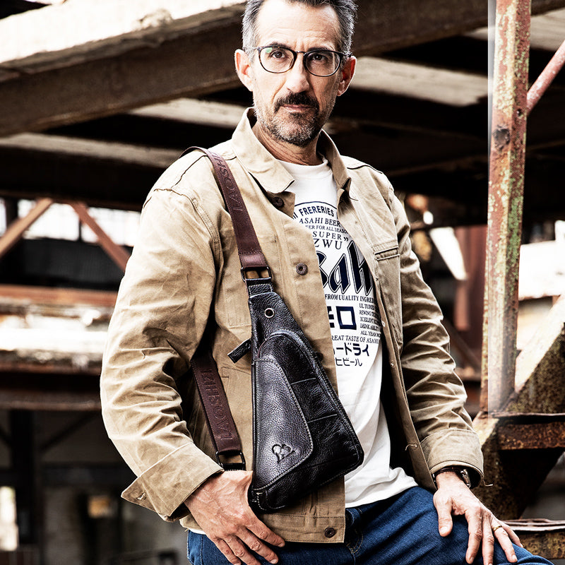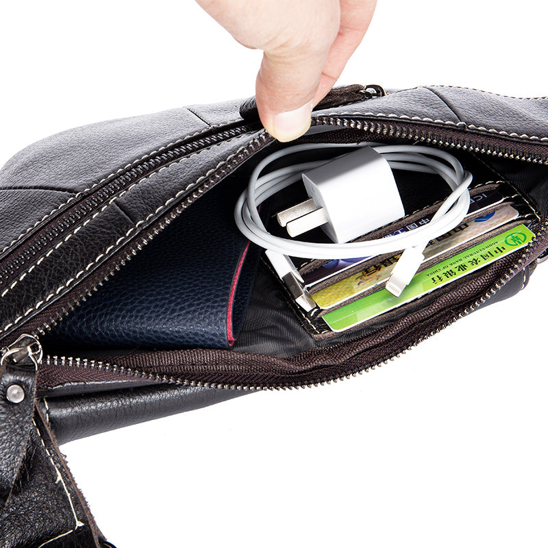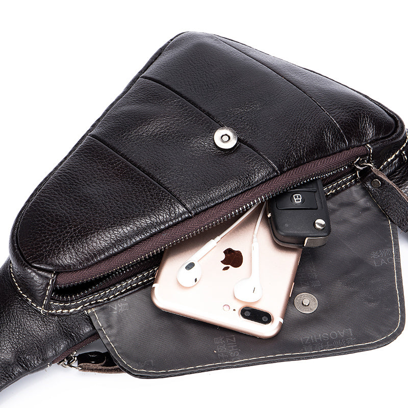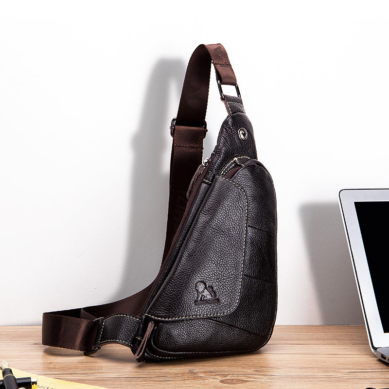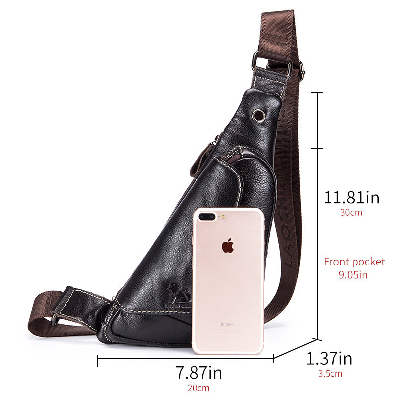 Leather Sling Bag for Men Women Casual Crossbody Small Chest Bag
