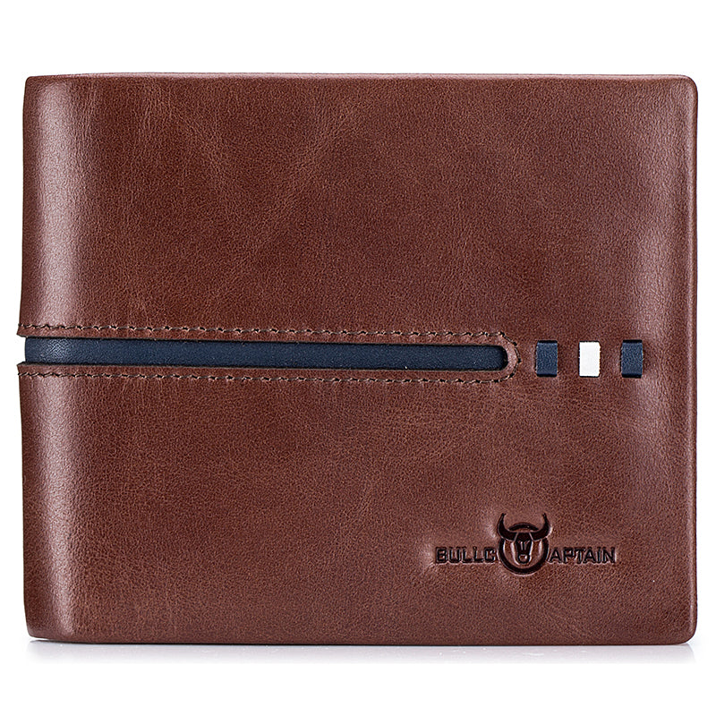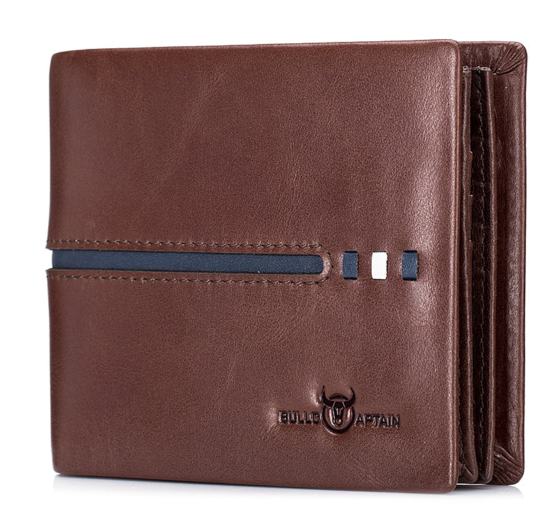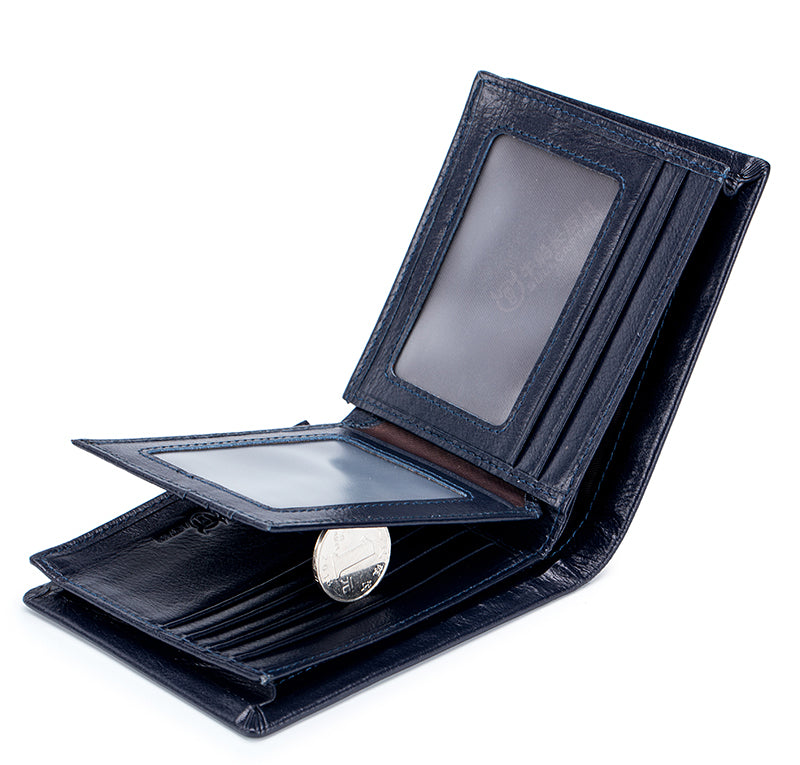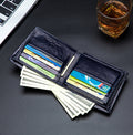 Men Genuine Leather RFID Blocking Bifold Wallet With 2 ID Windows