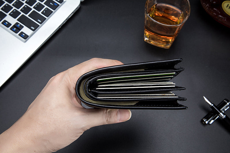 - RFID BLOCKING: RFID protective lining is equipped in the leather wallet interlayer. It can protect your card information from unauthorized scanning and ensure the safety of your personal and financial information.