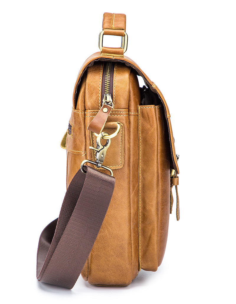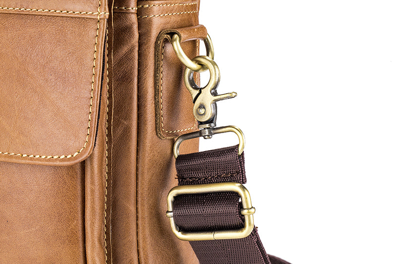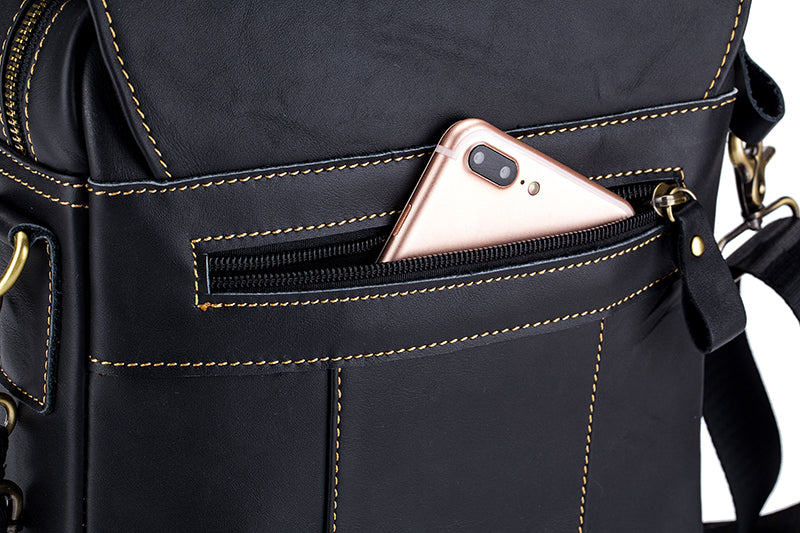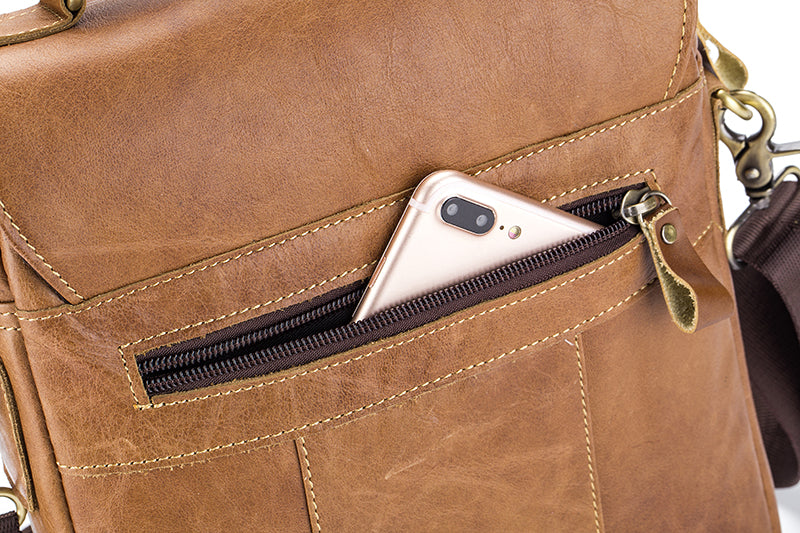 - INNOVATIVE DESIGN: Compared with other shoulder bag, this casual leather messenger bag designed with more practical to meet your daily use---2 outer pockets and 3 inner small pockets for putting your bottle,passport,phone,camera,pens,flashlight,power bank,books,umbrella, cards, wallet, key, earphone and anything in their right position.