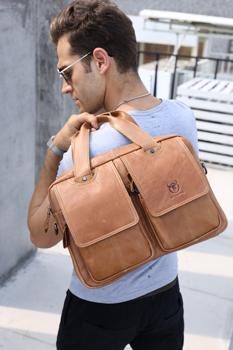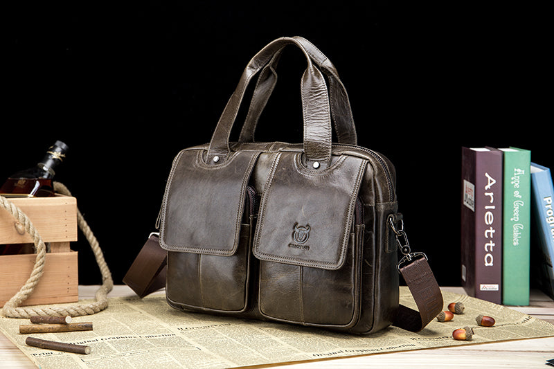 - Upgrade your business-casual look with the Men's Leather Handbag Business Casual Briefcase Laptop Bag. This premium leather bag is designed to meet the needs of modern professionals who want to stay organized and stylish on the go.