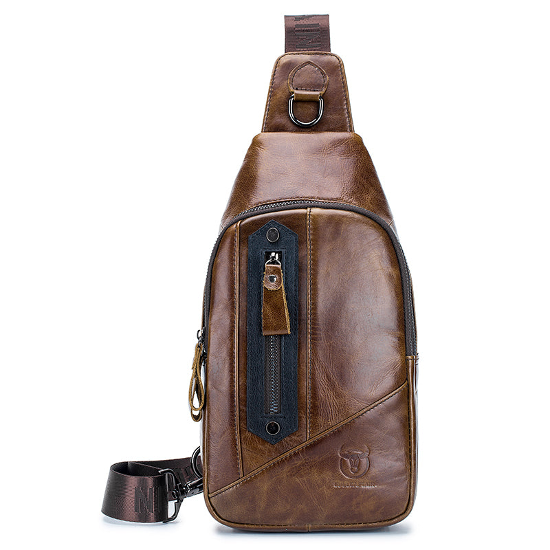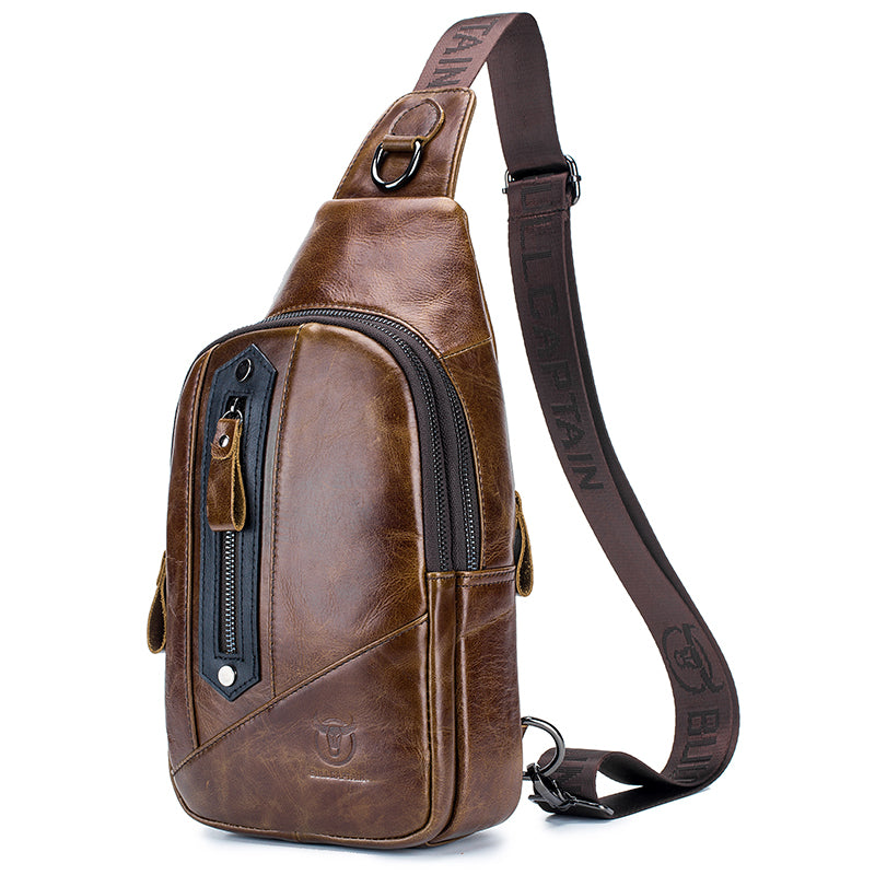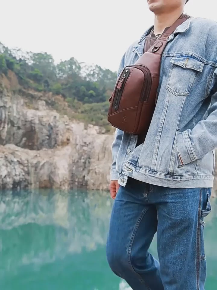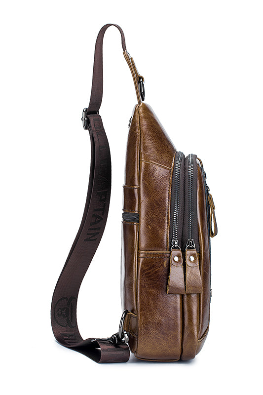 Men Leather Sling Bag Casual Crossbody Shoulder Backpack Chest Bag