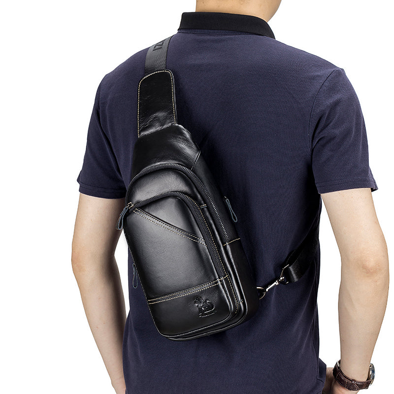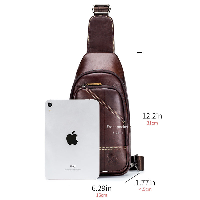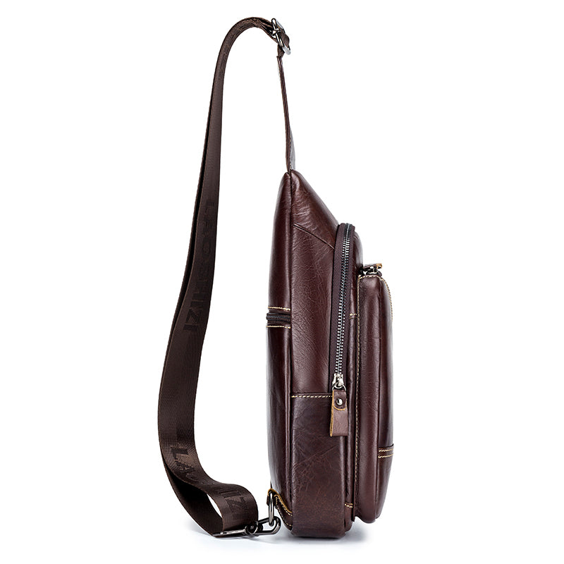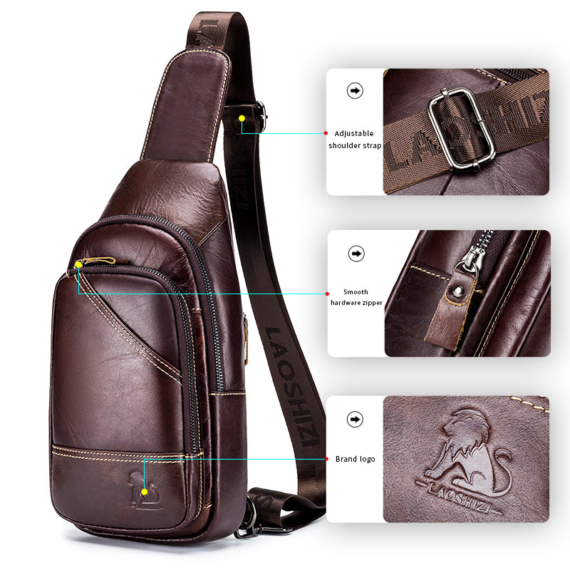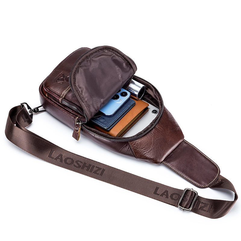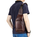 Men Leather Sling Bag Multi-pocket Crossbody Chest Hiking Daypack