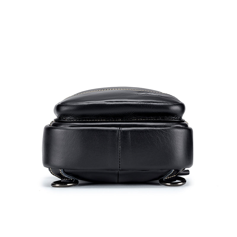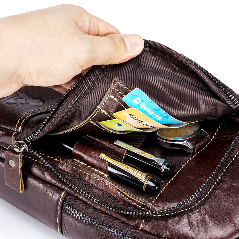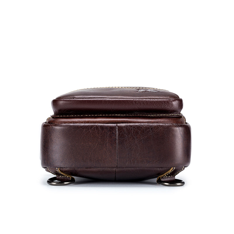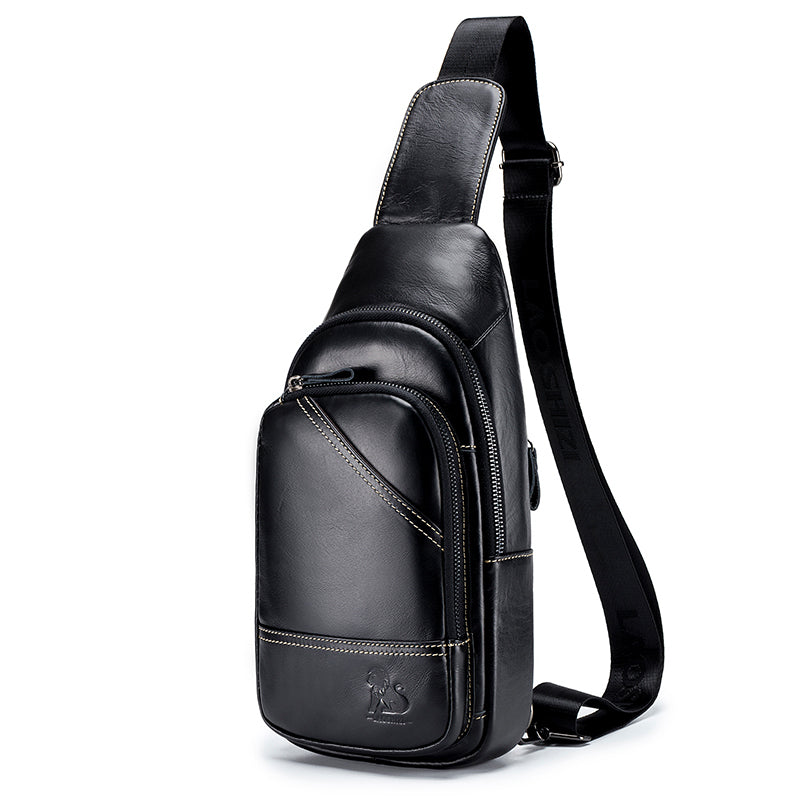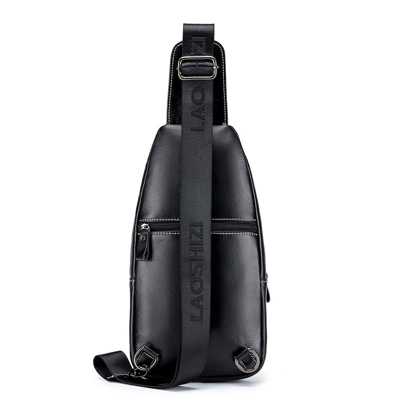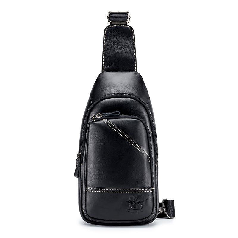 Men Leather Sling Bag Multi-pocket Crossbody Chest Hiking Daypack