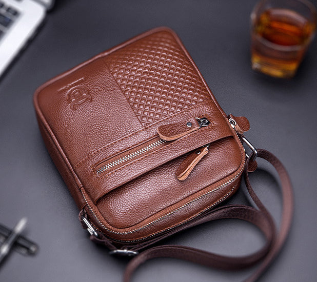 Men Leather Small Shoulder Bag Fashion Design Messenger Work Bag