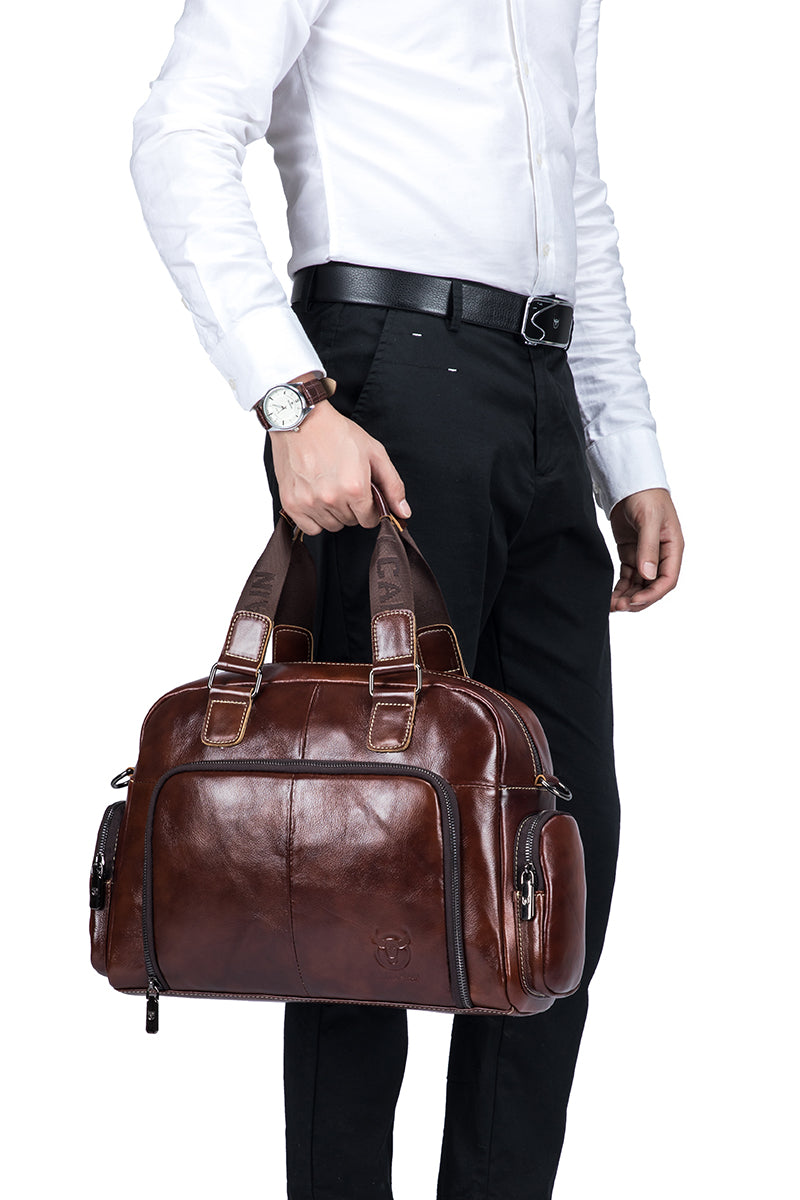 Timeless Style: The Leather Duffle Bag features a classic design with fine stitching details and high quality hardware, exuding sophistication and elegance that never go out of style.