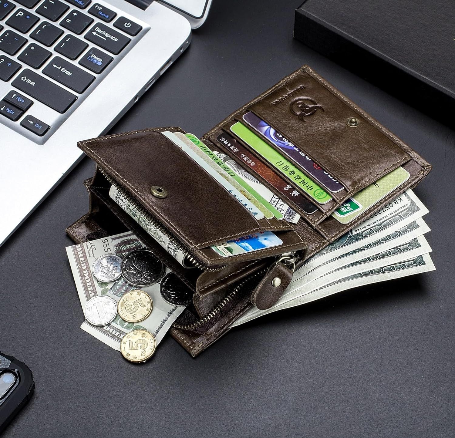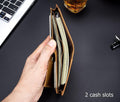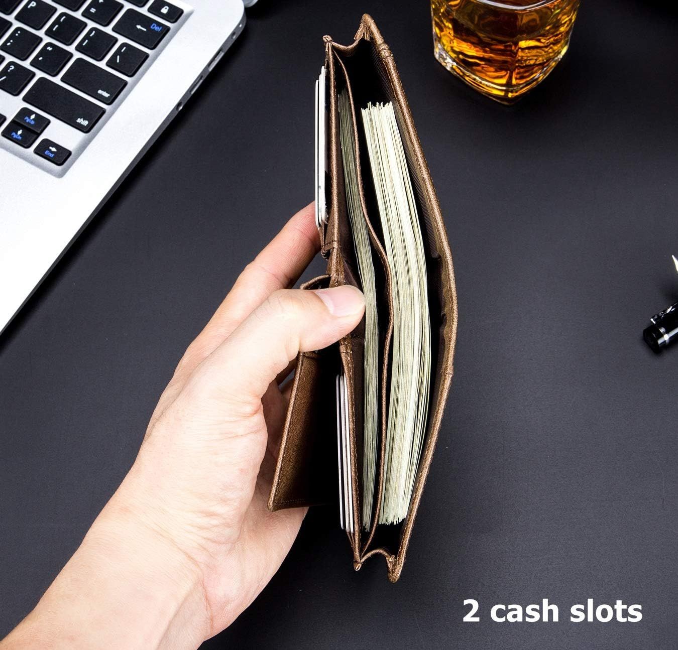 - EXCELLENT WALLET:This sturdy wallet is handcrafted with great attention to all small details. All card slots are carefully stitched and never get broken even if you use it for years,give user a traditional high quanlity and feeling.
