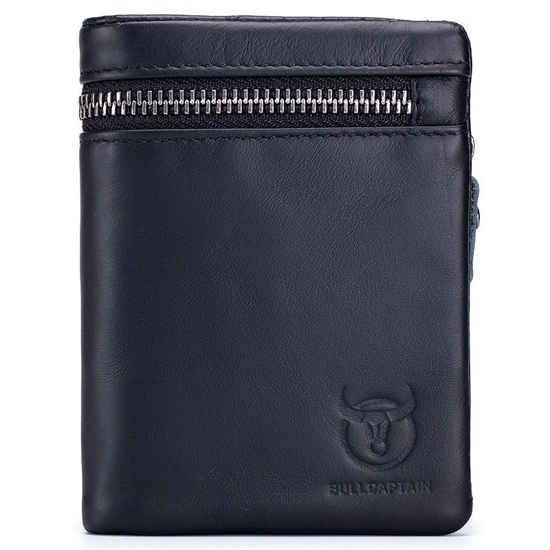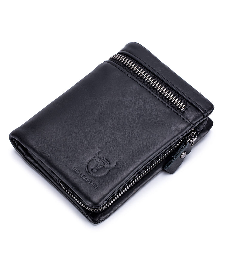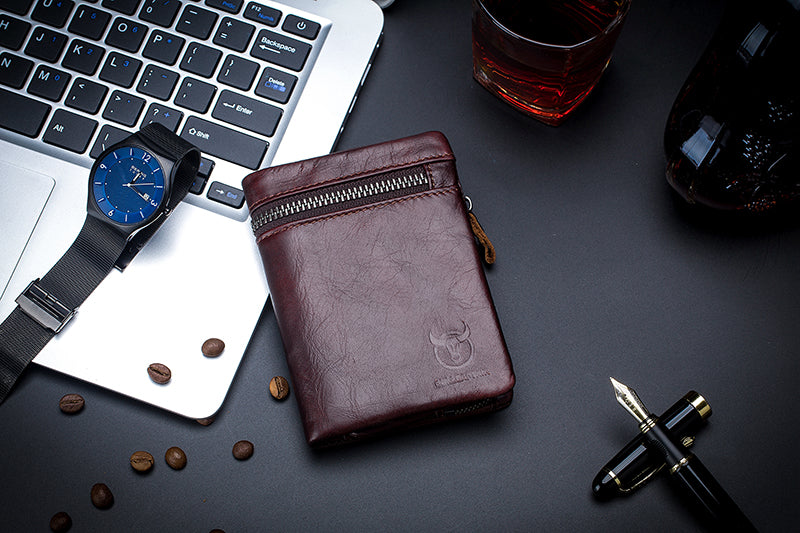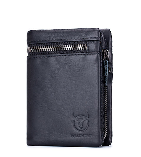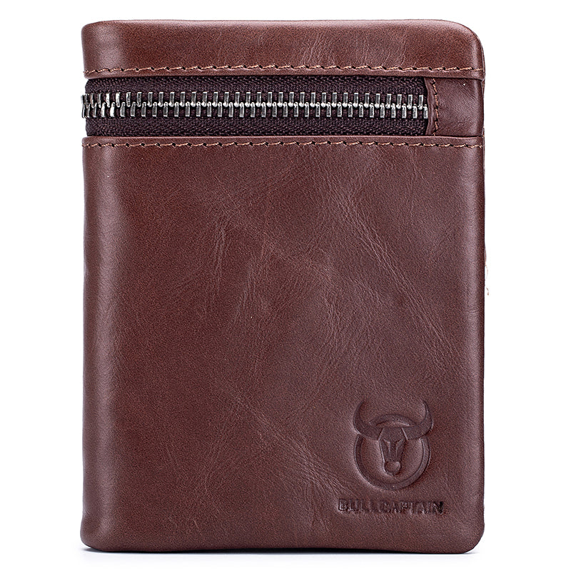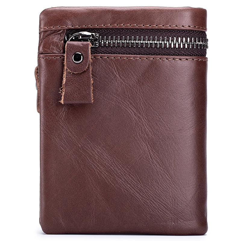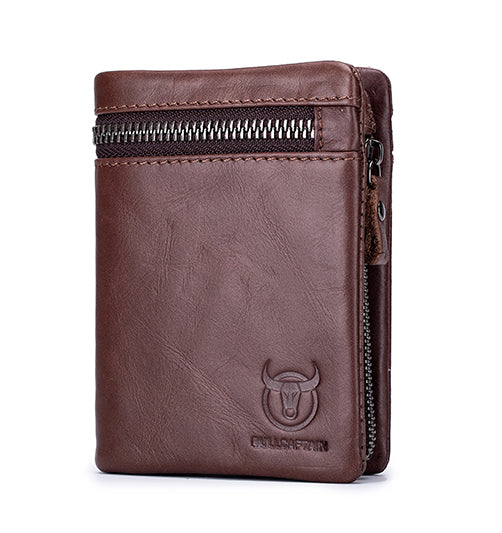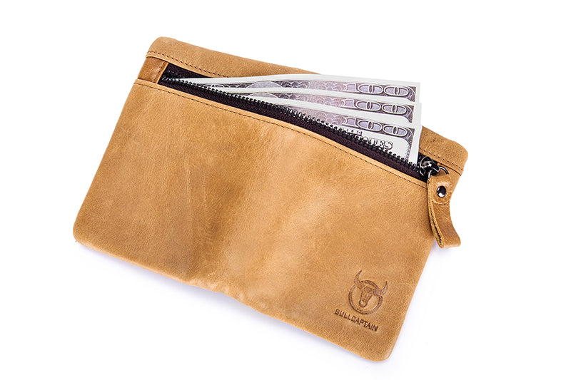 Men’s Genuine Leather Wallet Bifold Zippers Purse Ultra Strong Stitching
