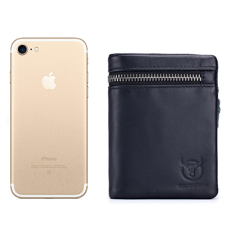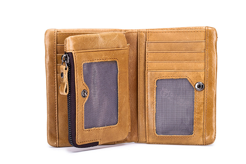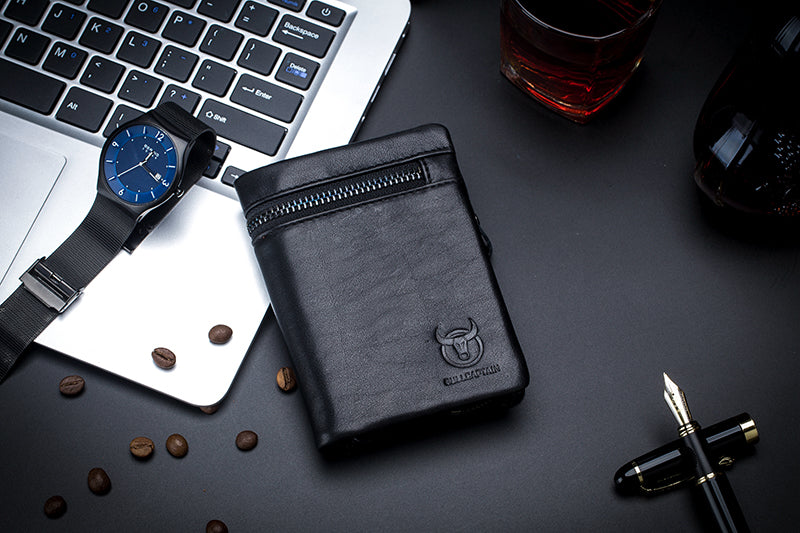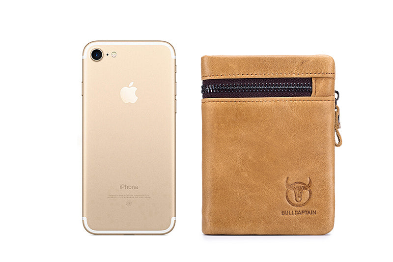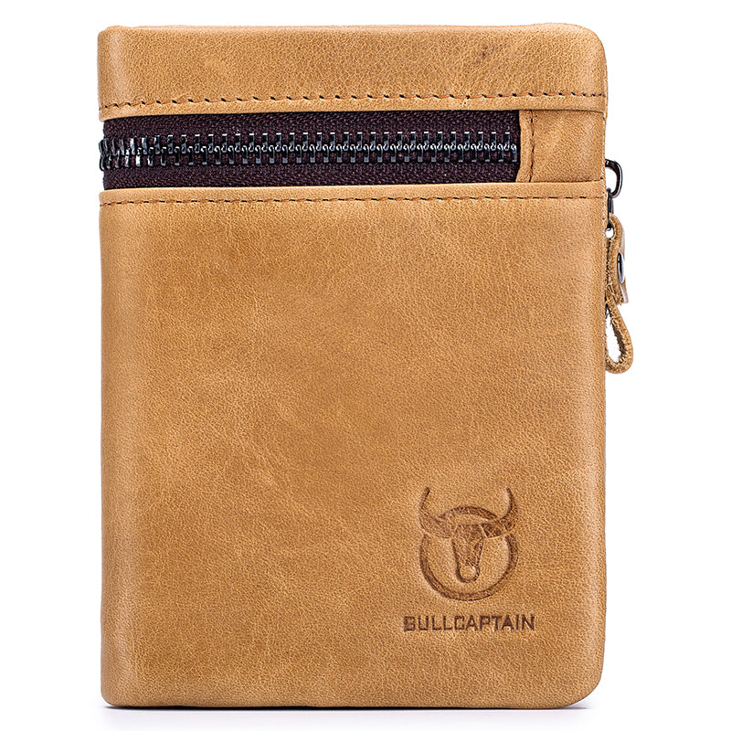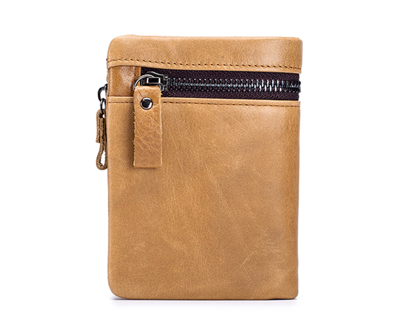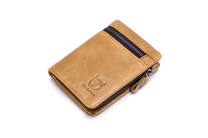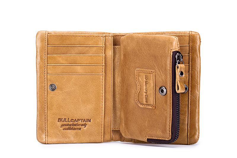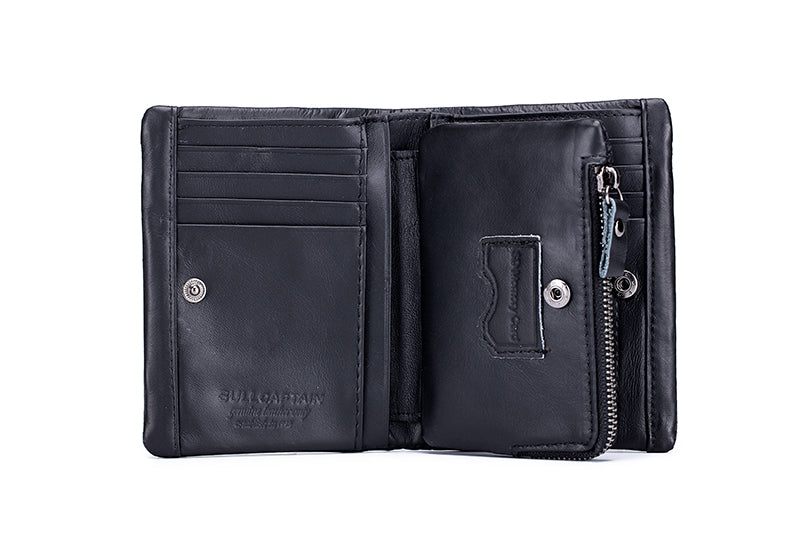 Men’s Genuine Leather Wallet Bifold Zippers Purse Ultra Strong Stitching