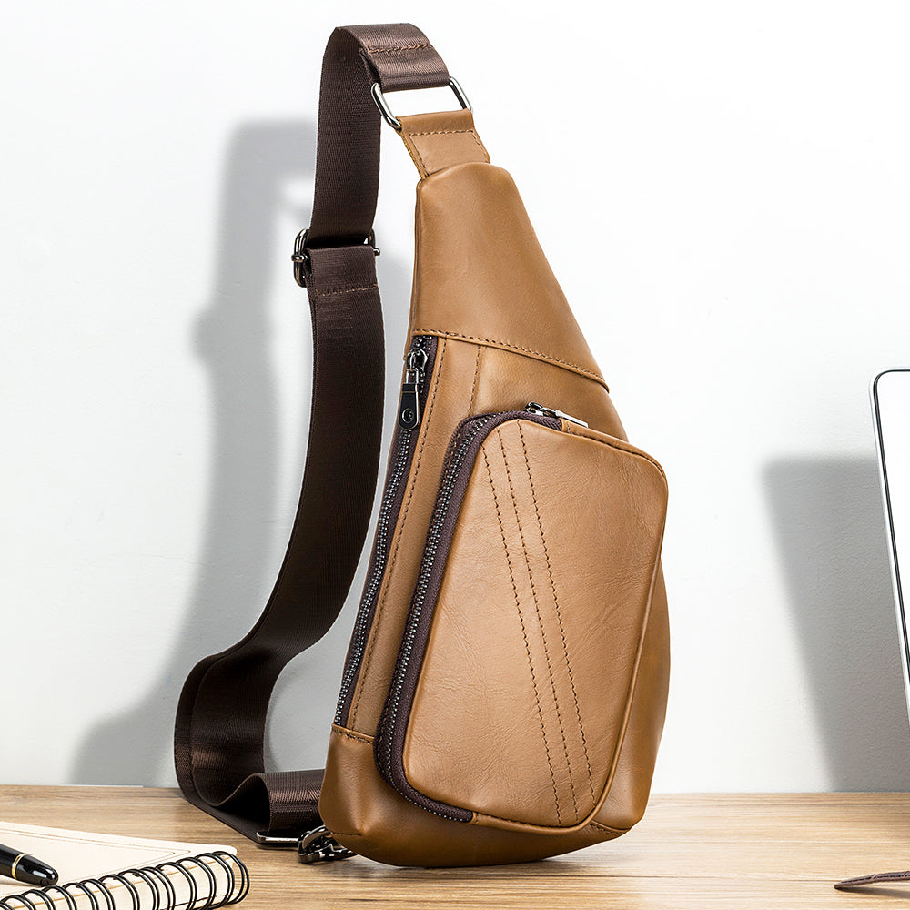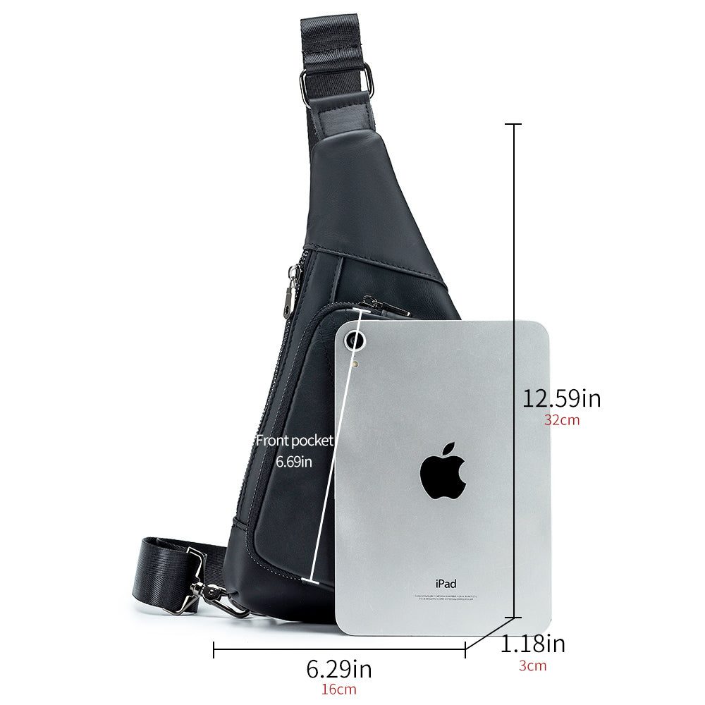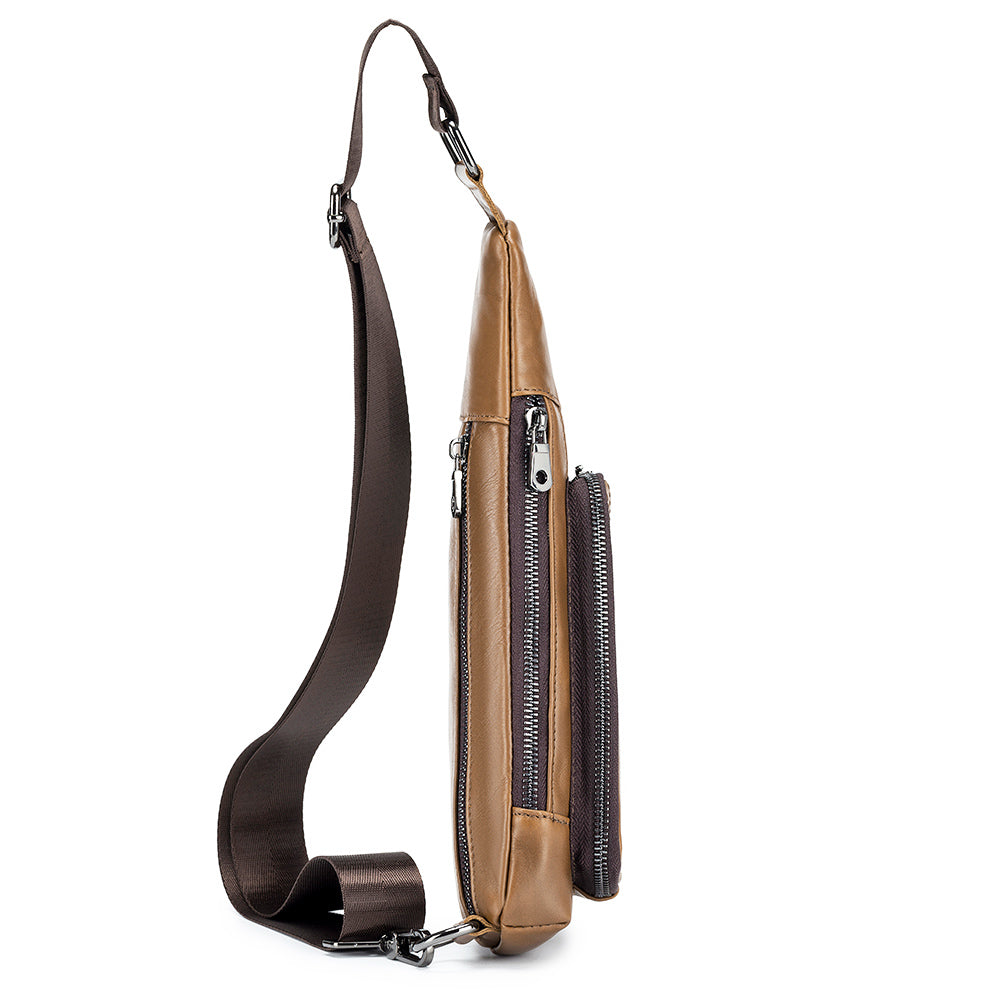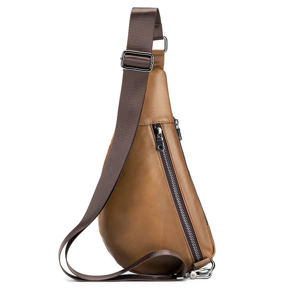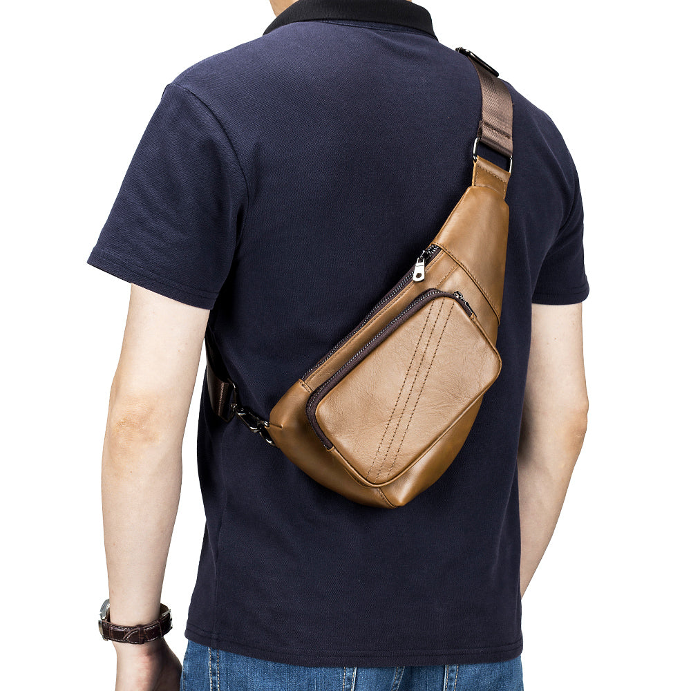 Men Sling Genuine Leather Chest Bag Casual Lightweight Shoulder Bag