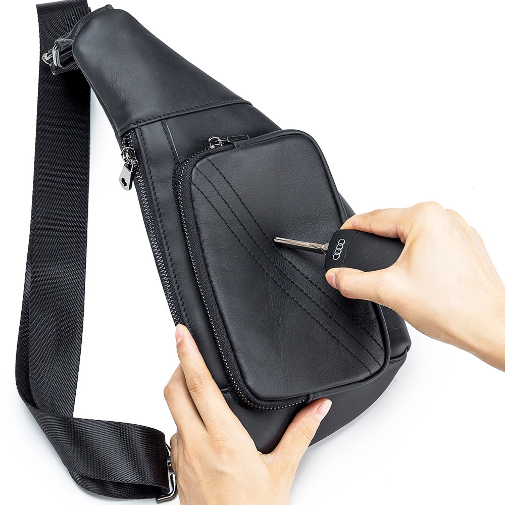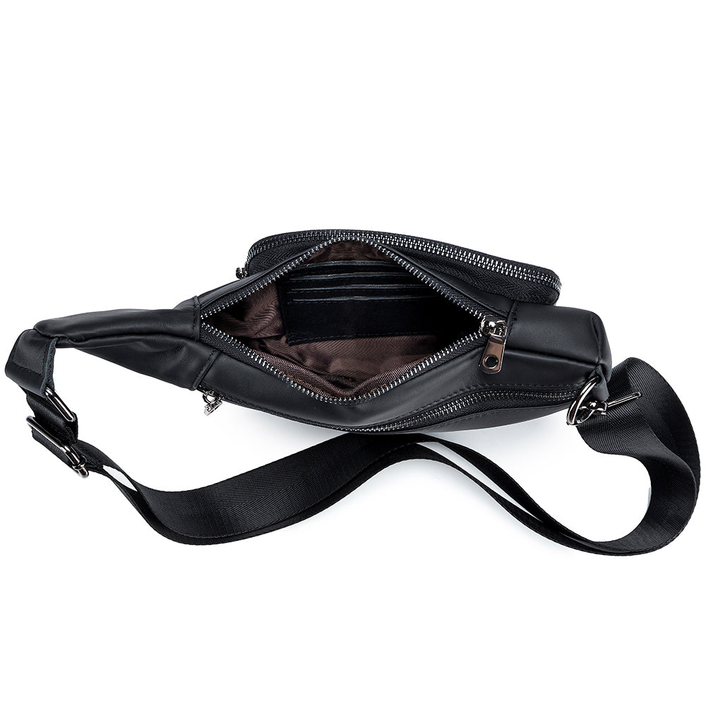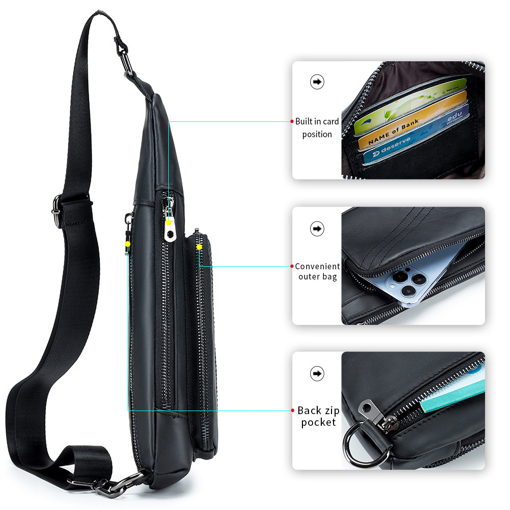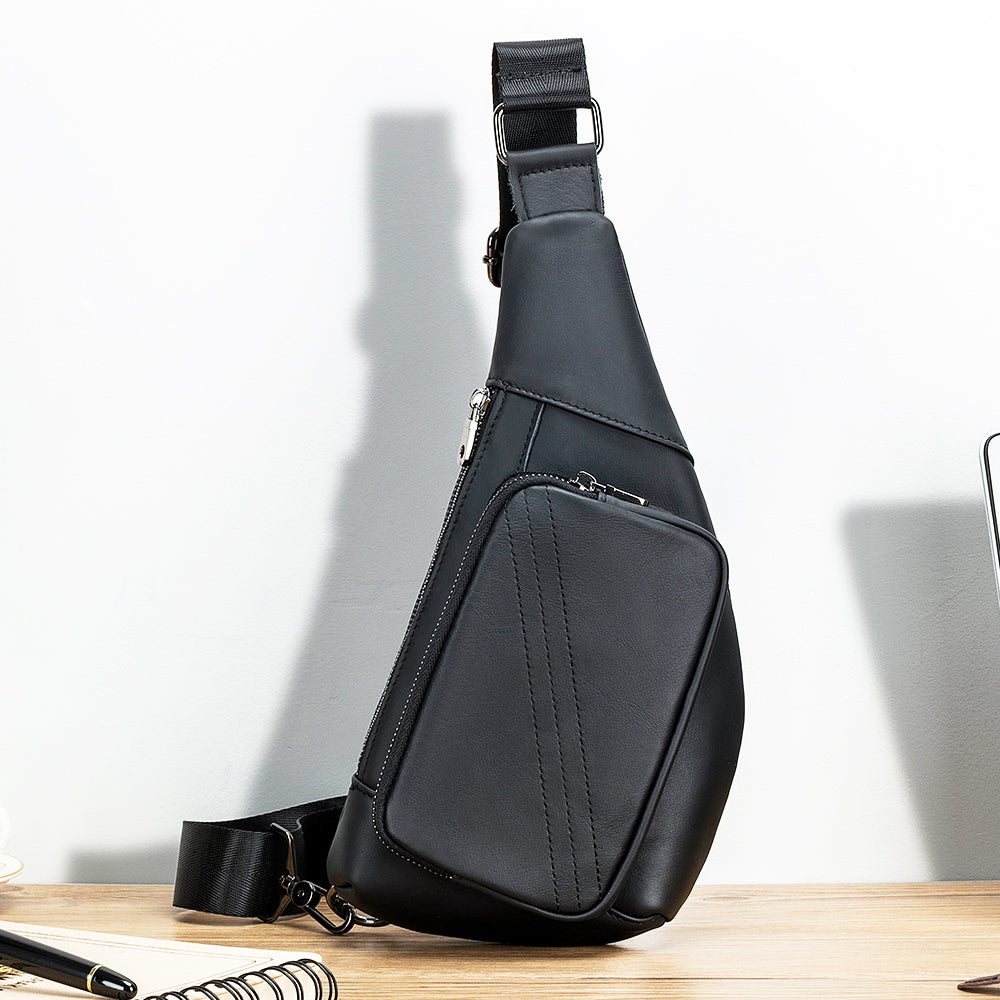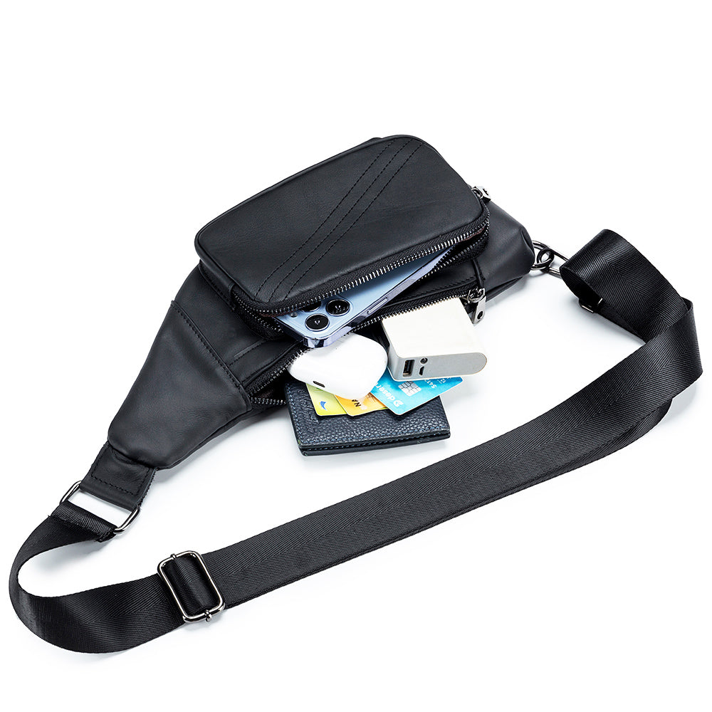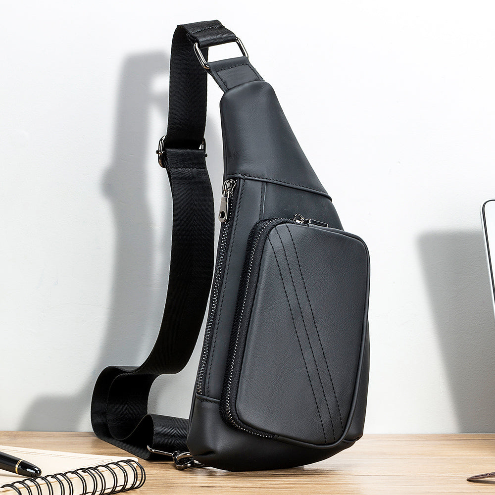 Men Sling Genuine Leather Chest Bag Casual Lightweight Shoulder Bag