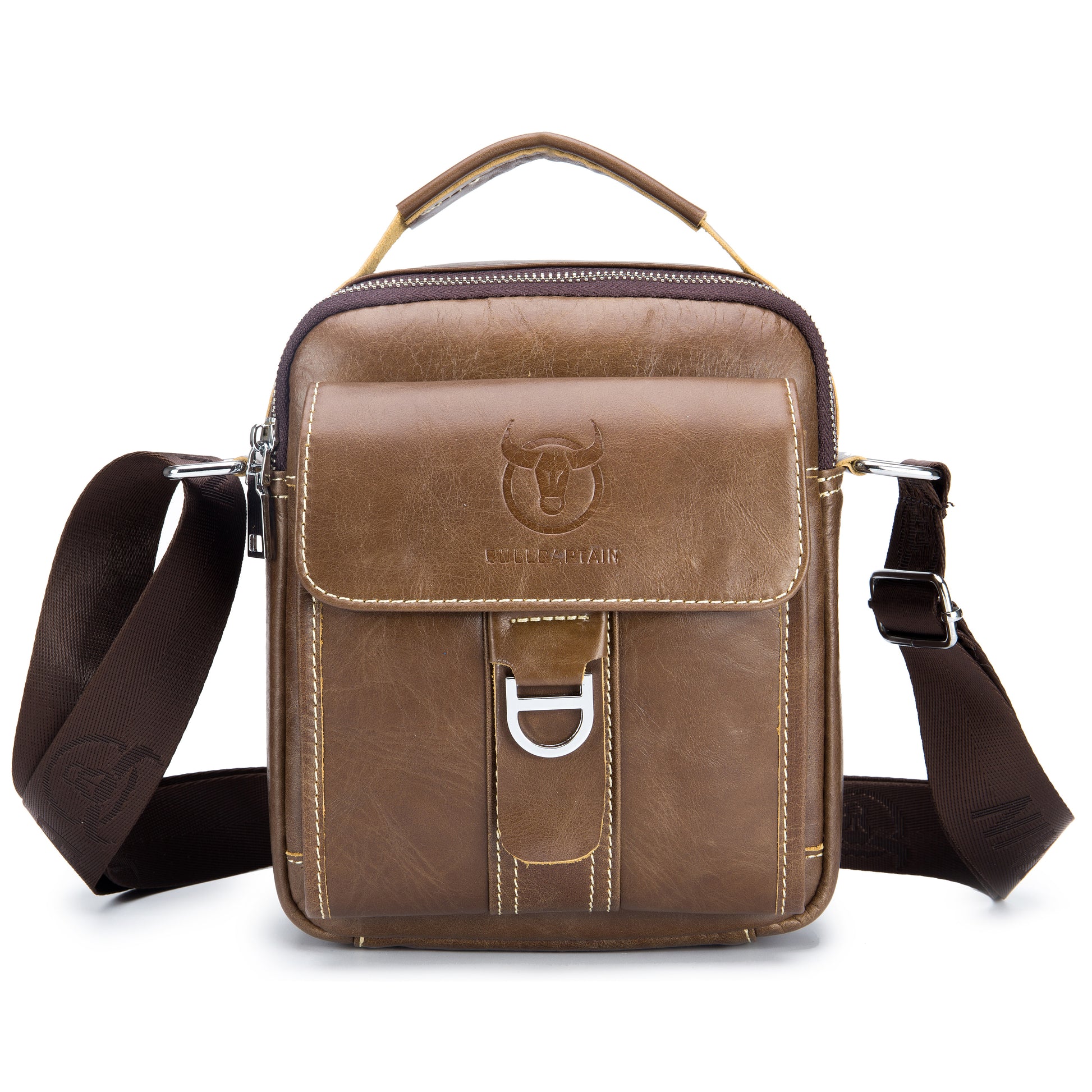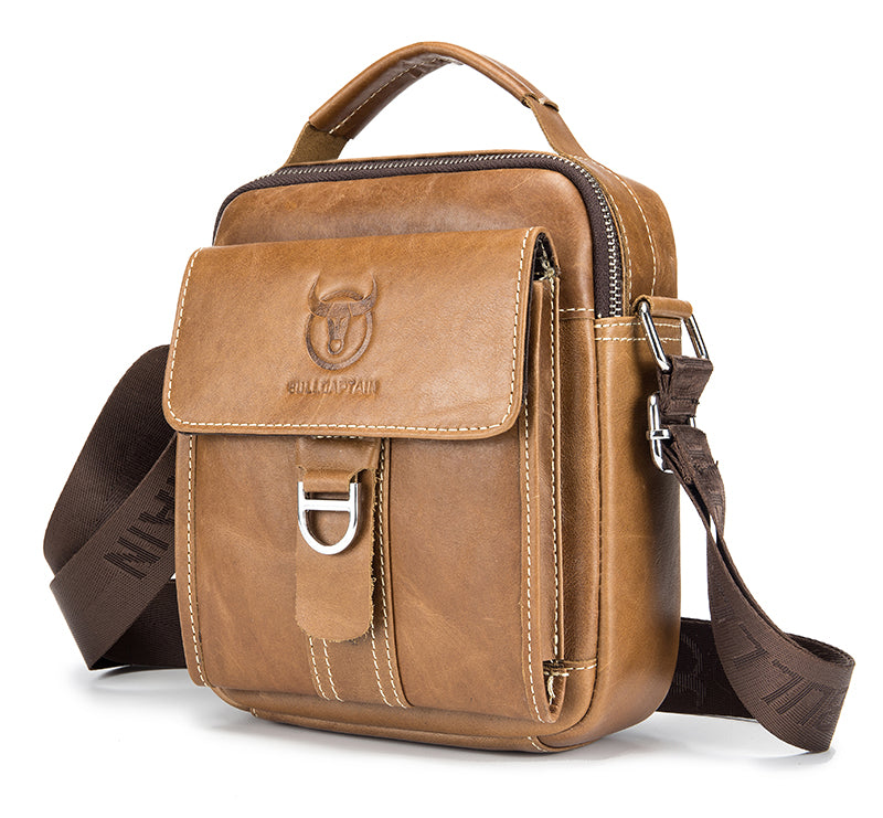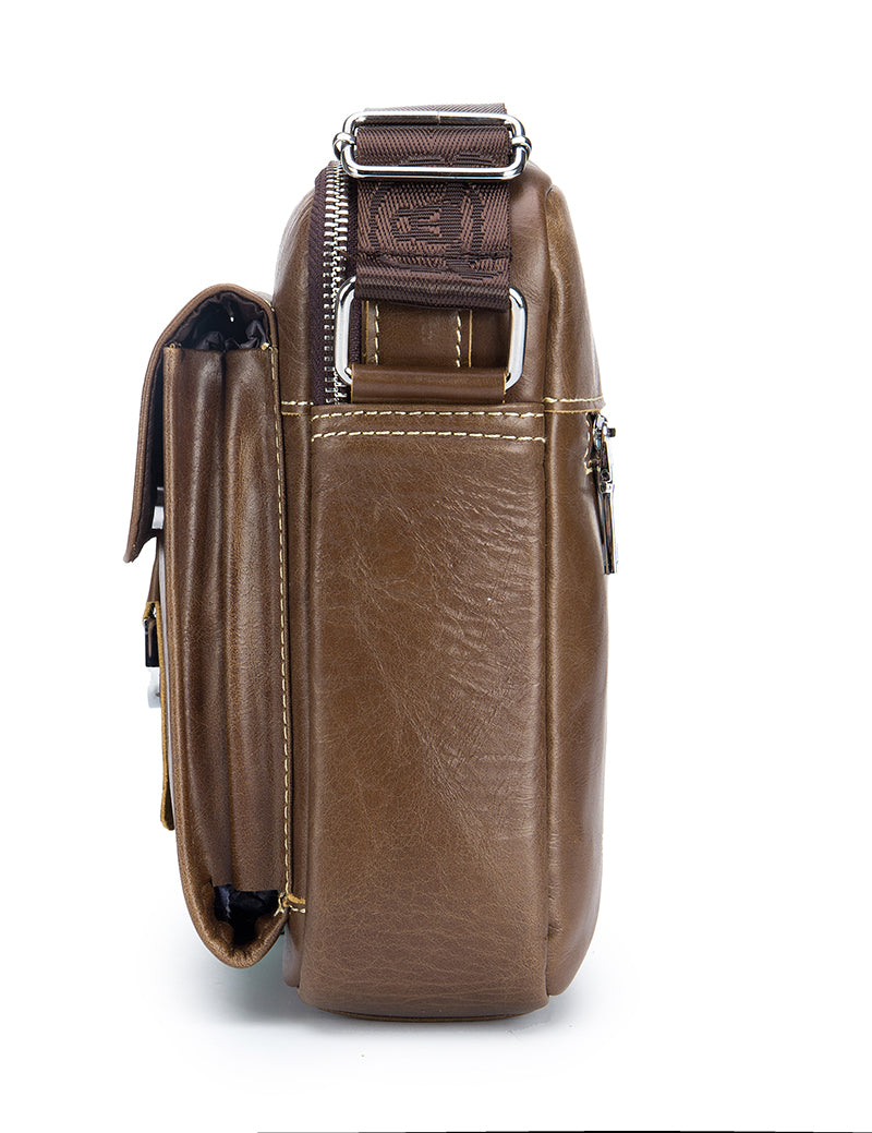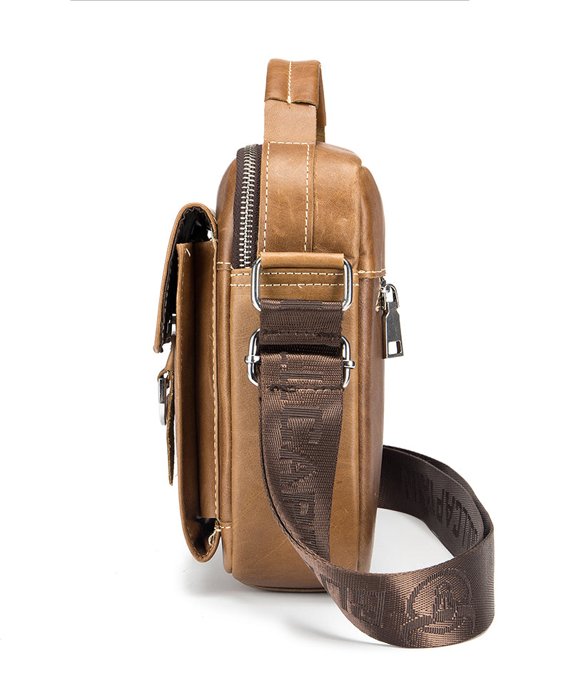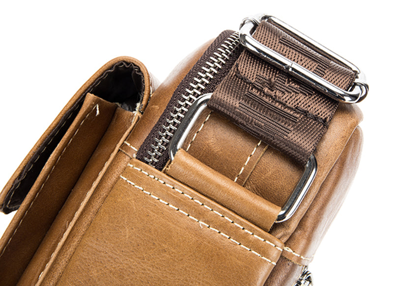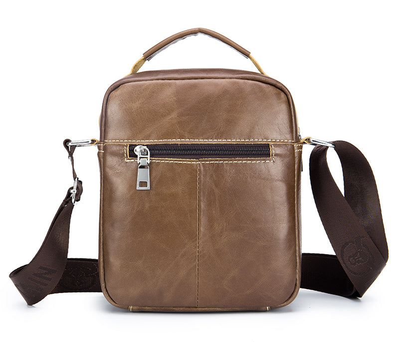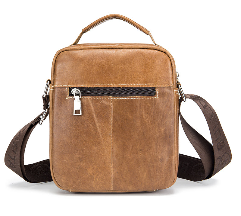 Men Soft Leather Zipper Small Shoulder Messenger Business Vintage Bag