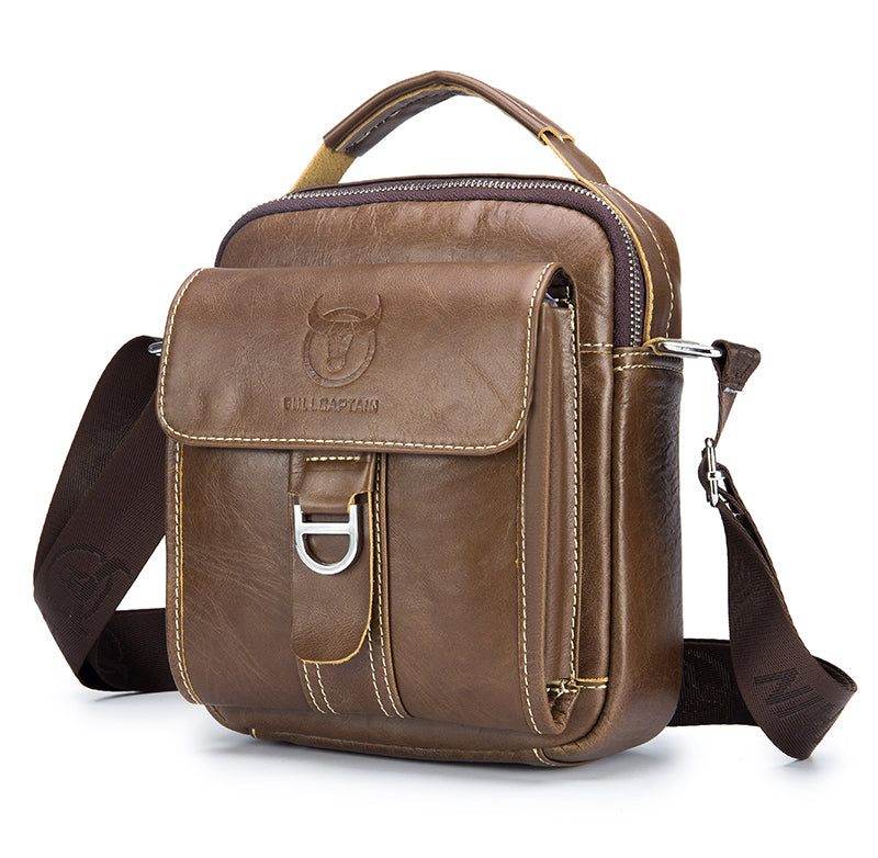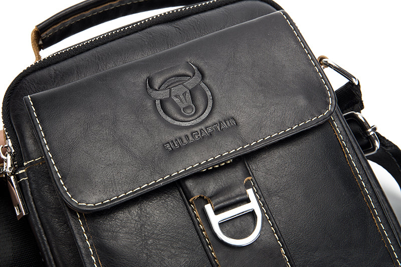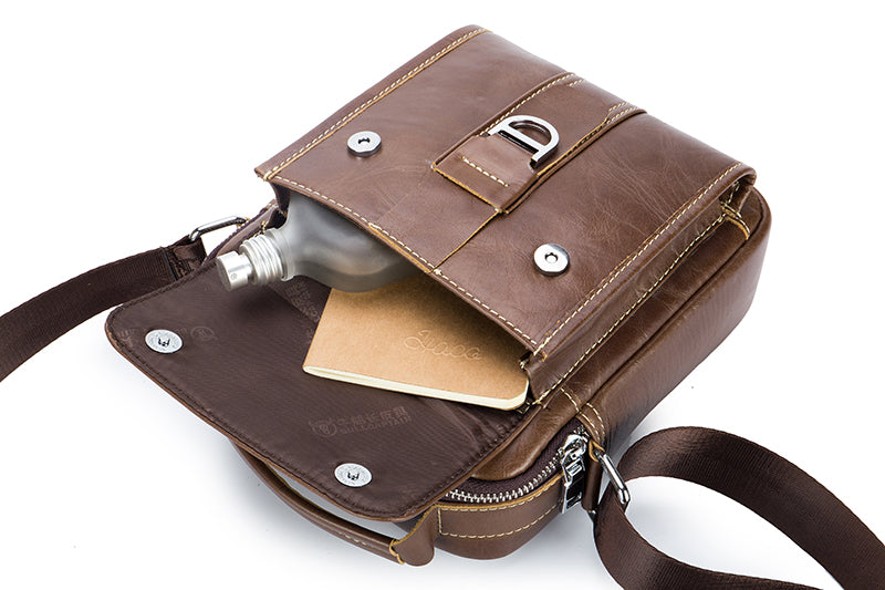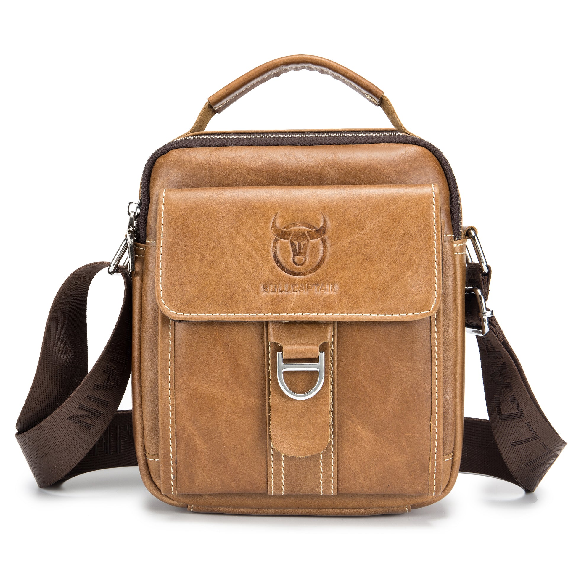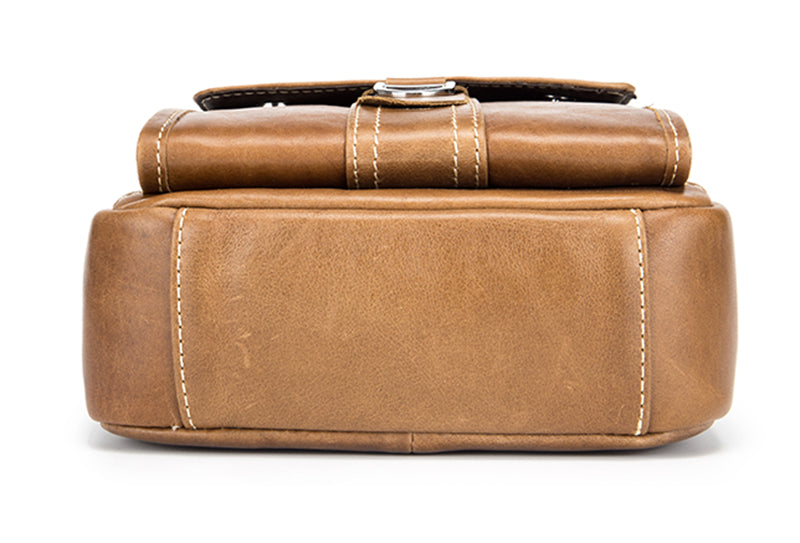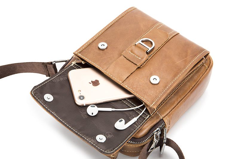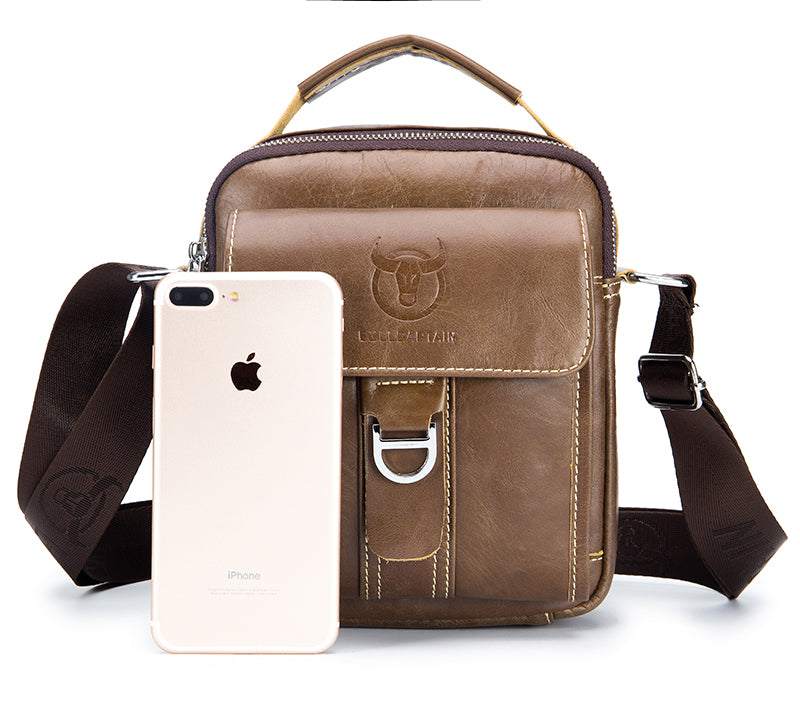 Men Soft Leather Zipper Small Shoulder Messenger Business Vintage Bag