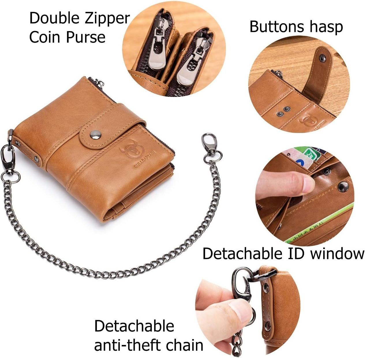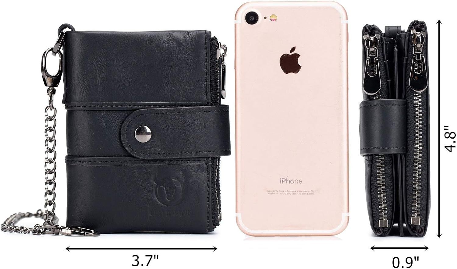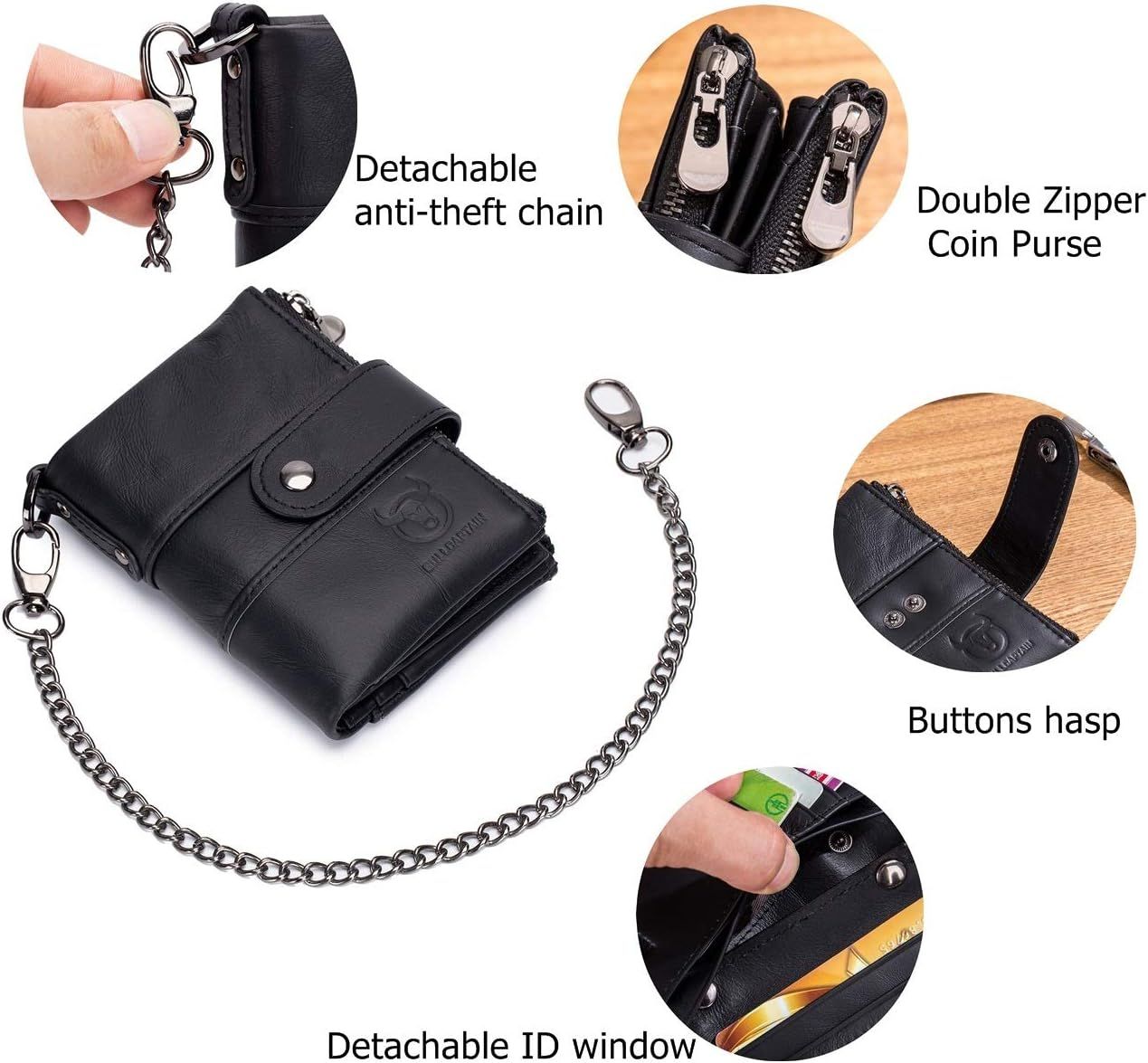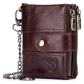 Men Wallet Genuine Leather RFID Blocking Wallets with Anti Theft Chain