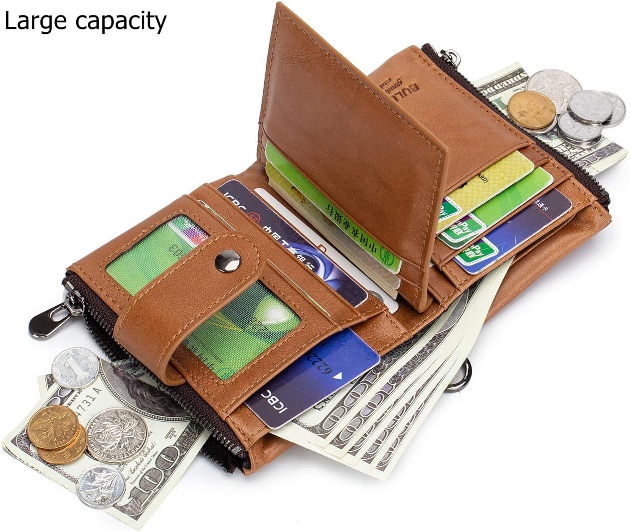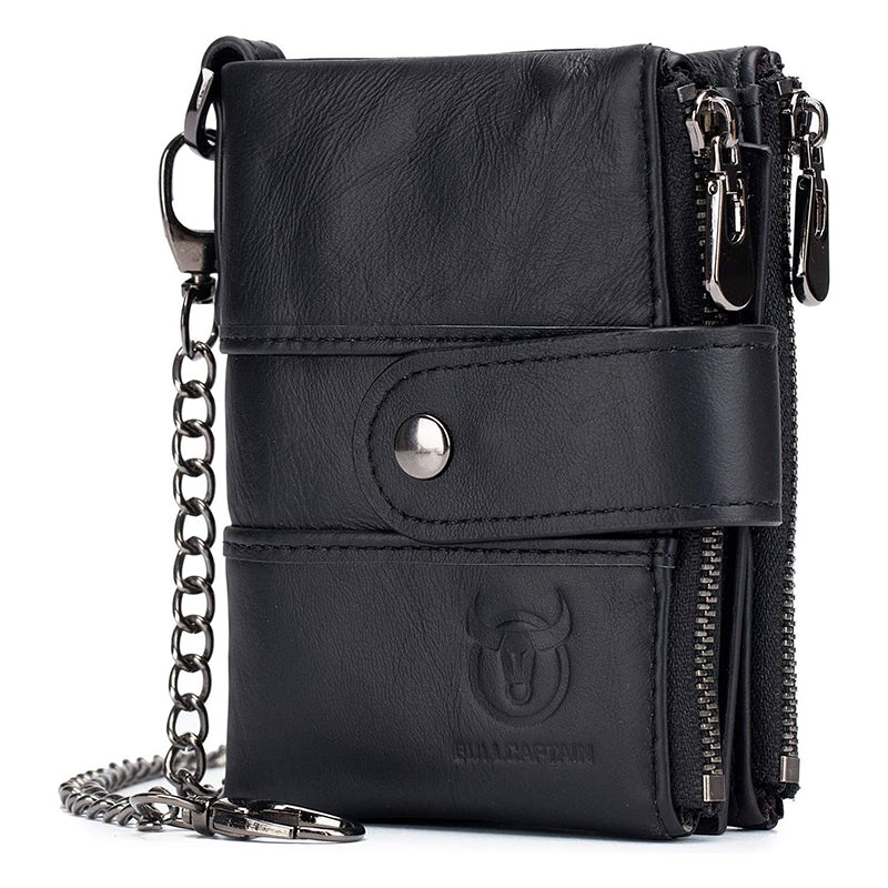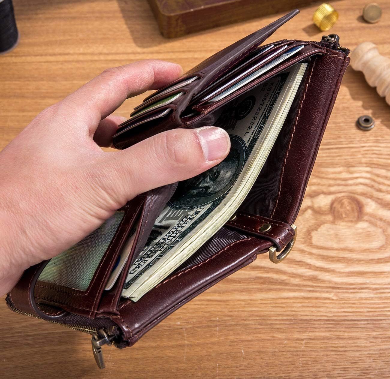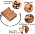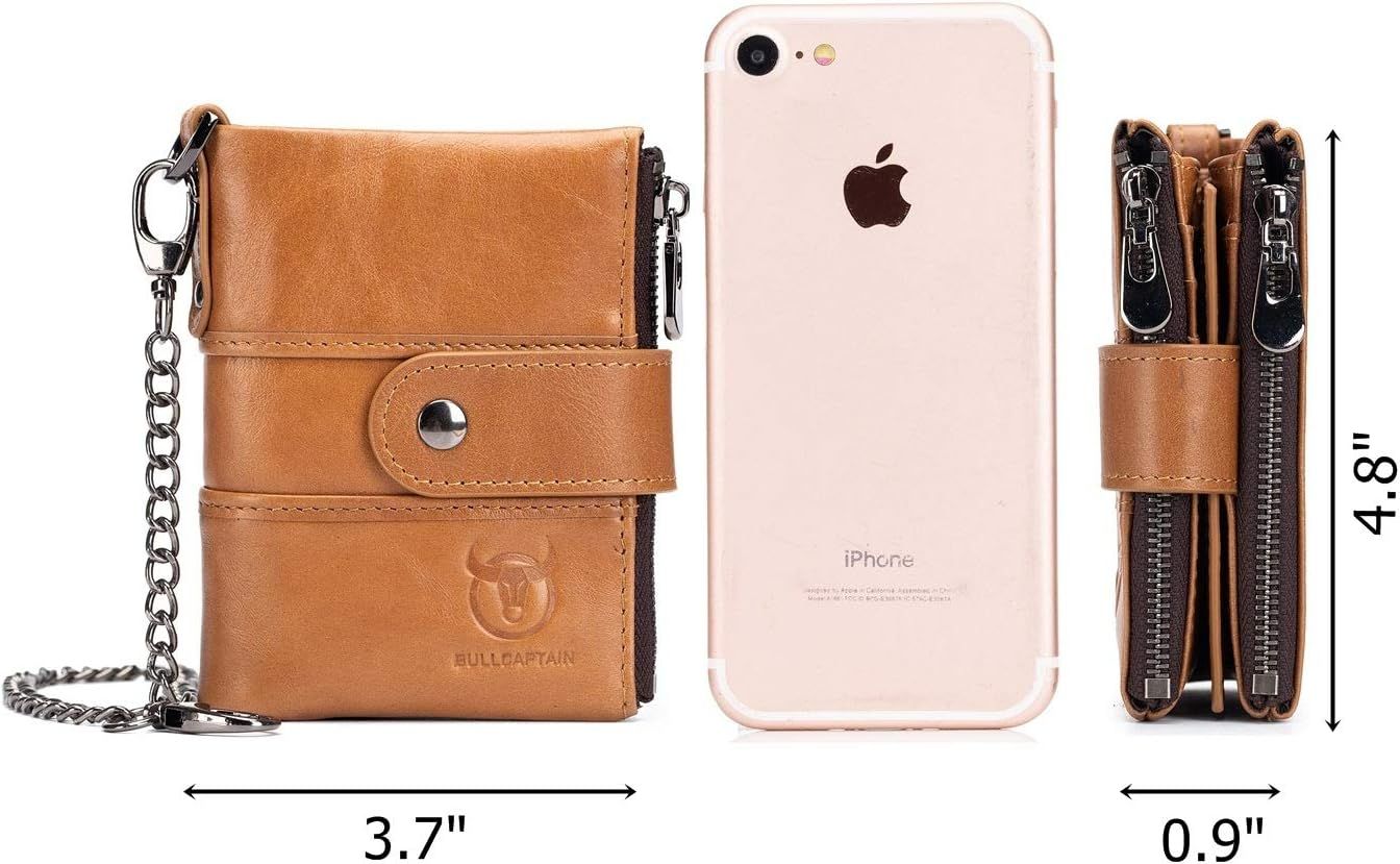 Men Wallet Genuine Leather RFID Blocking Wallets with Anti Theft Chain