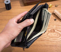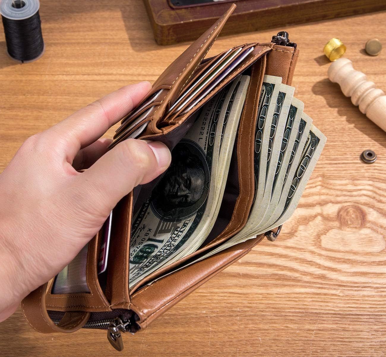 - GENUINE LEATHER-Wallet made from the finest grade genuine cow skin leather,soft touch,durable .Leather and Traditional handcraft,with top-quality zippers and durable nylon thread sewing. It makes the wallet look classy.