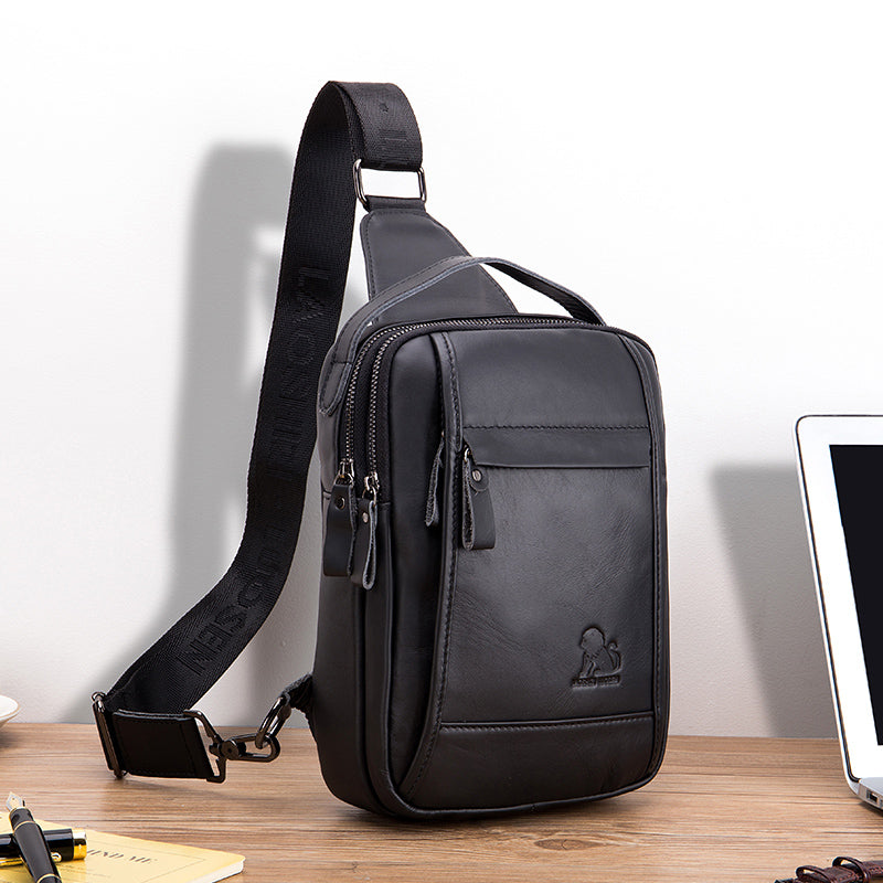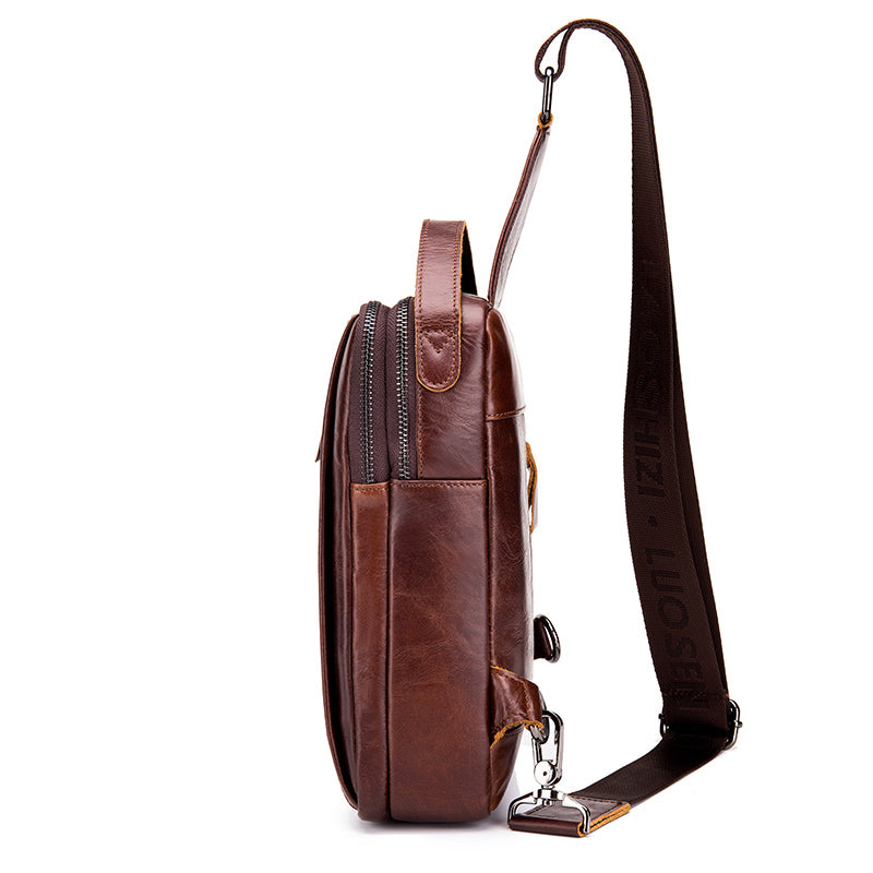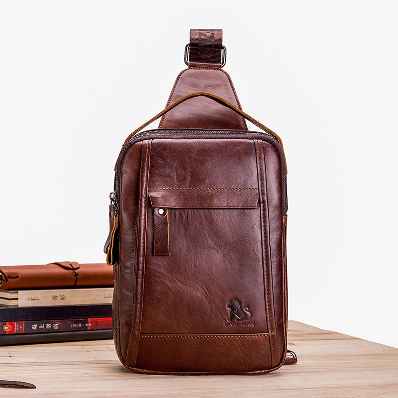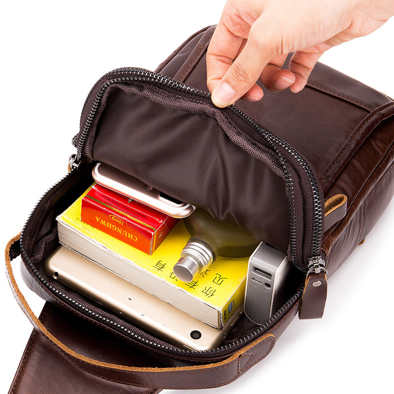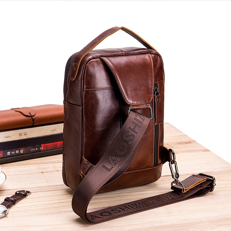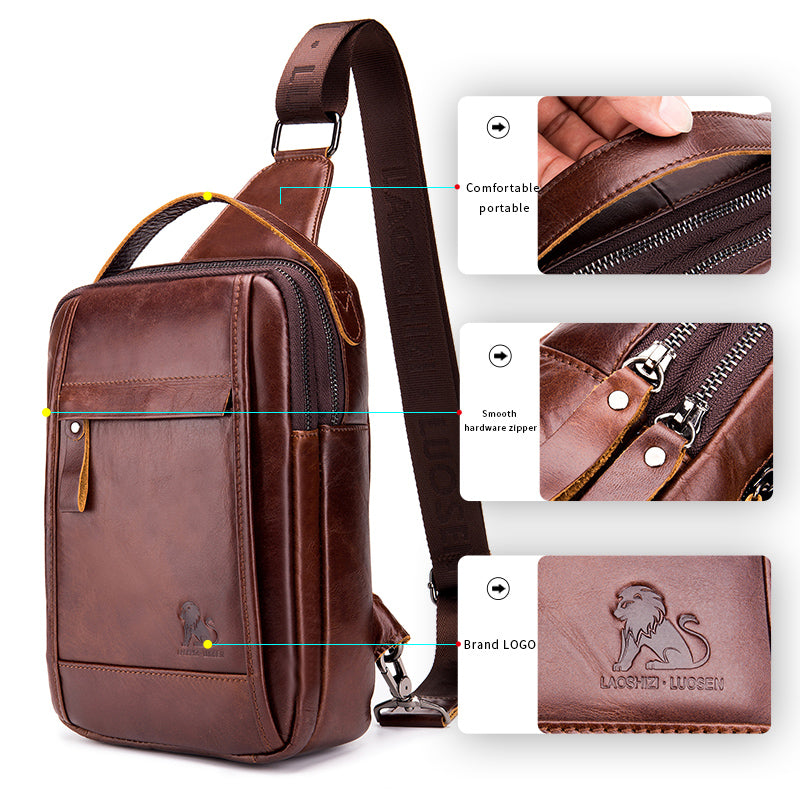 Men Women Leather Sling Chest Bag Crossbody Retro Travel Bag
