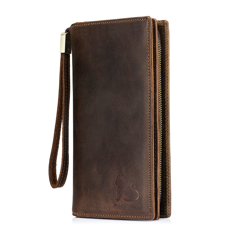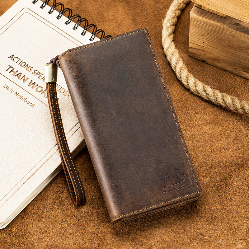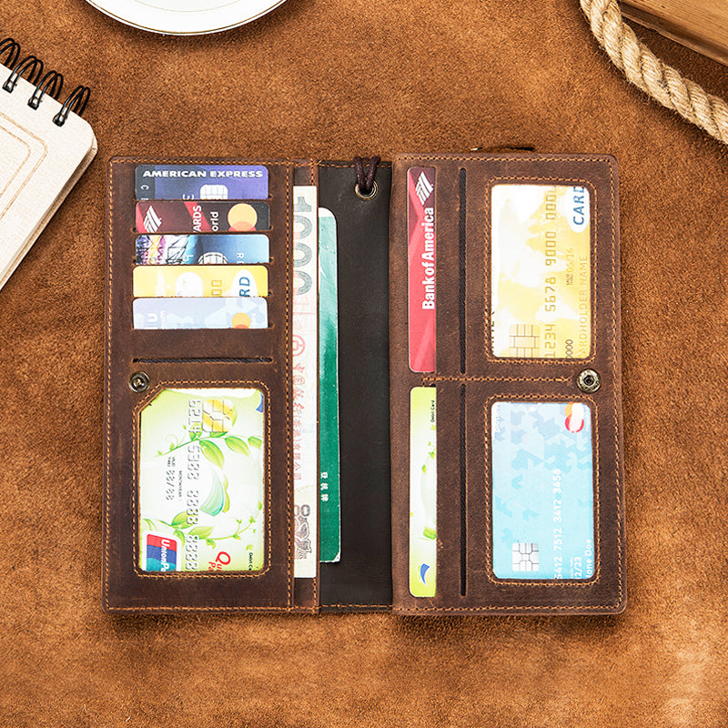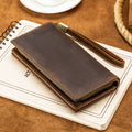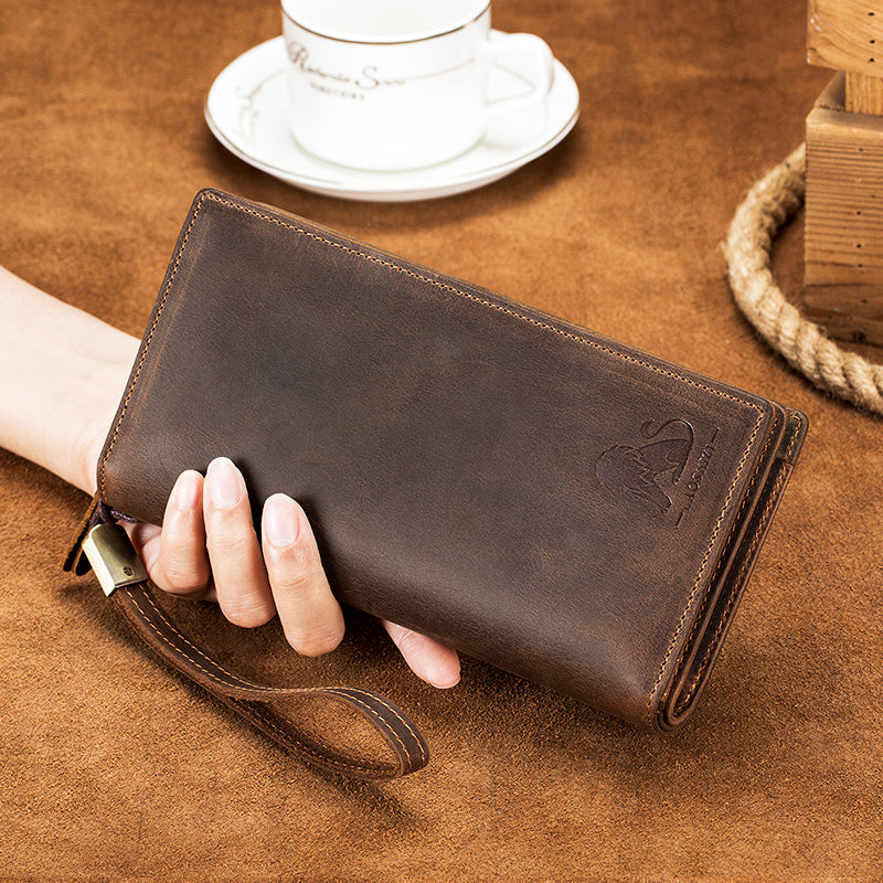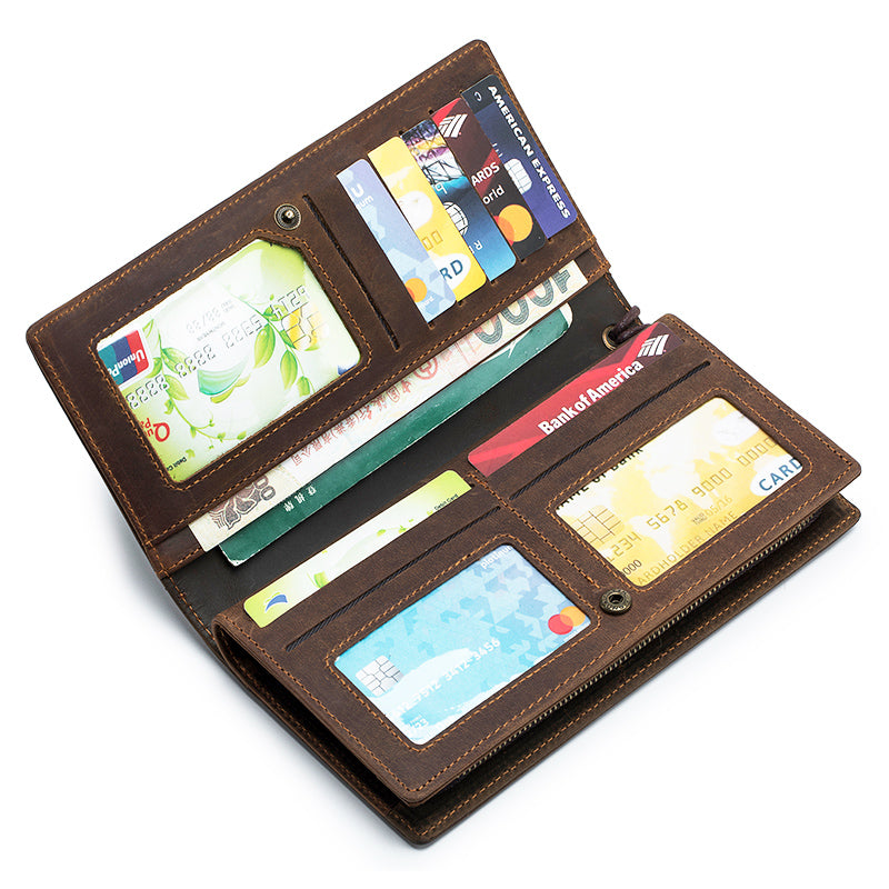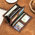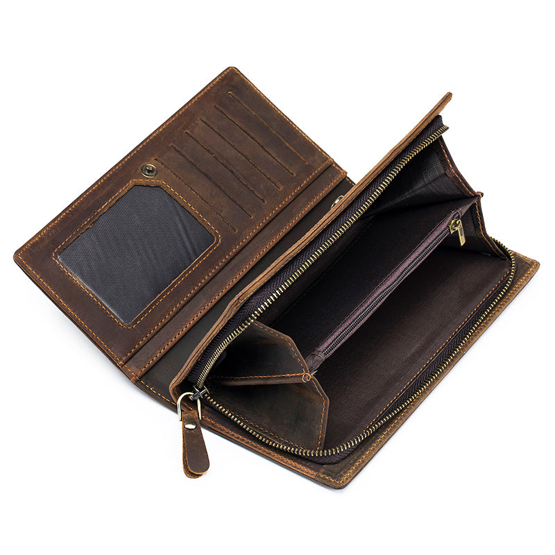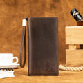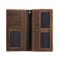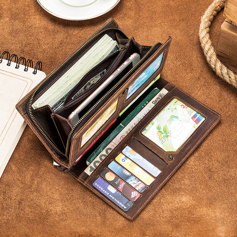Men's Crazy Horse Genuine Leather Long Wallet RFID Blocking Purses