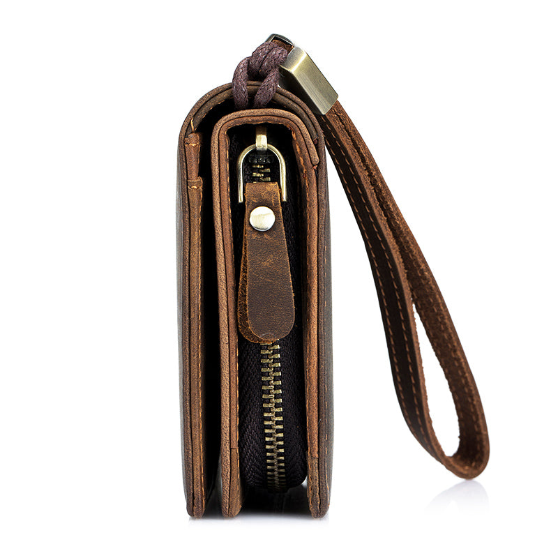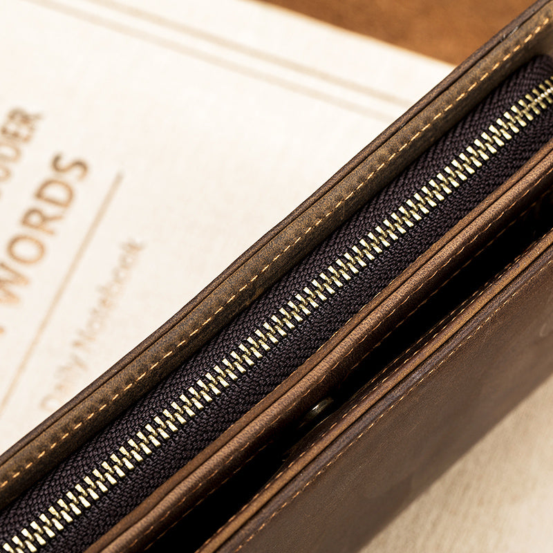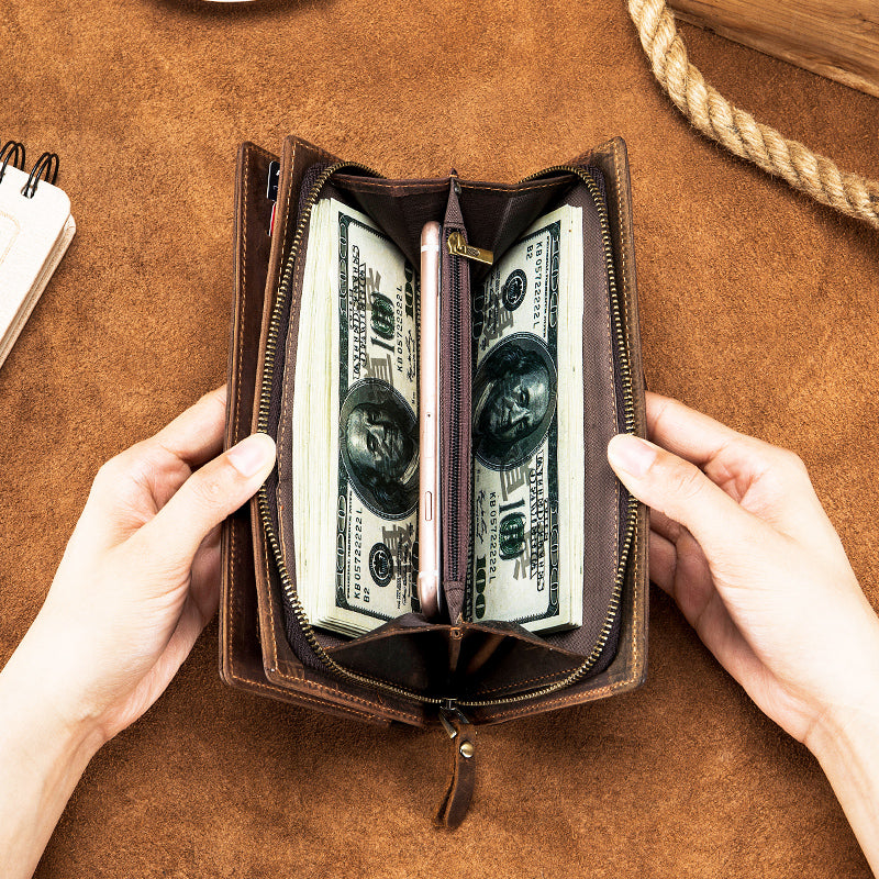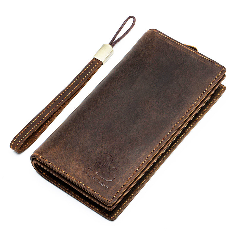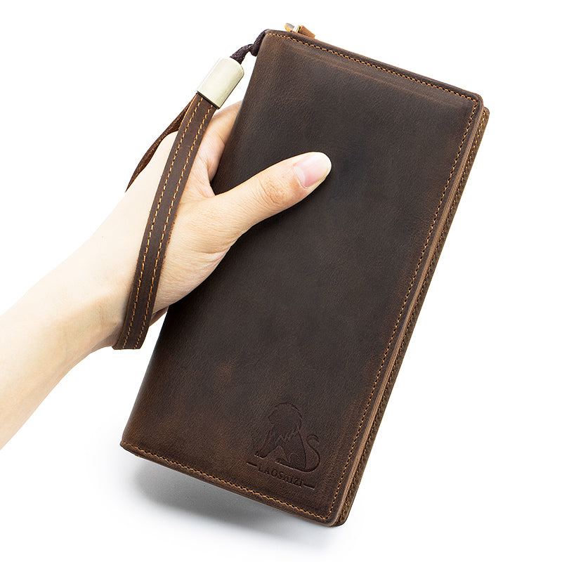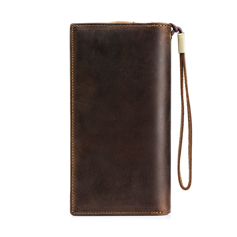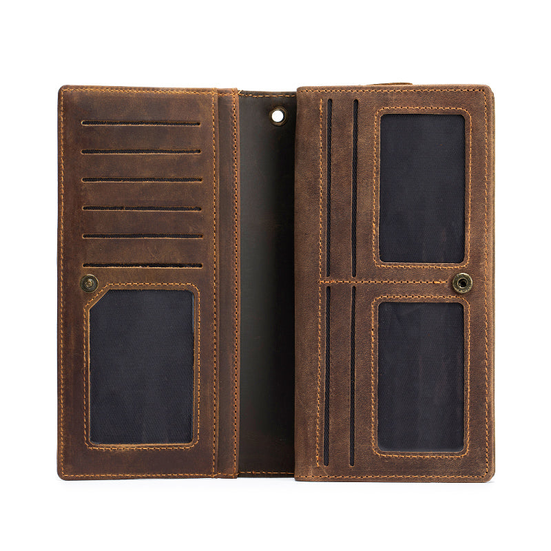 Men's Crazy Horse Genuine Leather Long Wallet RFID Blocking Purses