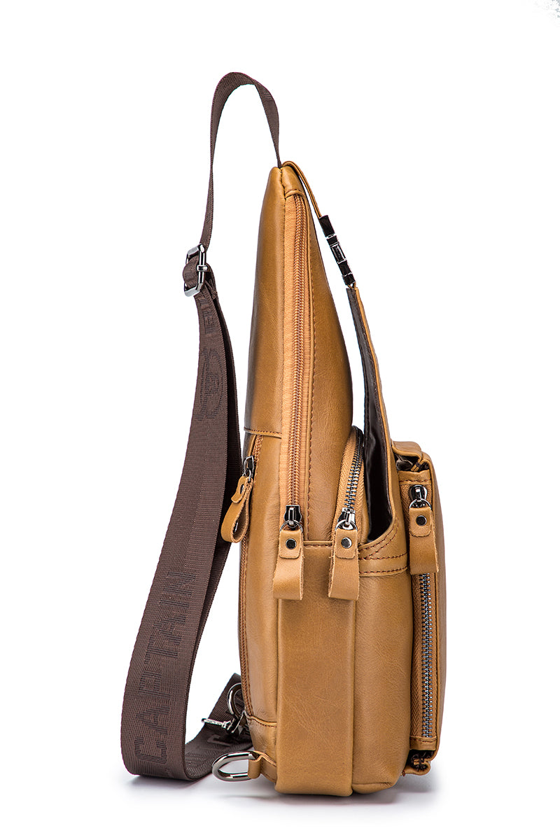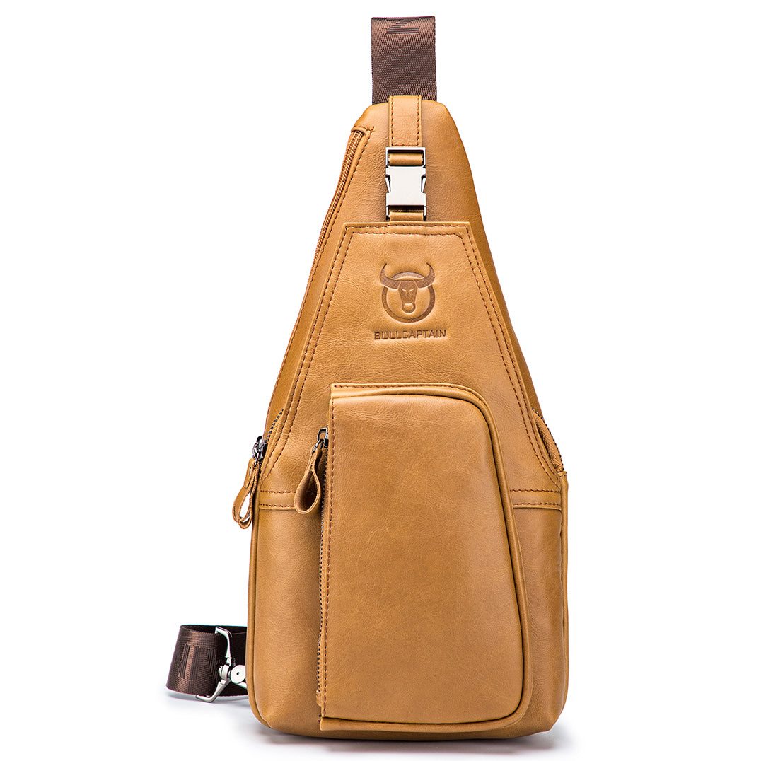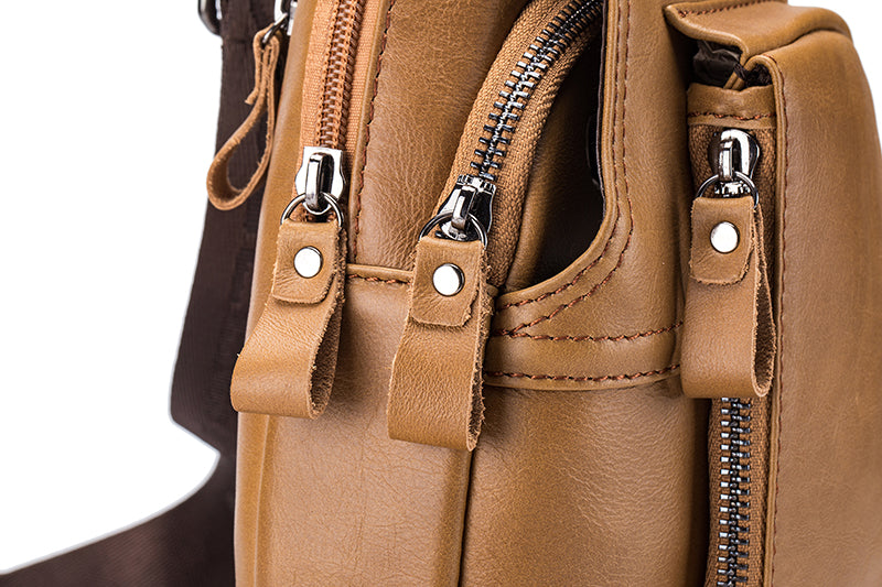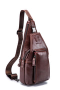 Men's Crossbody Sling Bag Leather Chest Bags Travel Hiking Bag