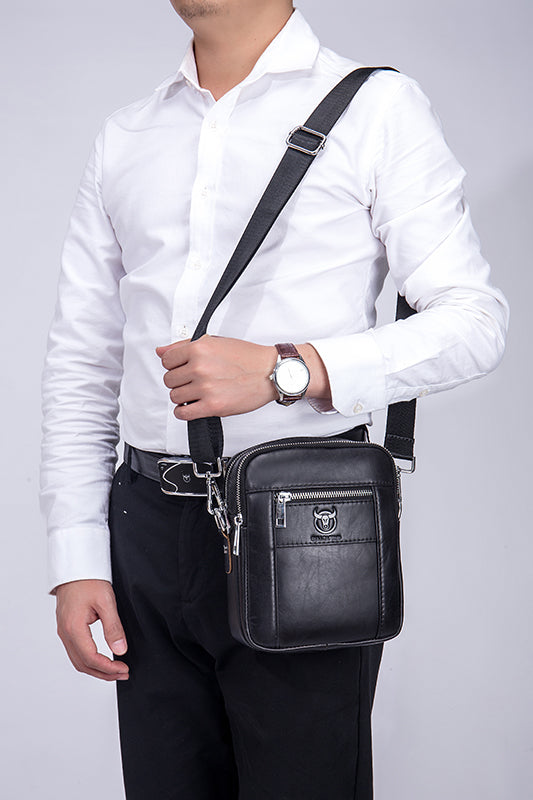- The Small Shoulder Messenger Bag, made of high-quality genuine leather, is a perfect blend of style and functionality designed specifically for men on-the-go.