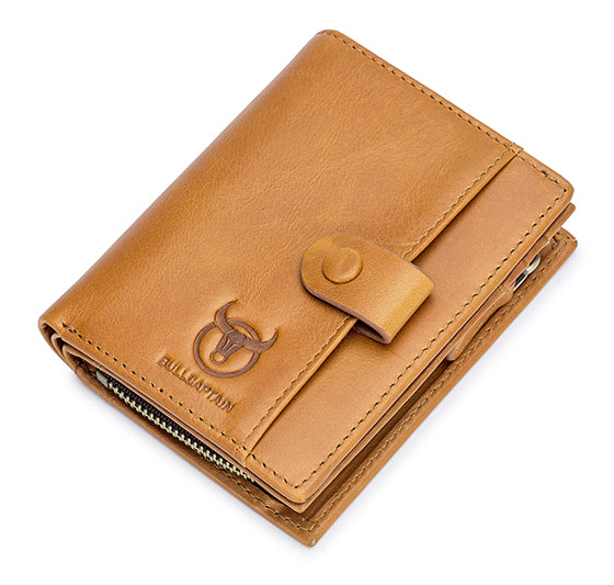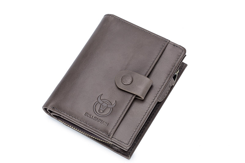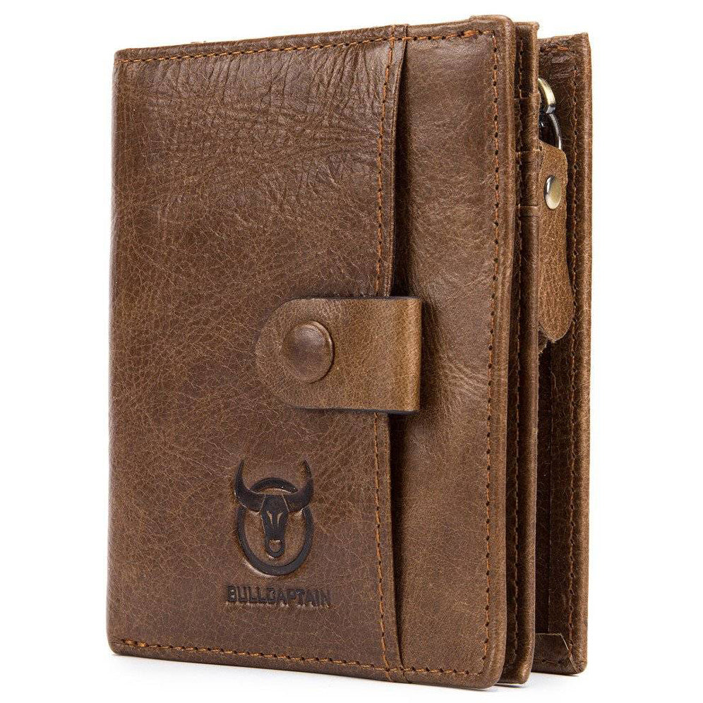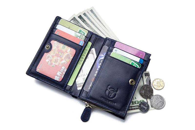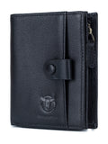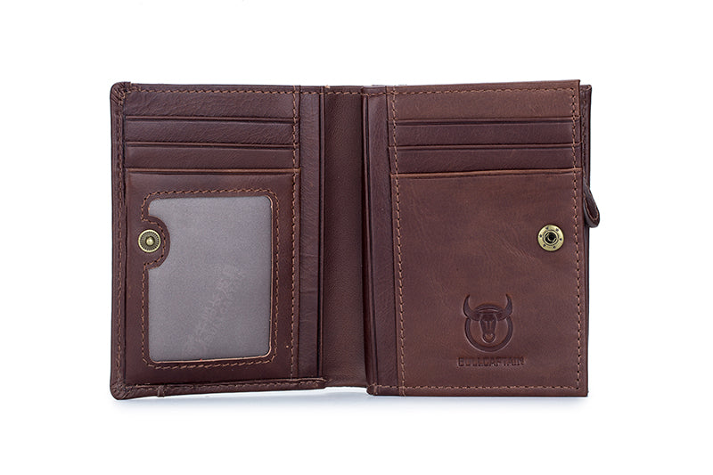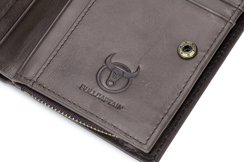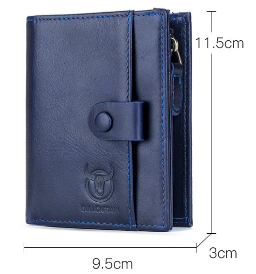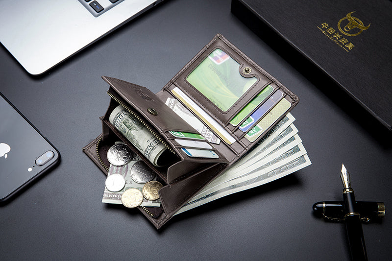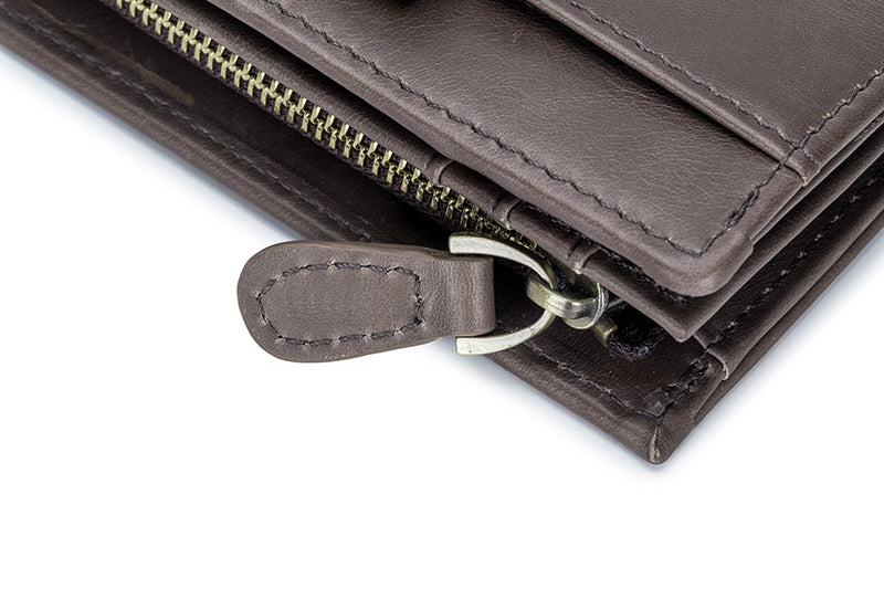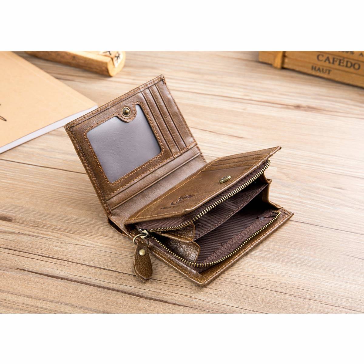 Men's Genuine Leather Short Bifold Wallet with Zipper Minimalist Purse