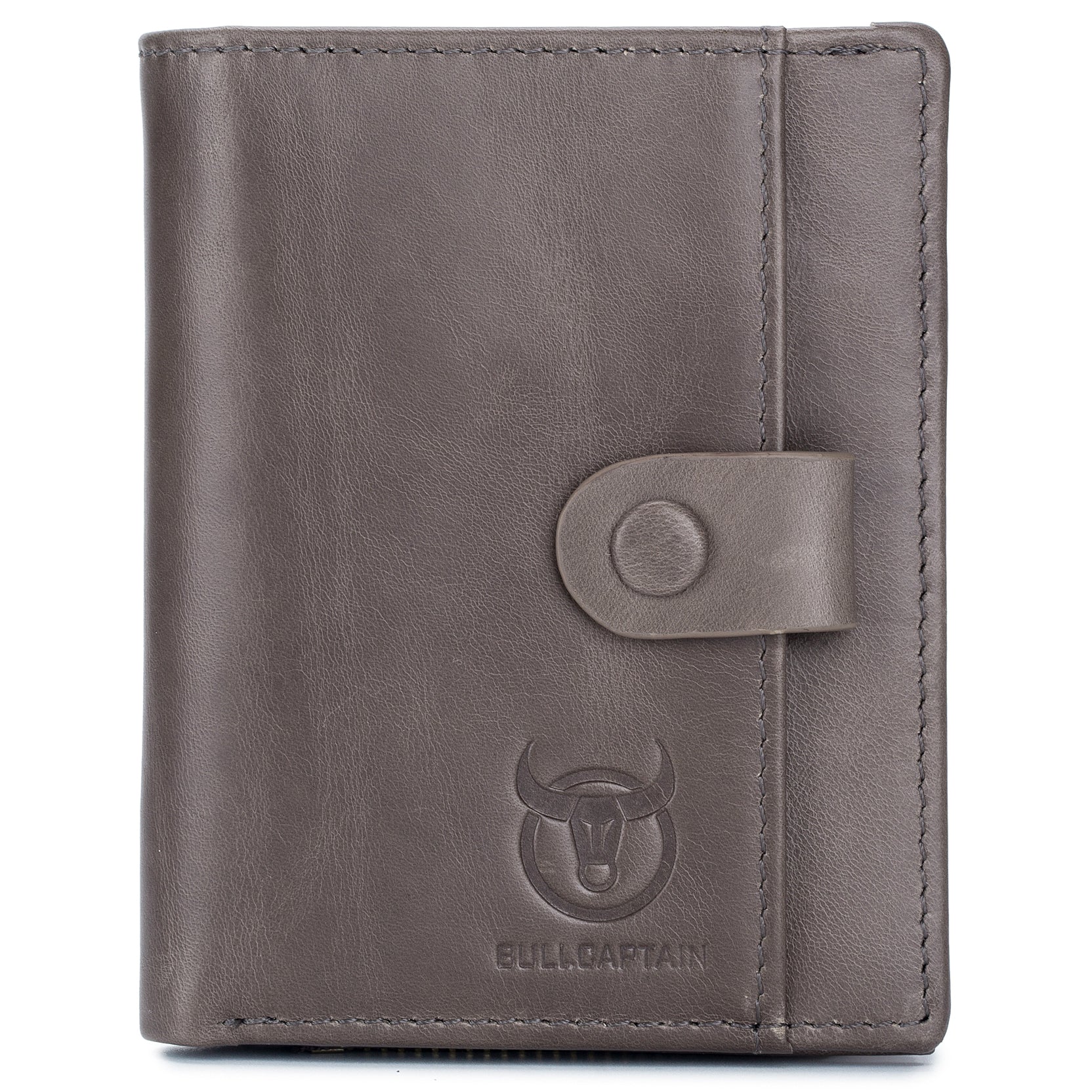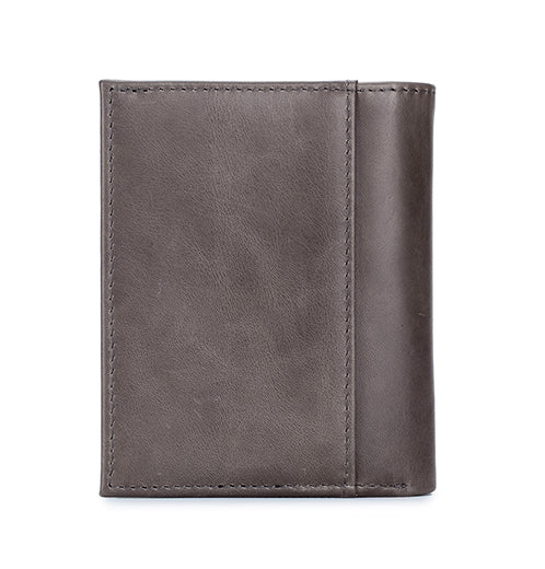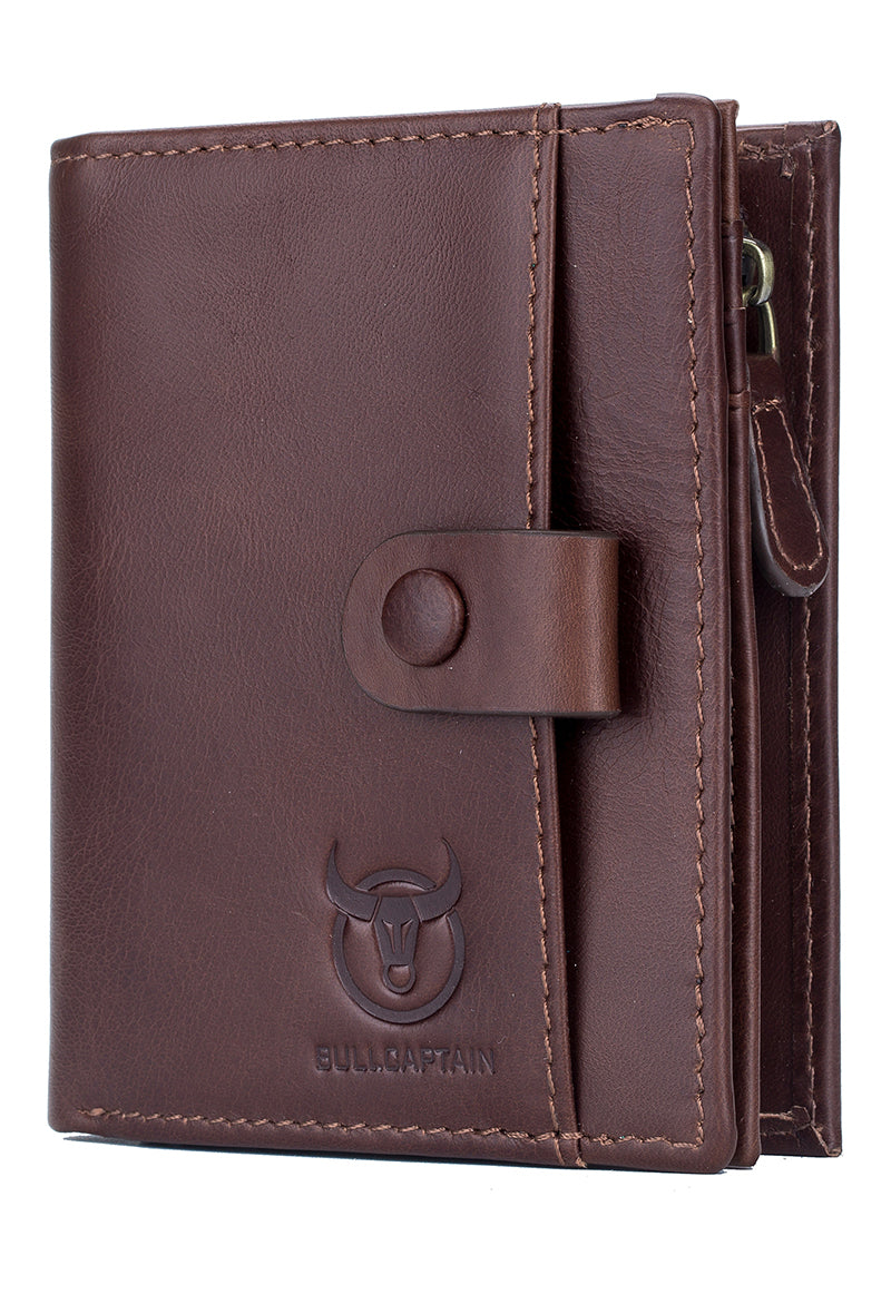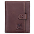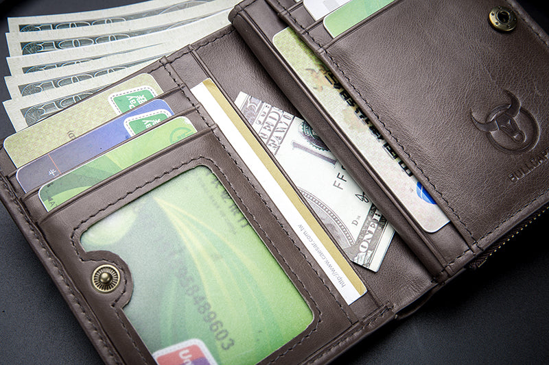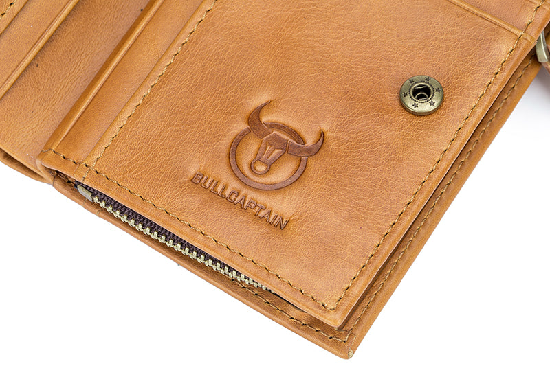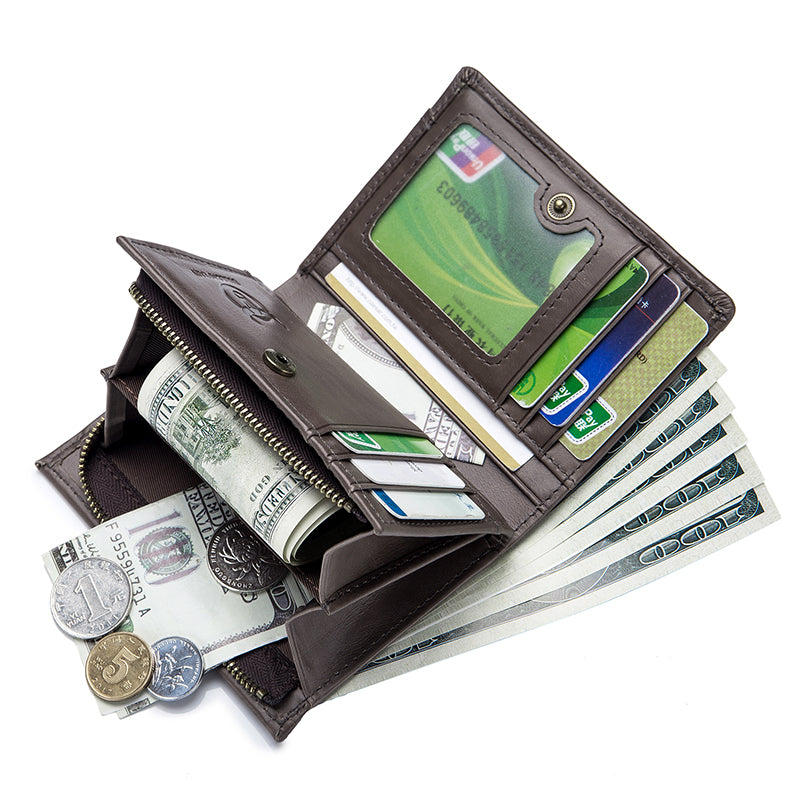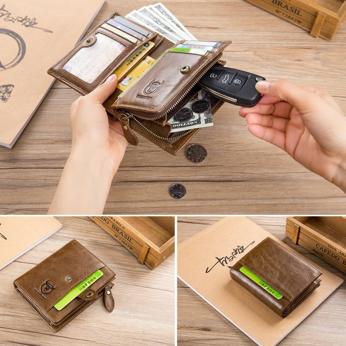 Men's Genuine Leather Short Bifold Wallet with Zipper Minimalist Purse