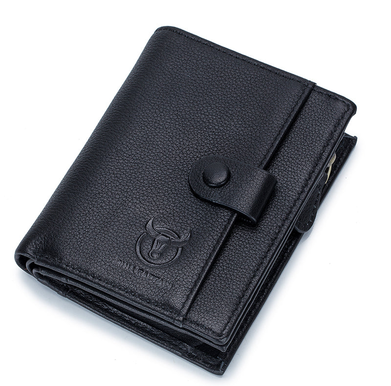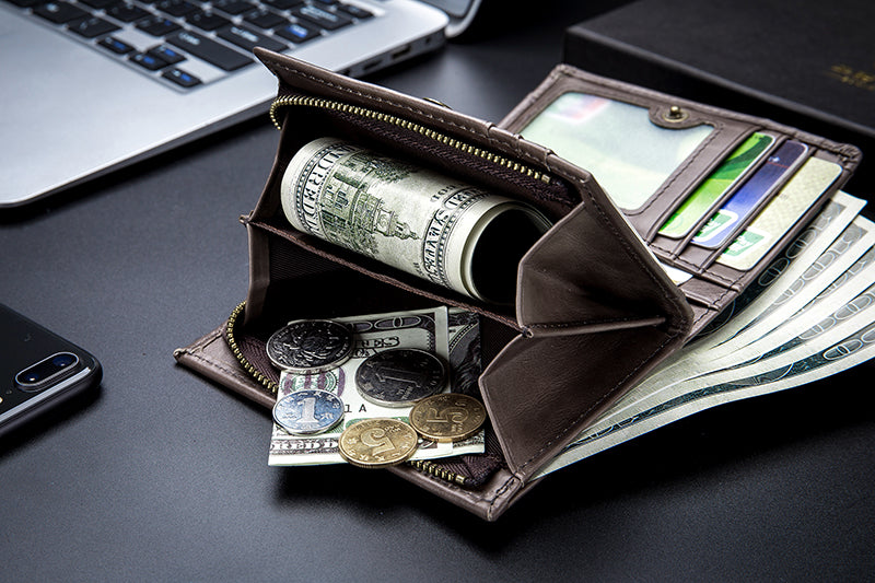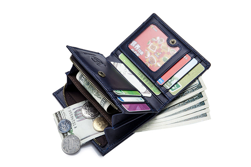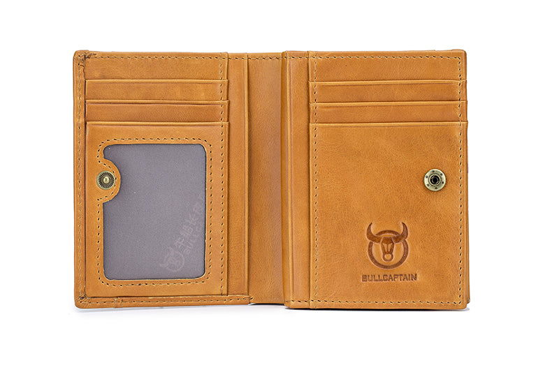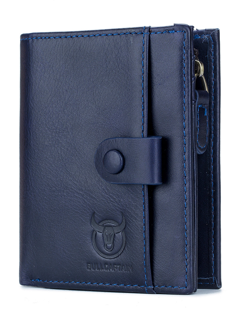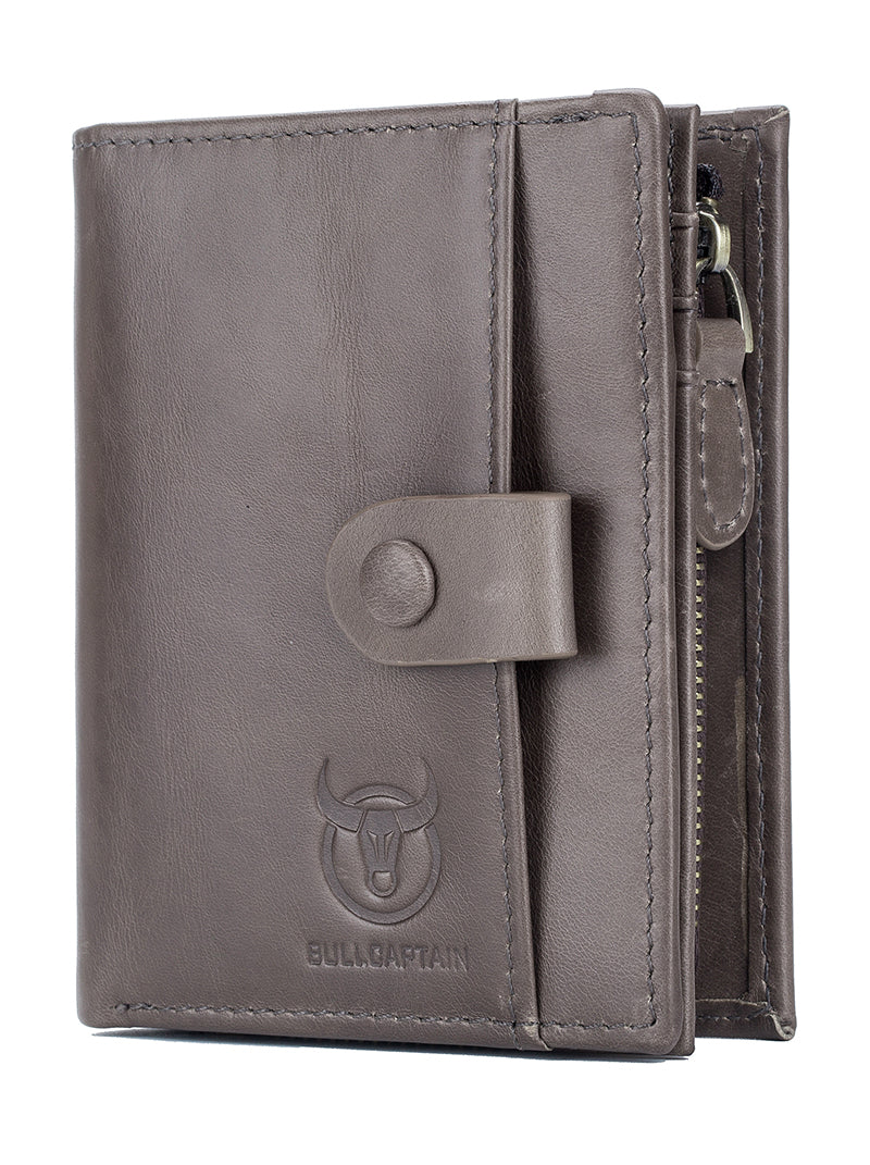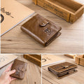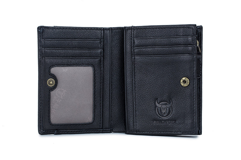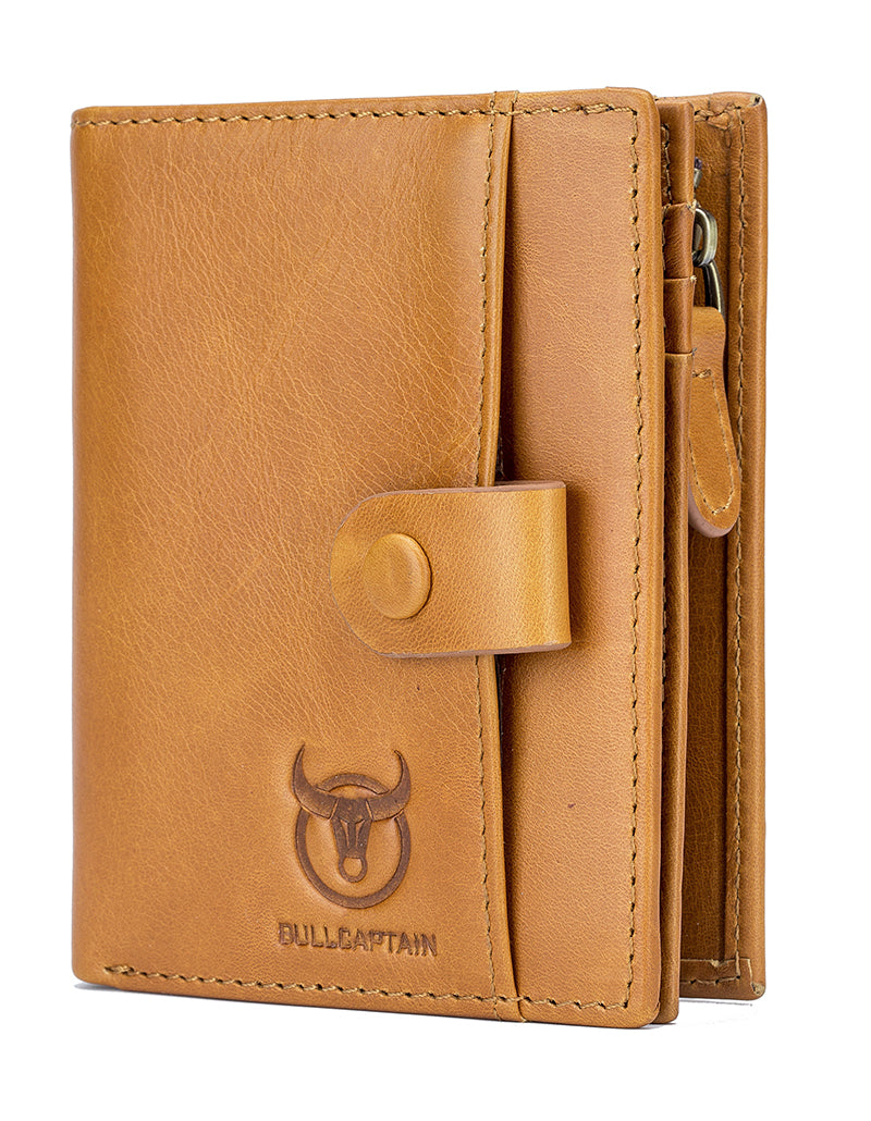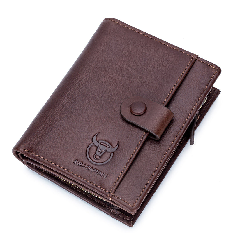Men's Genuine Leather Short Bifold Wallet with Zipper Minimalist Purse