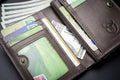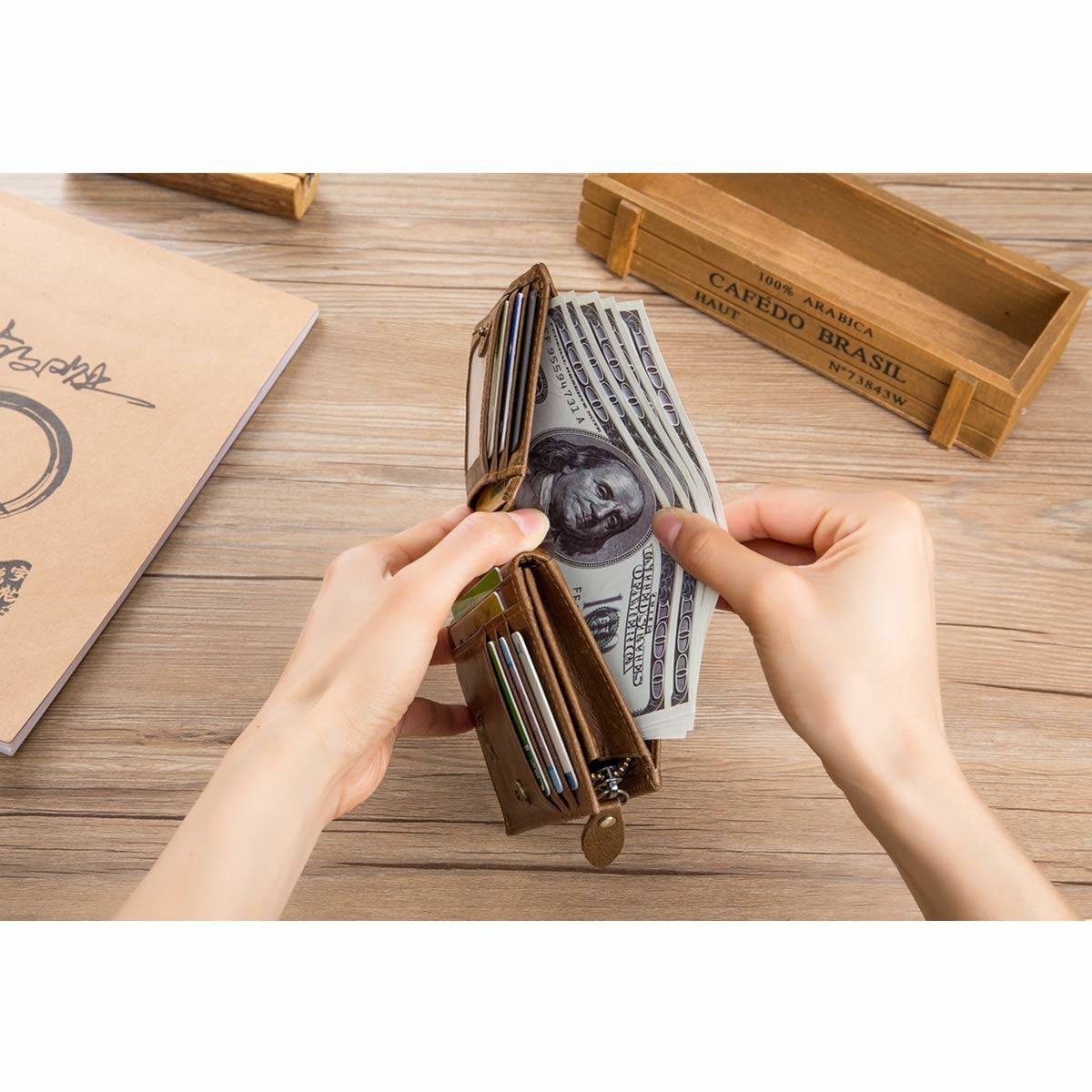 - Features: Vintage and practical. The style is chic and the color is trendy. The leather and lining are durable and comfortable, and the large capacity of the inside structure can meet your needs. Hope this wallet could be your loyal friend keeping company with you for every adventure both near and far.