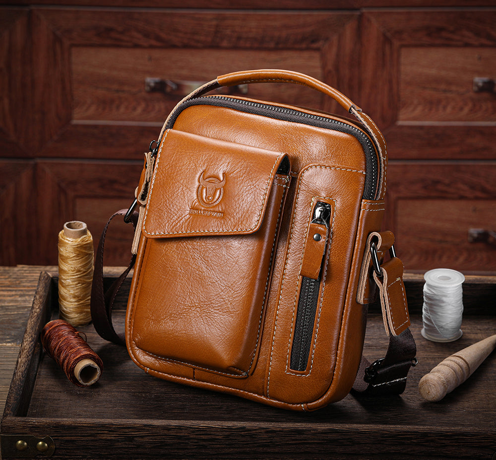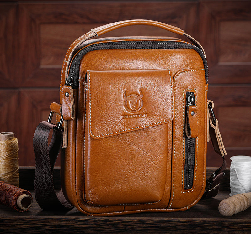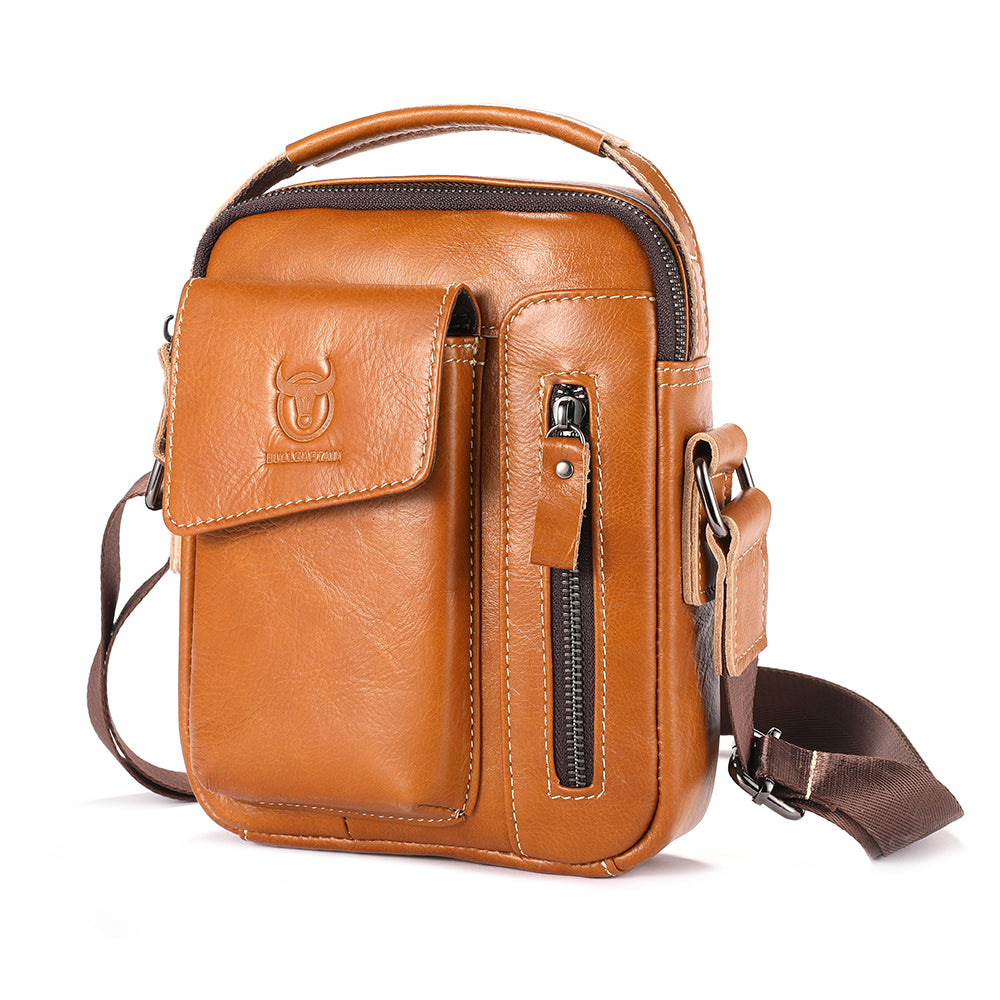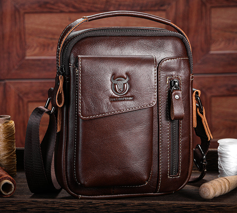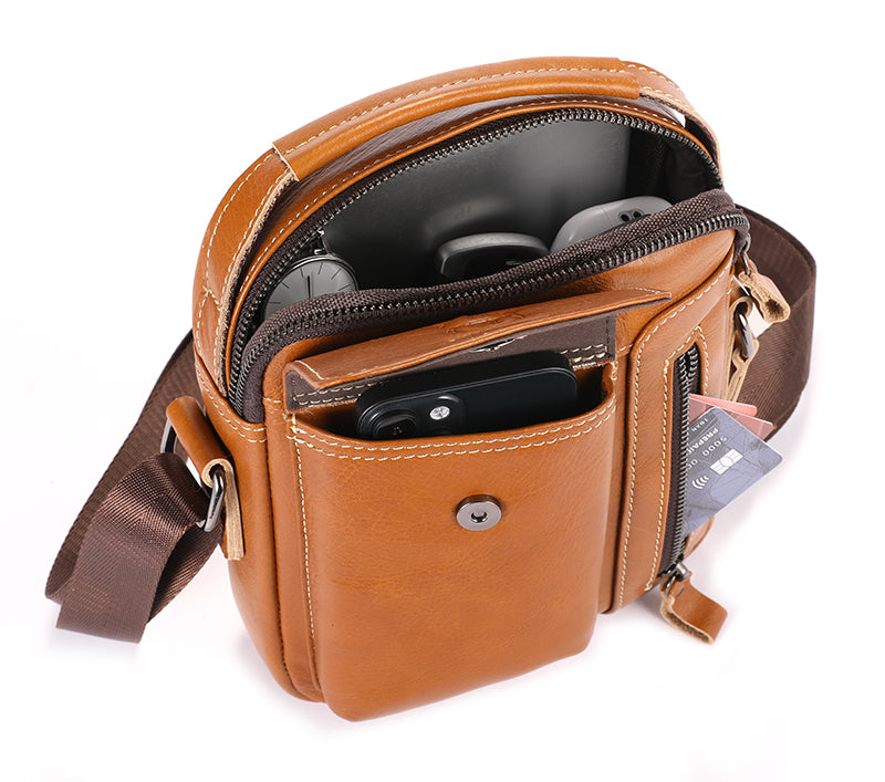Men's Genuine Leather Sling Bag Small Shoulder Crossbody Messenger Handbag