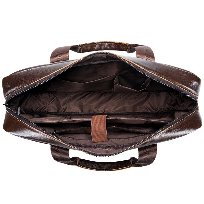 - Durable & Leather Business Messenger Briefcase Bag: This business briefcases bag is made of cowhide genuine leather, top-quality zippers, alloy/true brass hardware, silky smooth carrying straps, intricate reinforced stitching and premium cloth lining, zip closure, leather and excellent workmanship, contemporary type design, vintage, fashion and luxury, which shows your outstanding temperament when business outdoor travel.