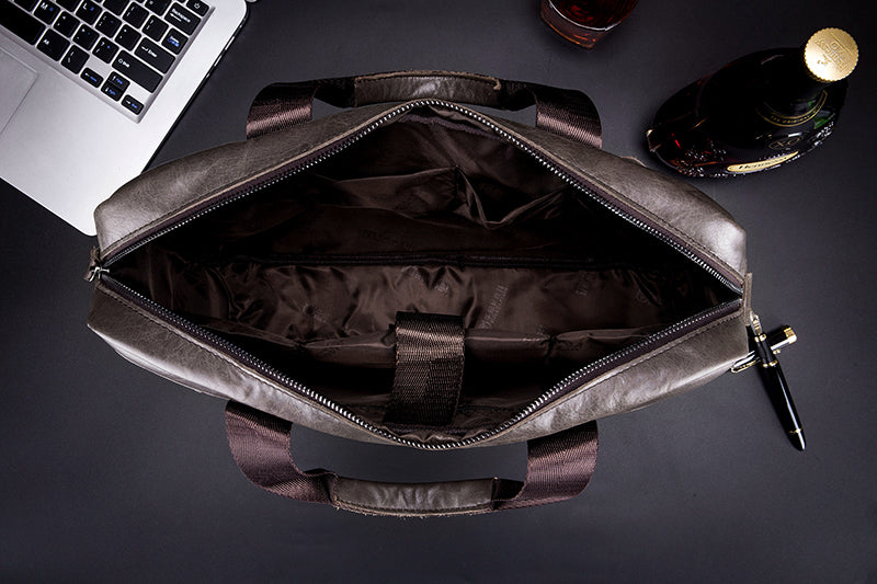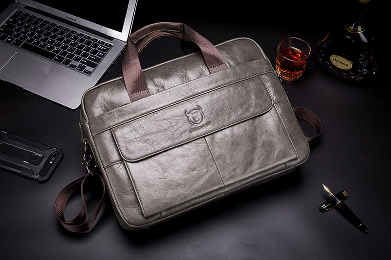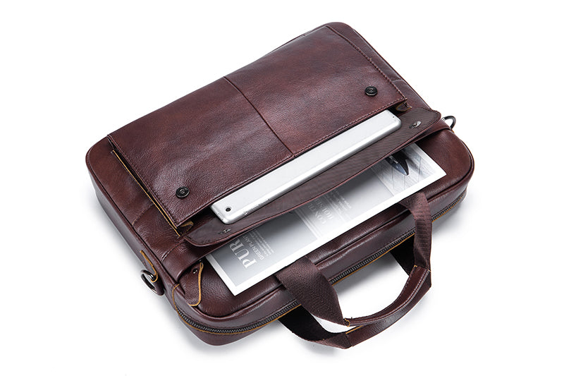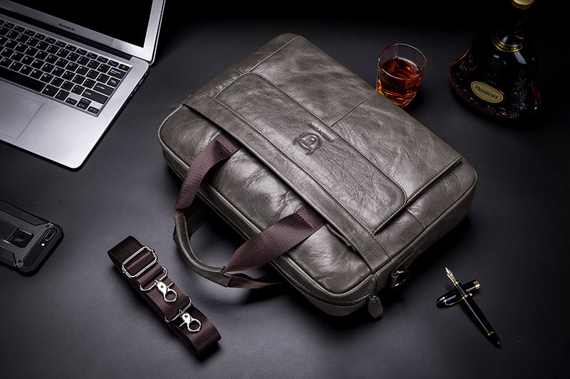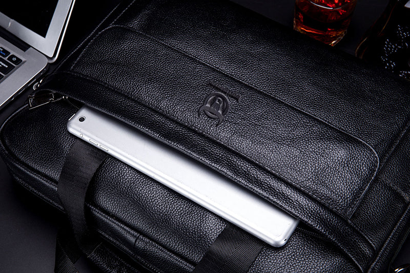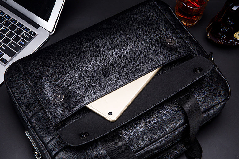 - Designed for the modern businessman, this bag is ideal for business travel or commuting, easily accommodating all your essential items including documents, notebooks, and electronics. With its combination of functionality and style, the leather laptop bag is the ultimate accessory for any professional looking to make a statement.