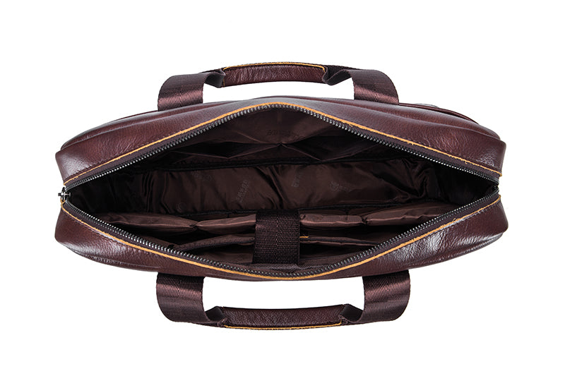 - The briefcase crafted from high-quality leather, exudes sophistication and durability, ensuring it can withstand the demands of daily use.