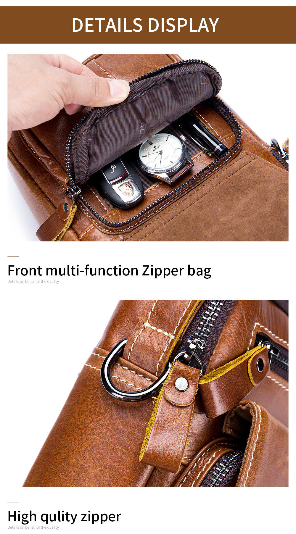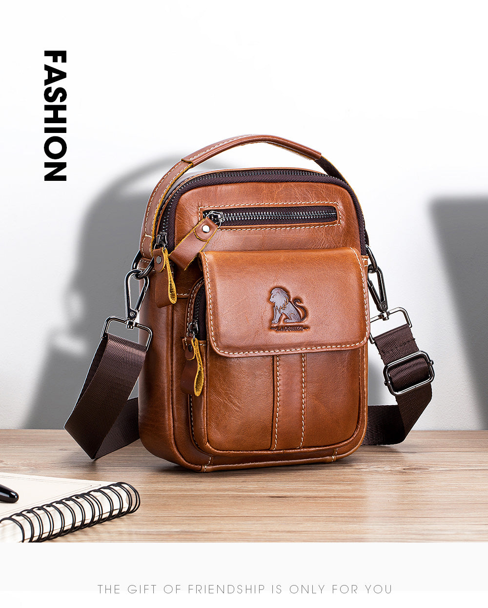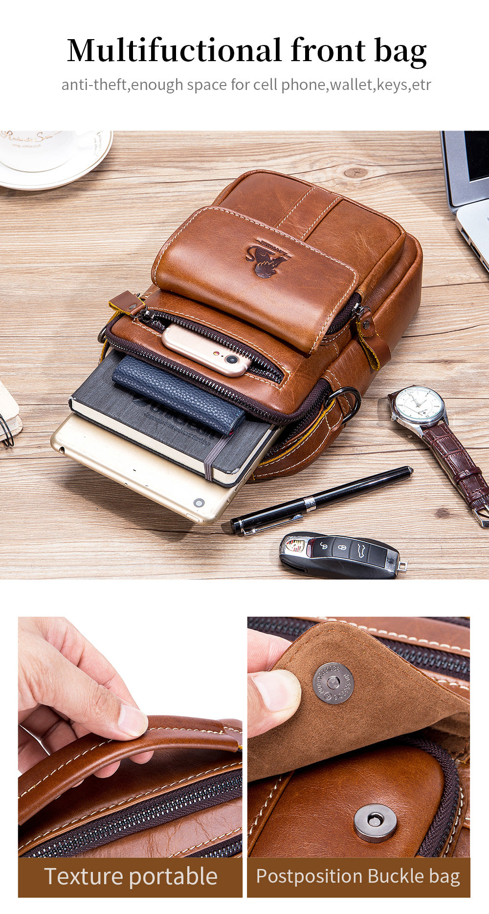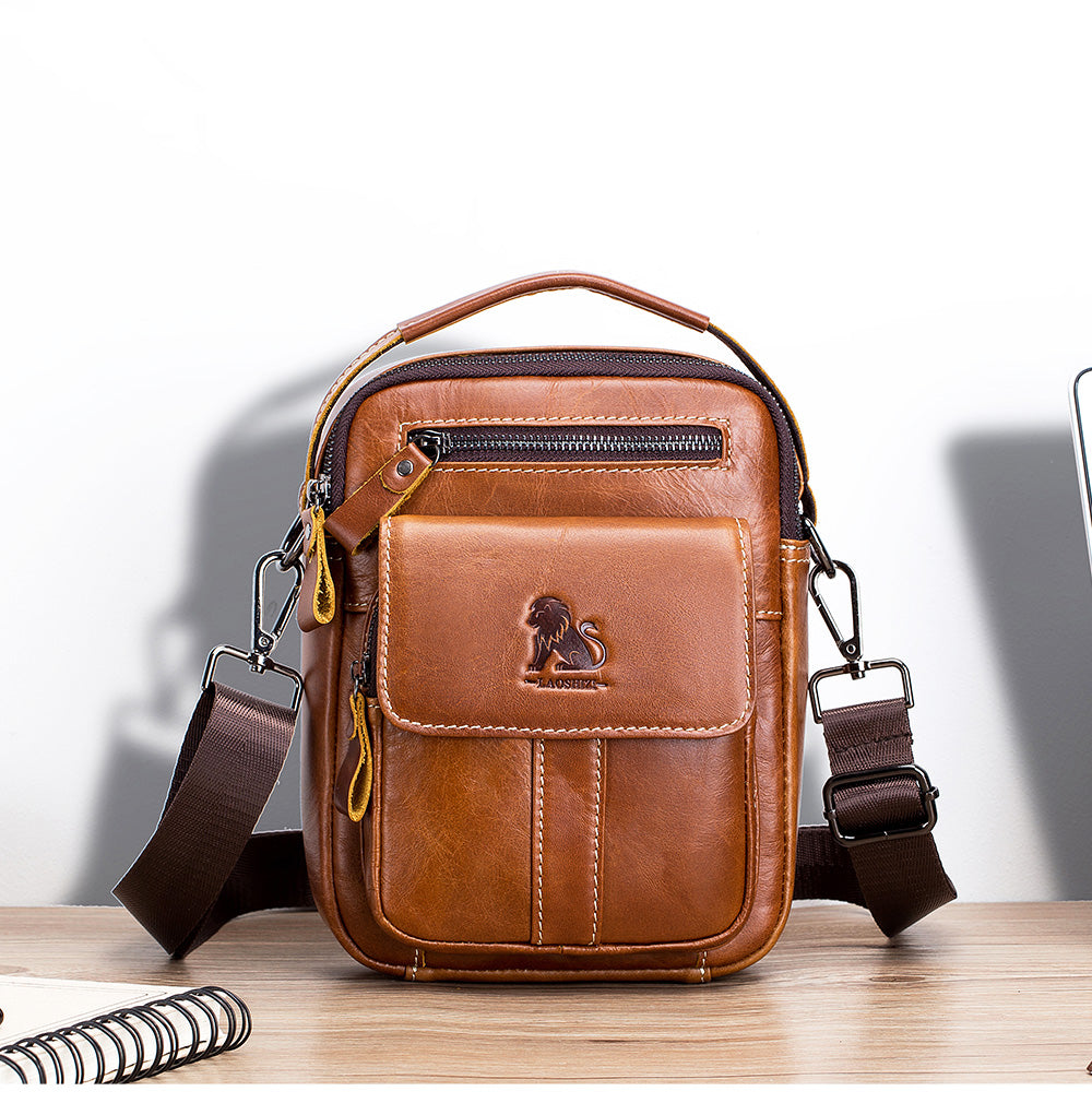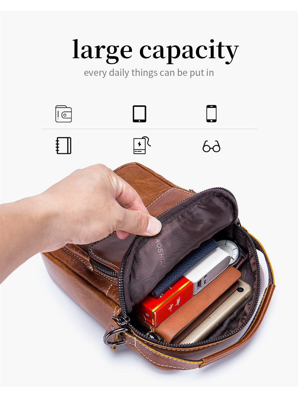 Men's Leather Purse Small Messenger Bag Zipper Crossbody Shoulder Bag