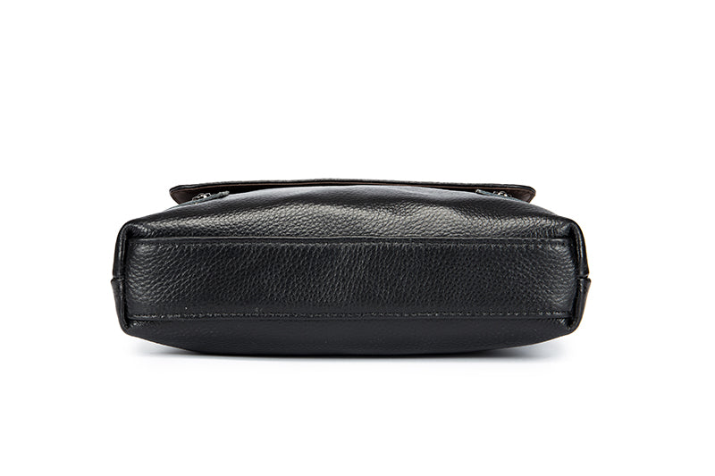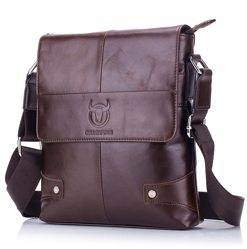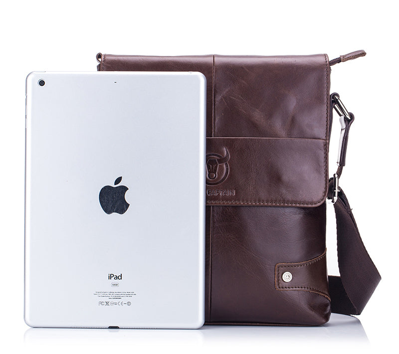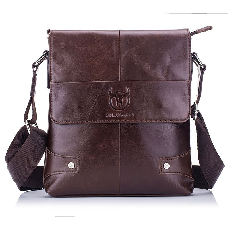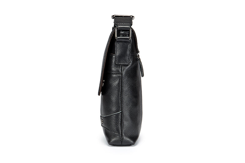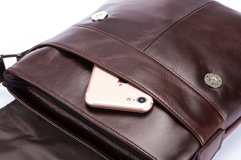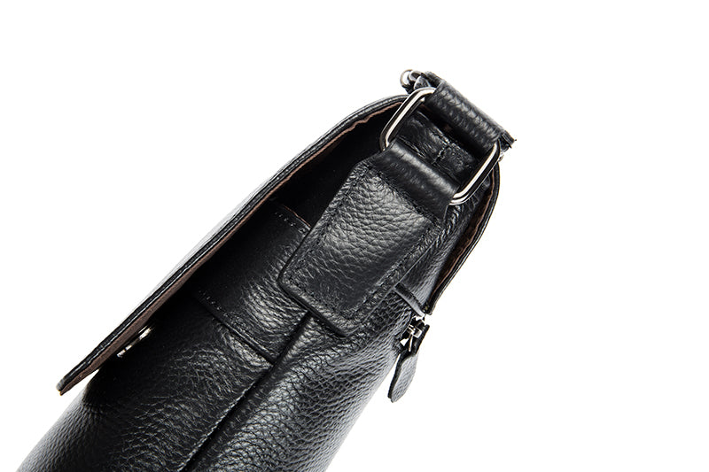 - This cross body bag is made of high quality all genuine cowhide leather.Polyester lining,Men's Gneuine Leather Shoulder Bag. Front flap with magnetic Closure.Dimensions: 9.8"x9"x1.7"(HxLxW)