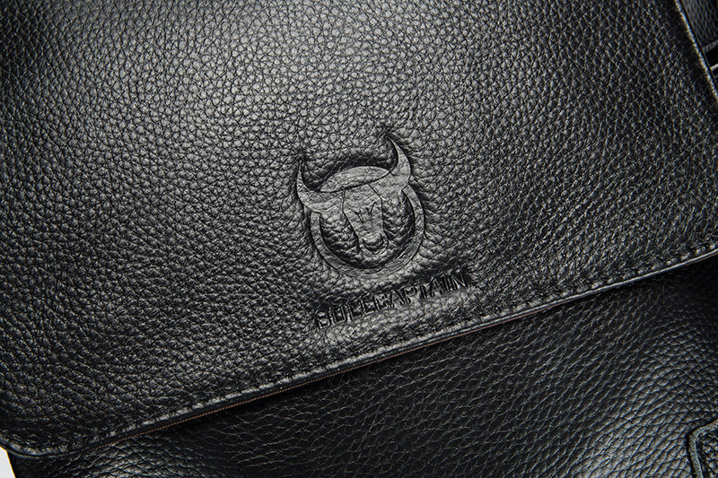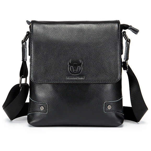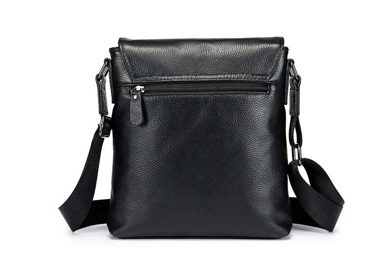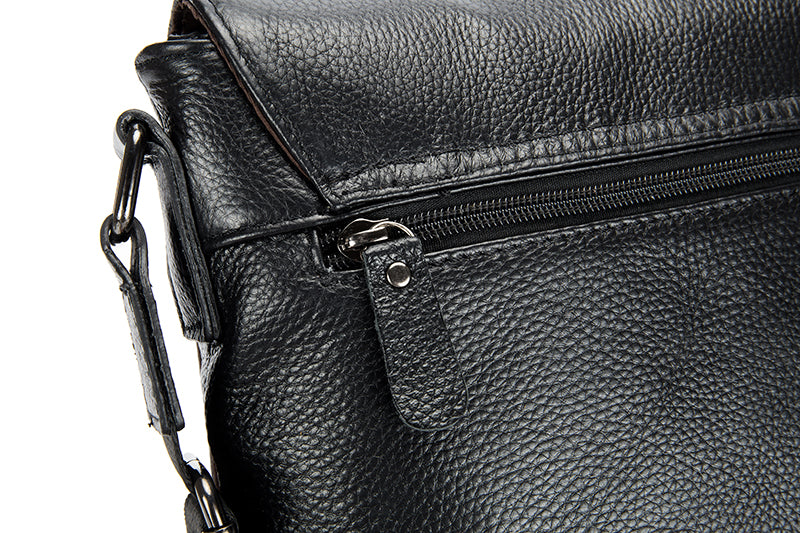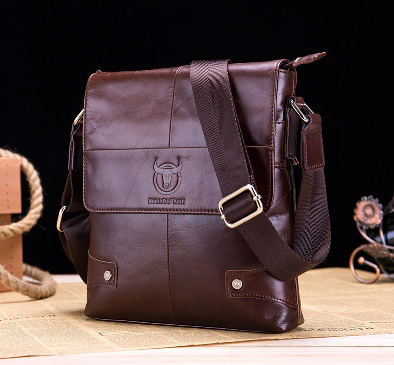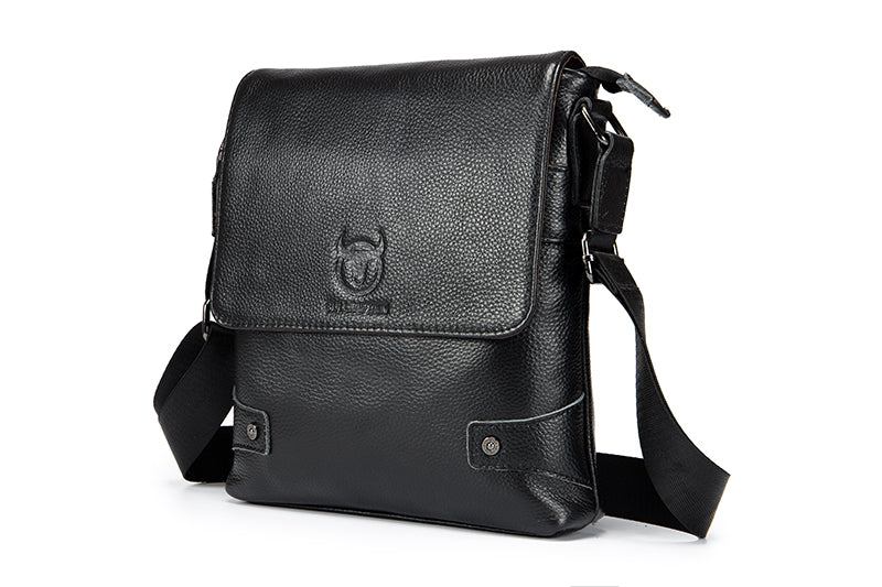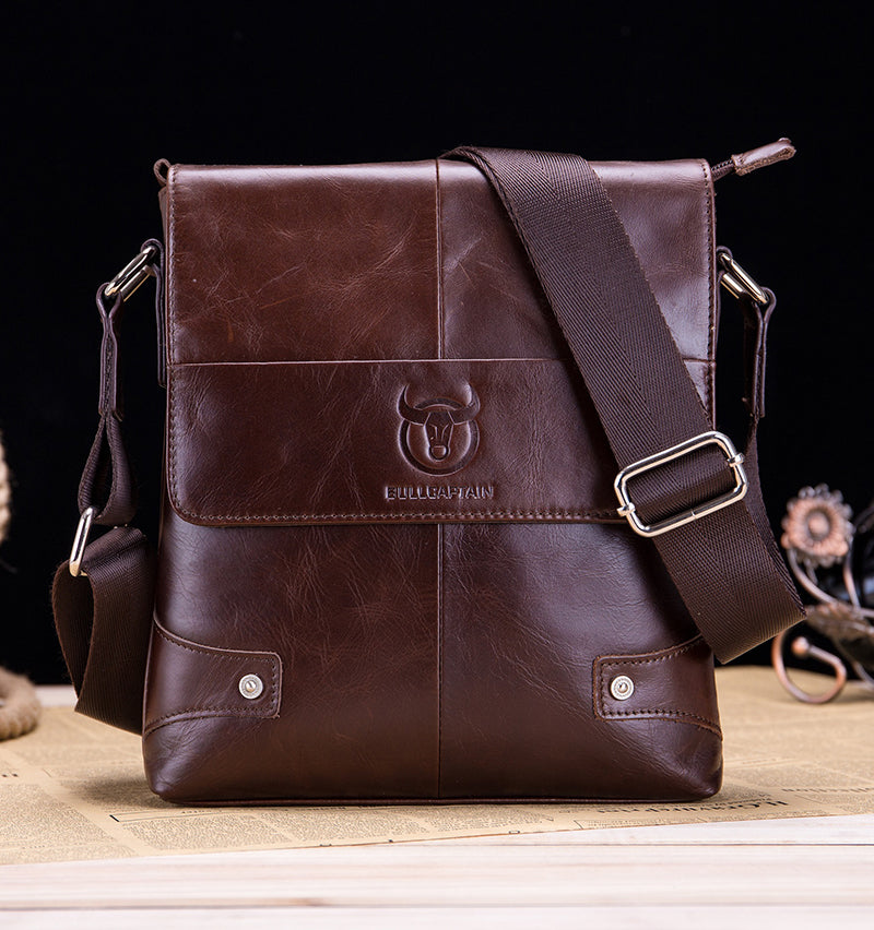 - This cross body bag is made of high quality all genuine cowhide leather.Polyester lining,Men's Gneuine Leather Shoulder Bag. Front flap with magnetic Closure.Dimensions: 9.8"x9"x1.7"(HxLxW)