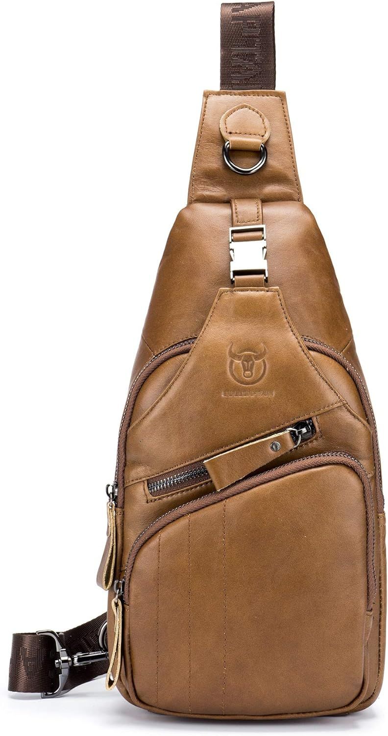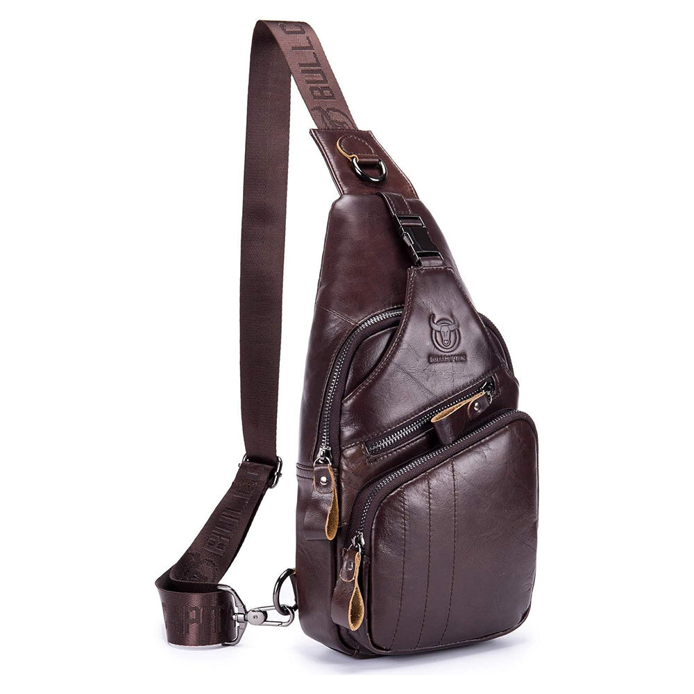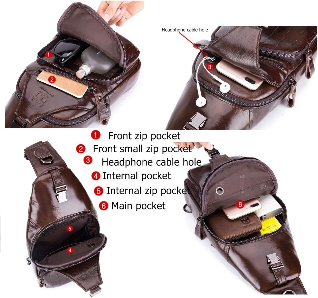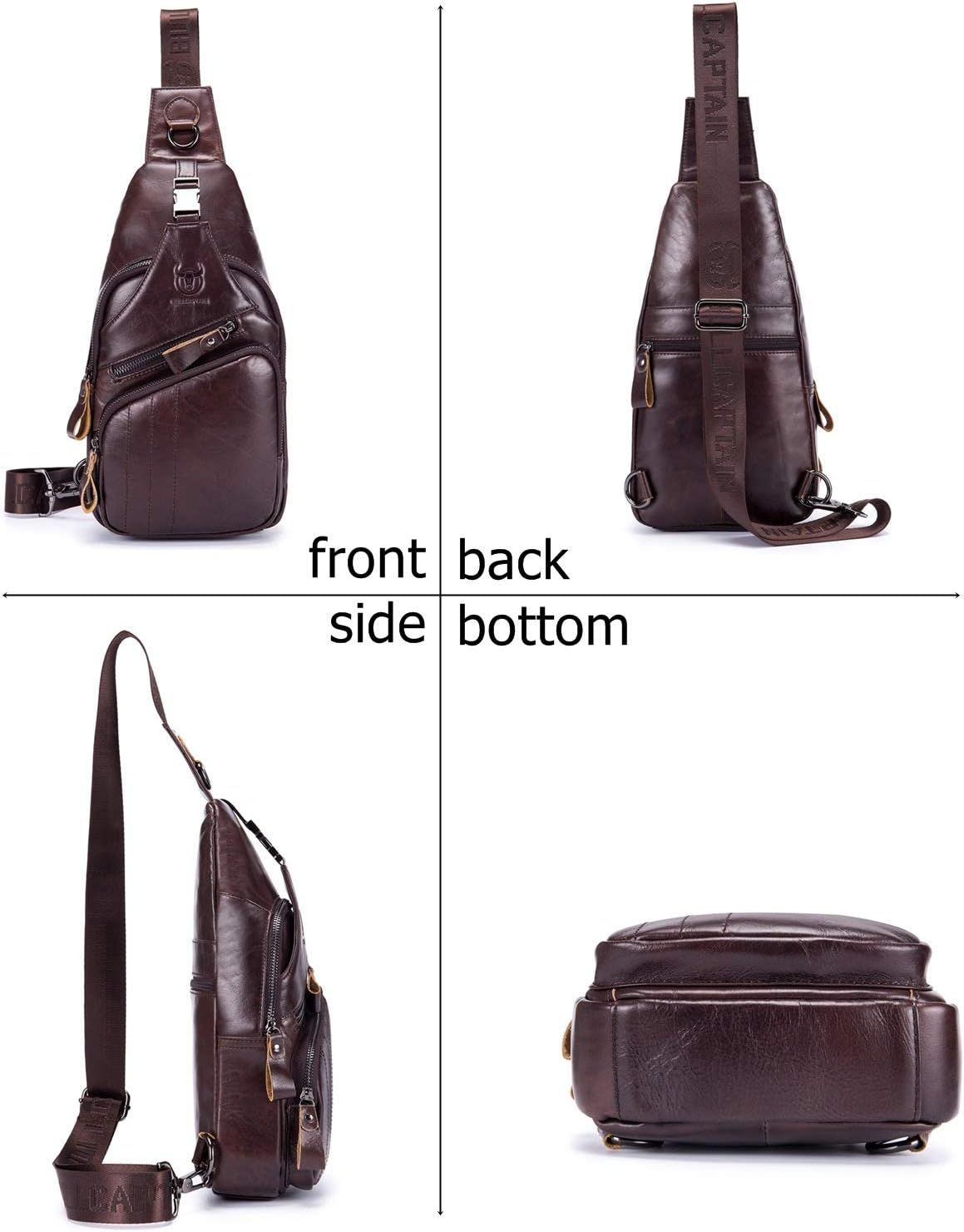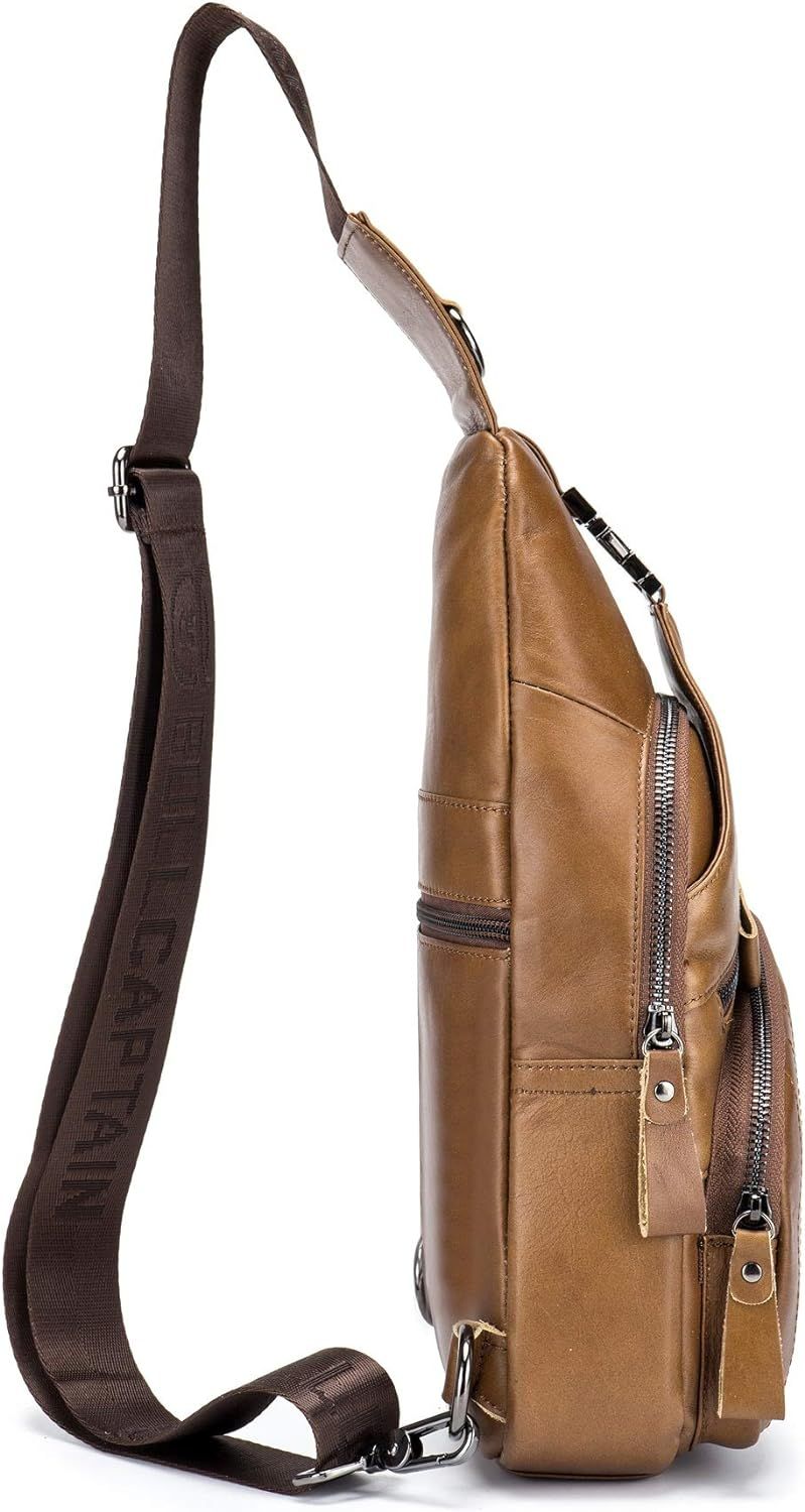 Men's Leather Sling Bag Casual Crossbody Chest Bags Travel Daypack
