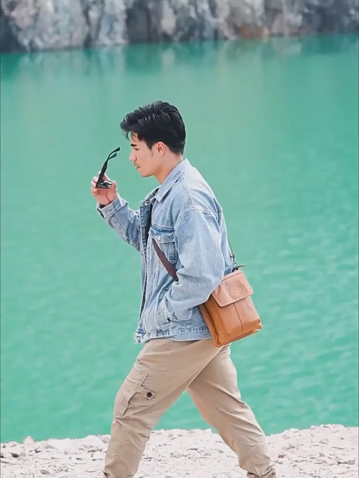 Men's Leather Sling Shoulder Crossbody Bag Messenger Outdoor Business Bag