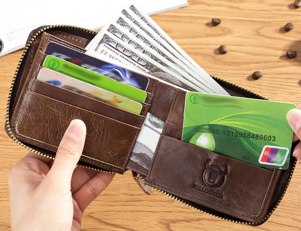 Men's Leather Wallet RFID Blocking Bifold Wallets Credit Cards Holder