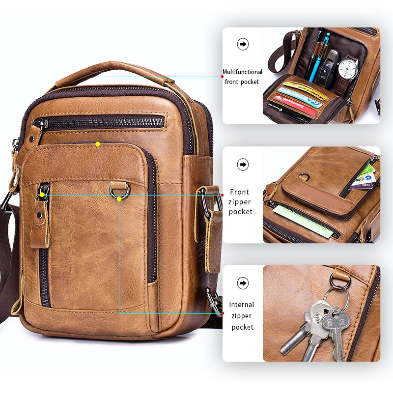Men's Shoulder Bag Leather Shoulder Vintage Casual Leather Business Bag