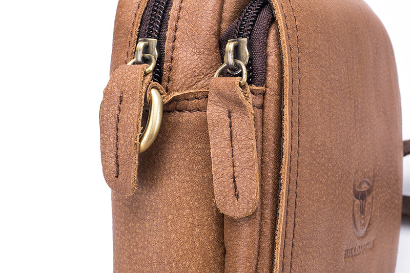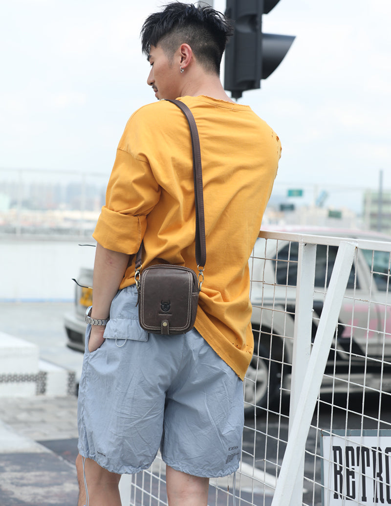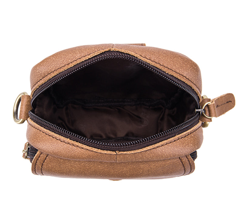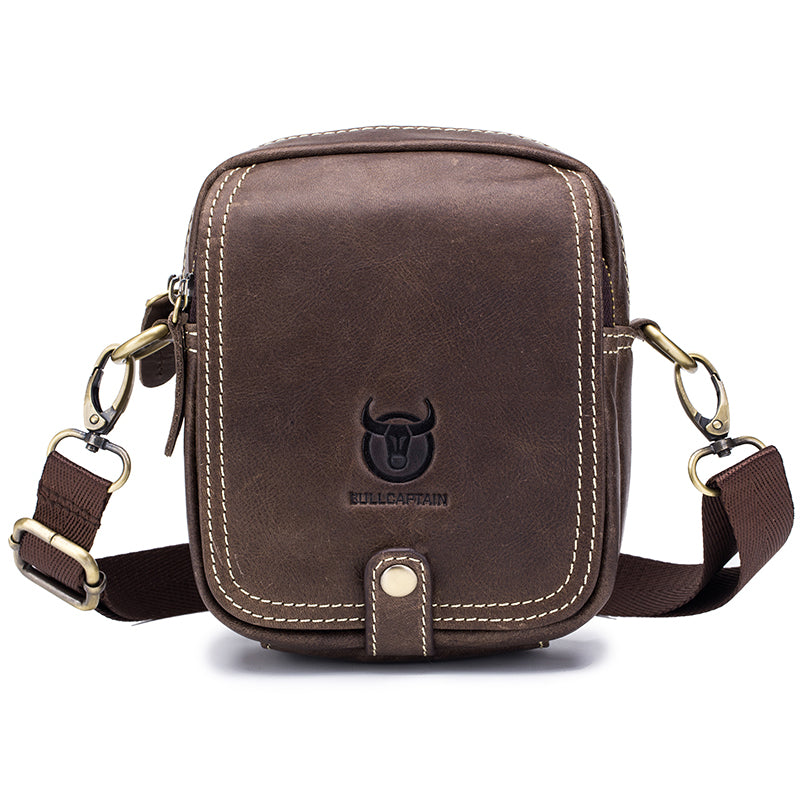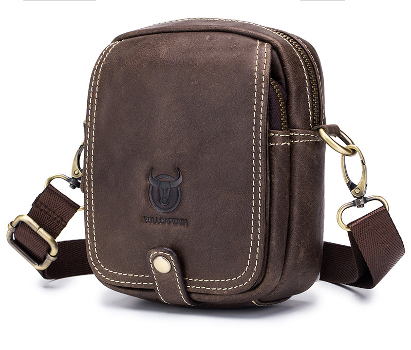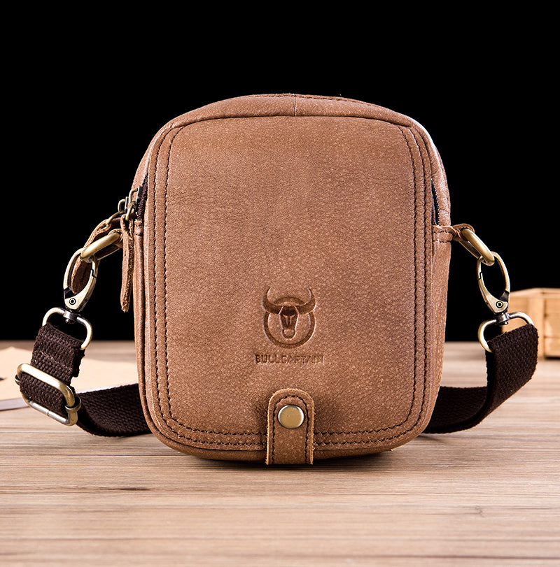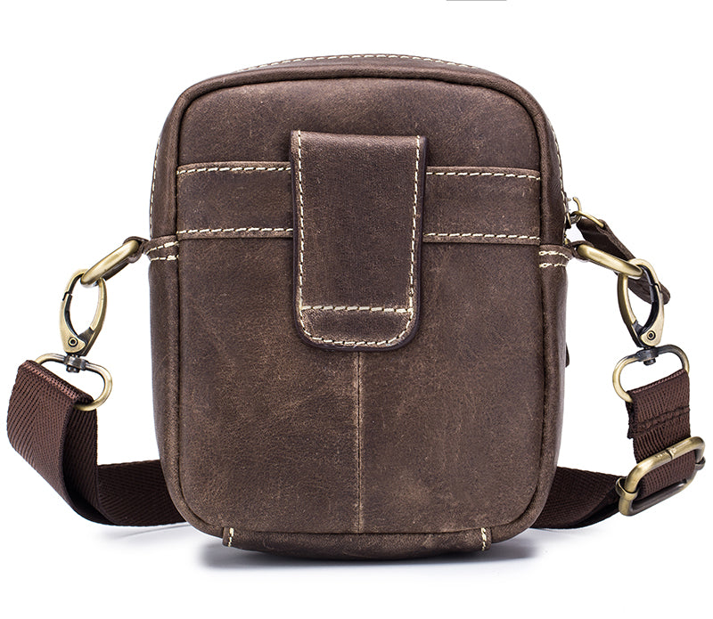Men's Small Shoulder Genuine Leather Bag Cell Phone Belt Waist Bag