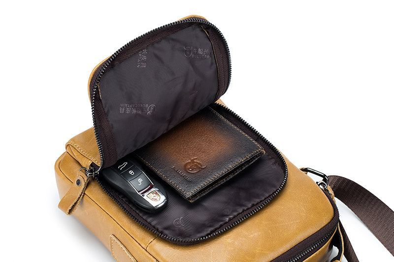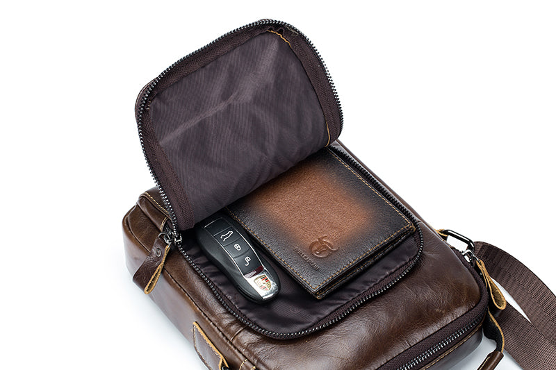 - Whether you're heading to a business meeting, going on an outdoor adventure, or simply hanging out with friends, this bag is the ideal choice. Its compact size makes it easy to carry around, while the multiple compartments provide ample space for all your essentials.