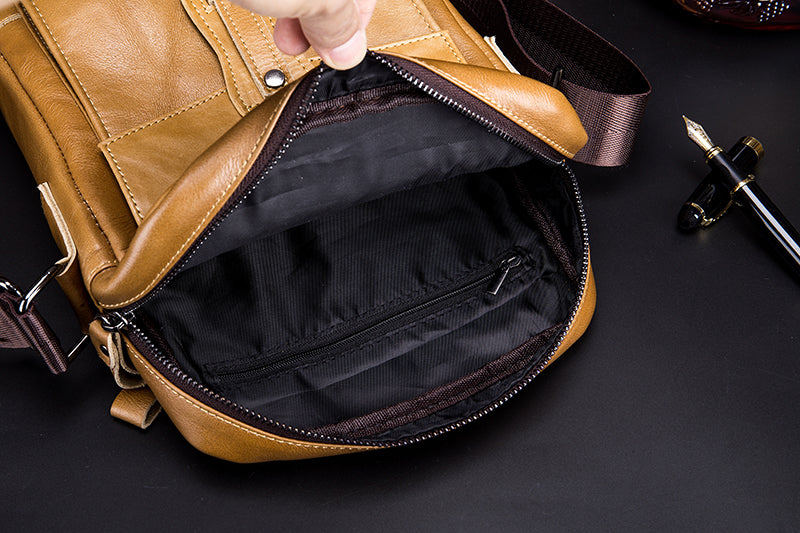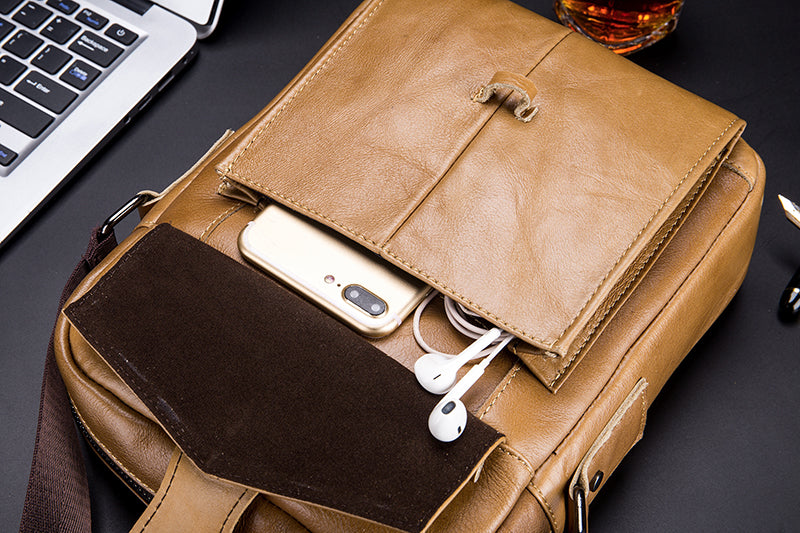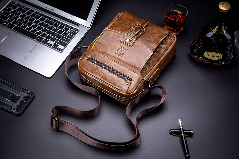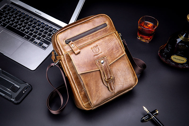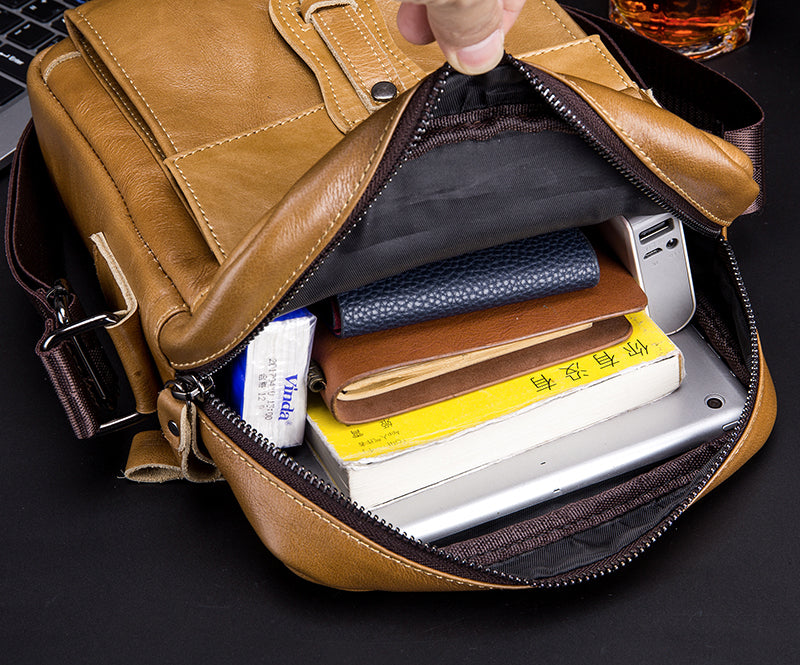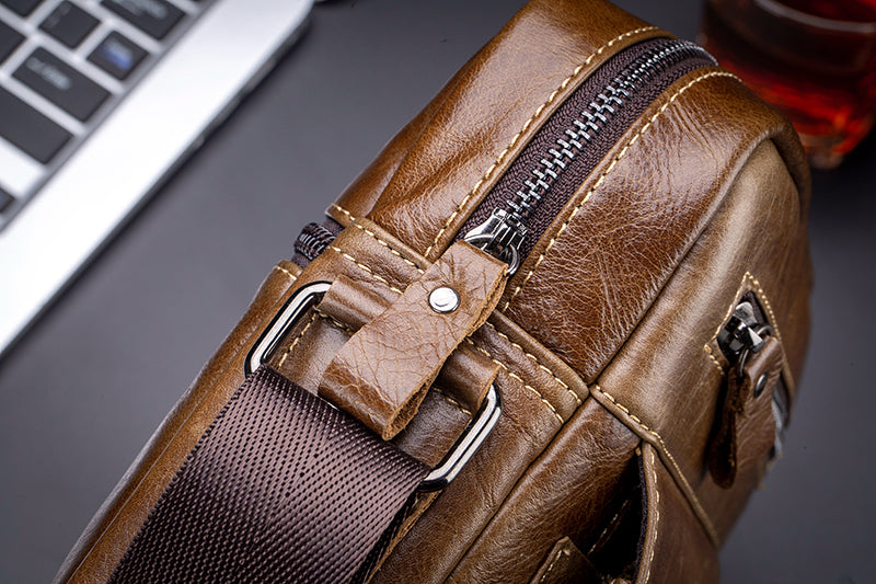 Men's Vintage Leather Small Messenger Bag Business Travel Shoulder Bag