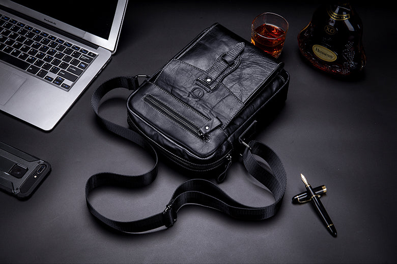 - Practical Structure: This compact satchel men purse comes with large capacity: 1 main zipper pocket ,1 front zip pocket , 1 front flap pocket,1 back zip pocket on back , 1 inner zipper pocket.This men’s shoulder bag has the perfect amount of room and number of compartments to keep everything in separate areas and completely organized.