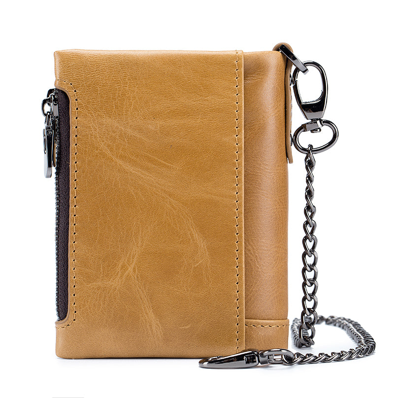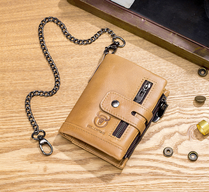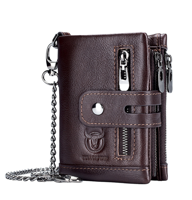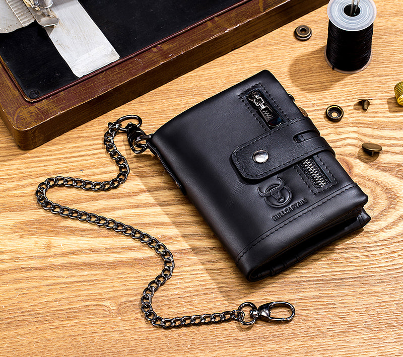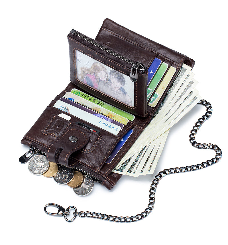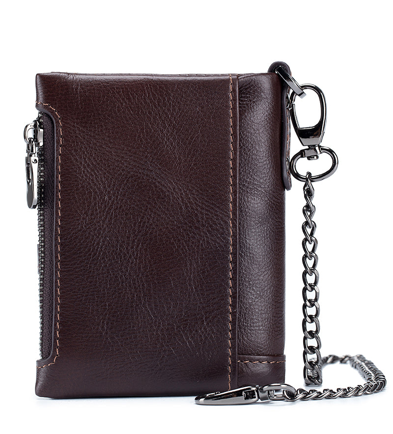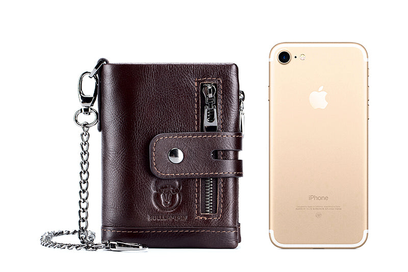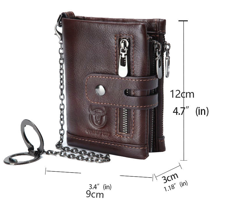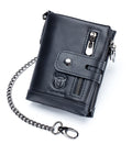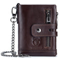 Men's Wallet Genuine Leather Bifold Wallets With Anti-theft Chain