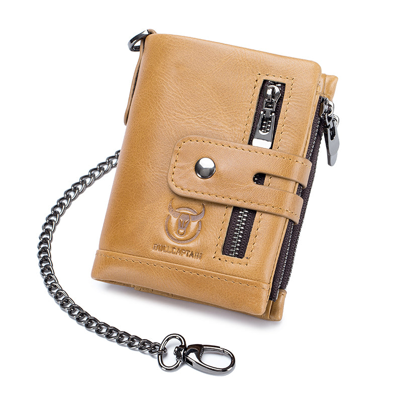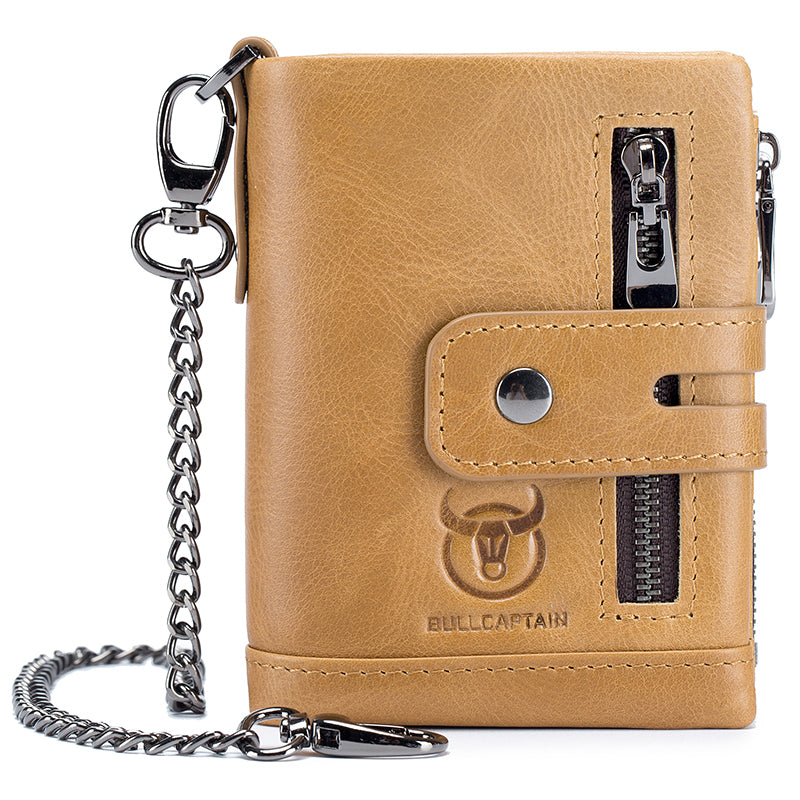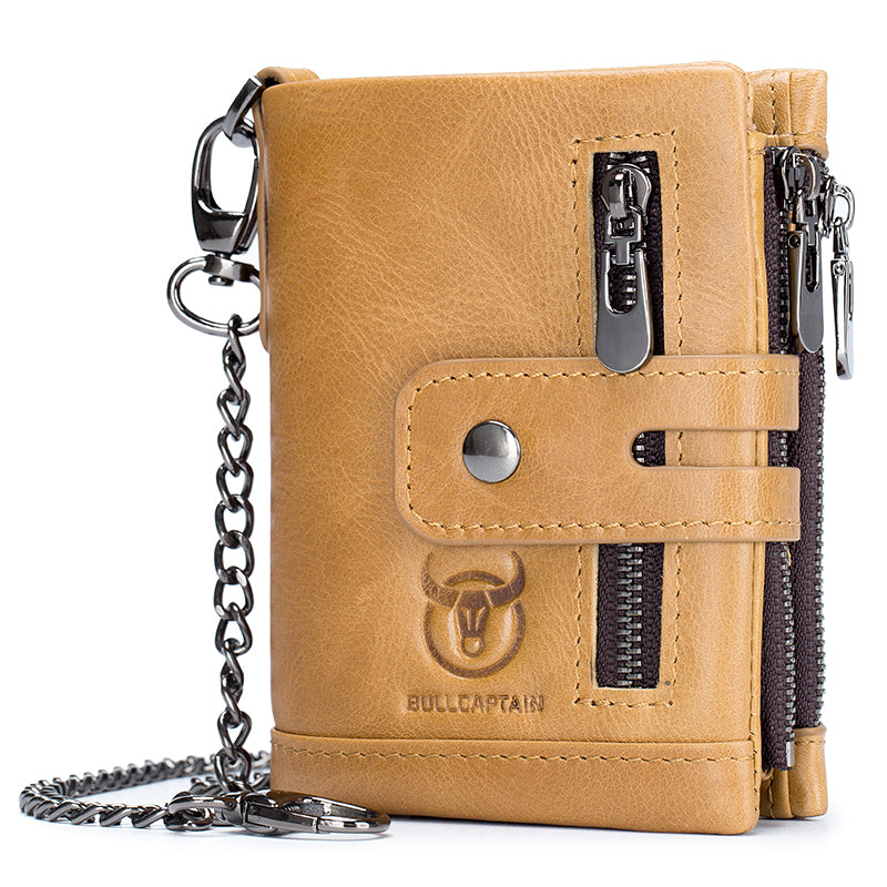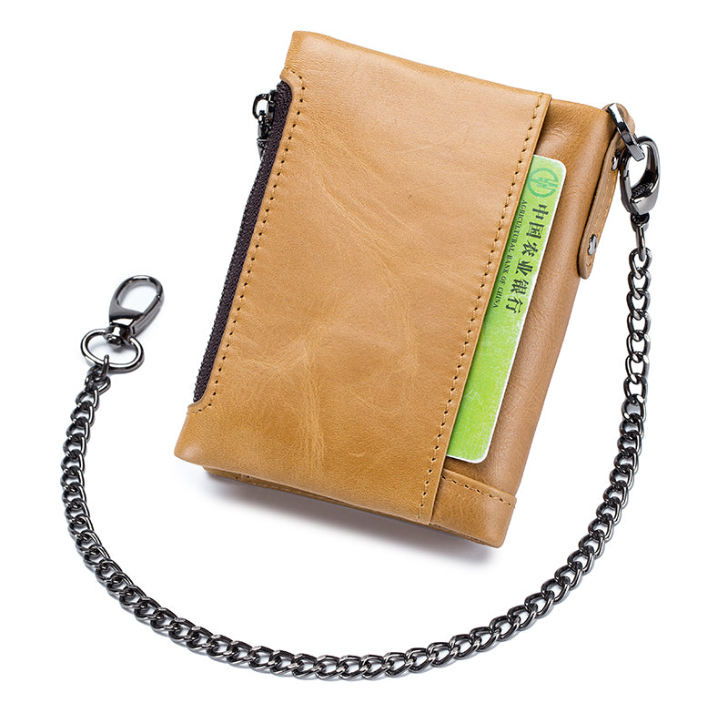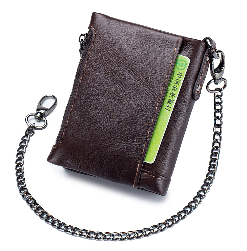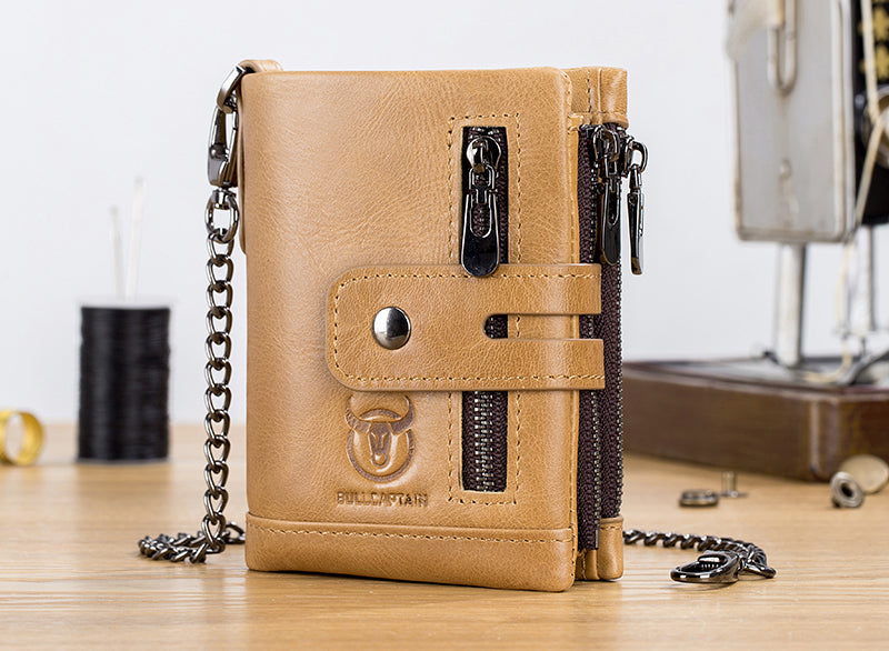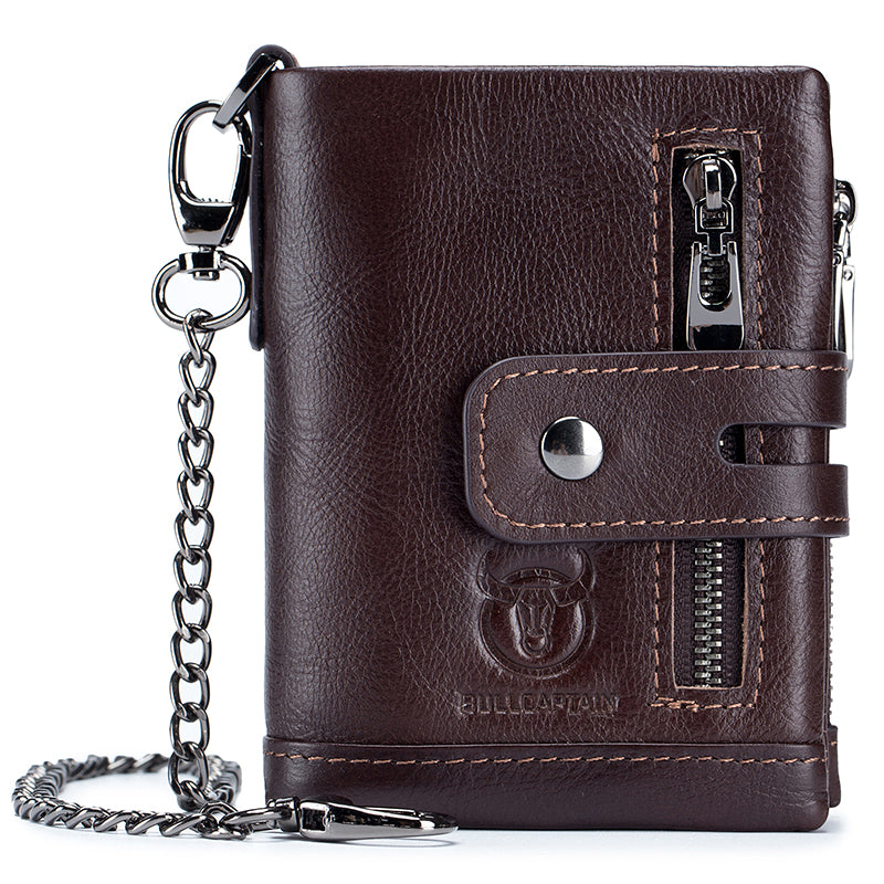 Men's Wallet Genuine Leather Bifold Wallets With Anti-theft Chain