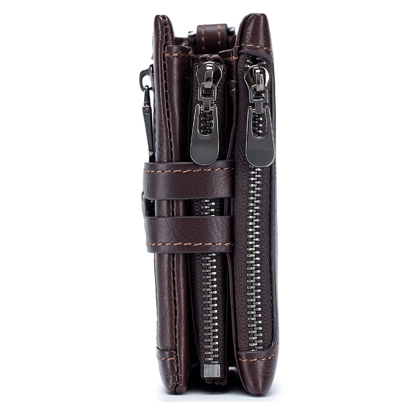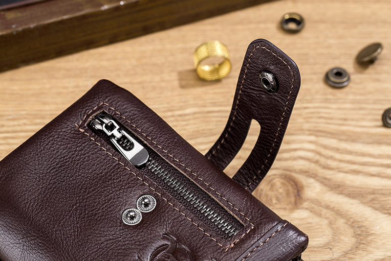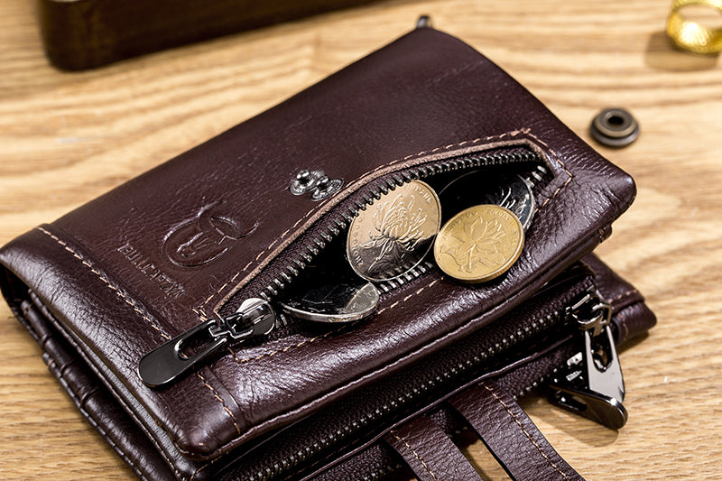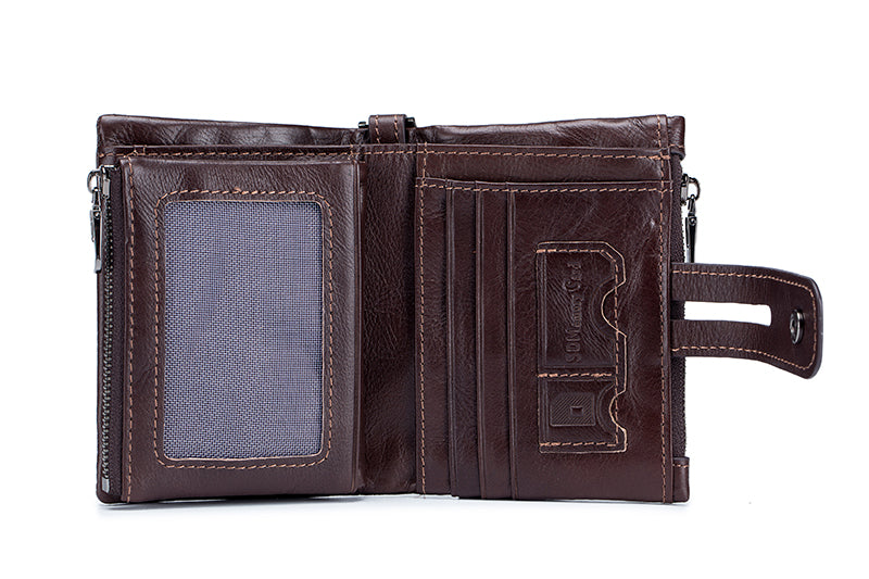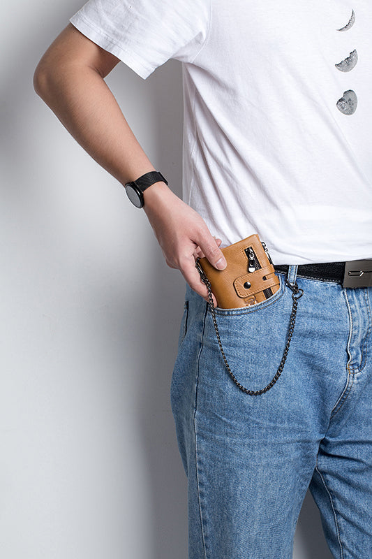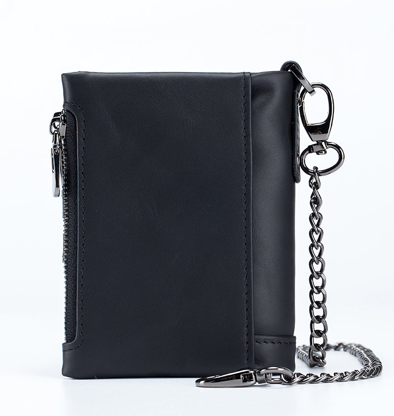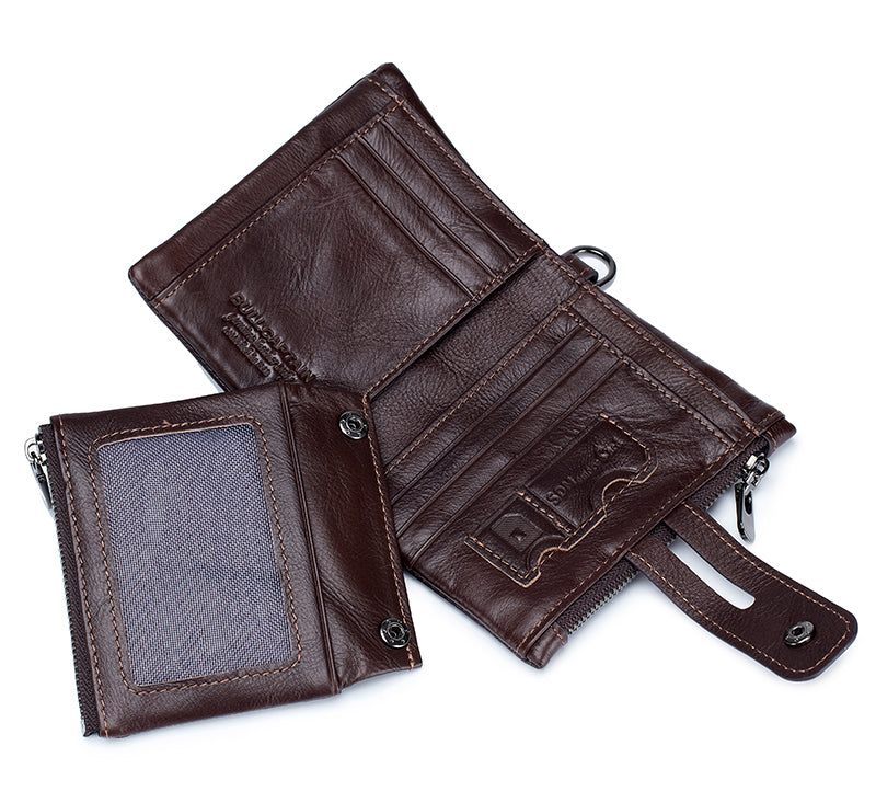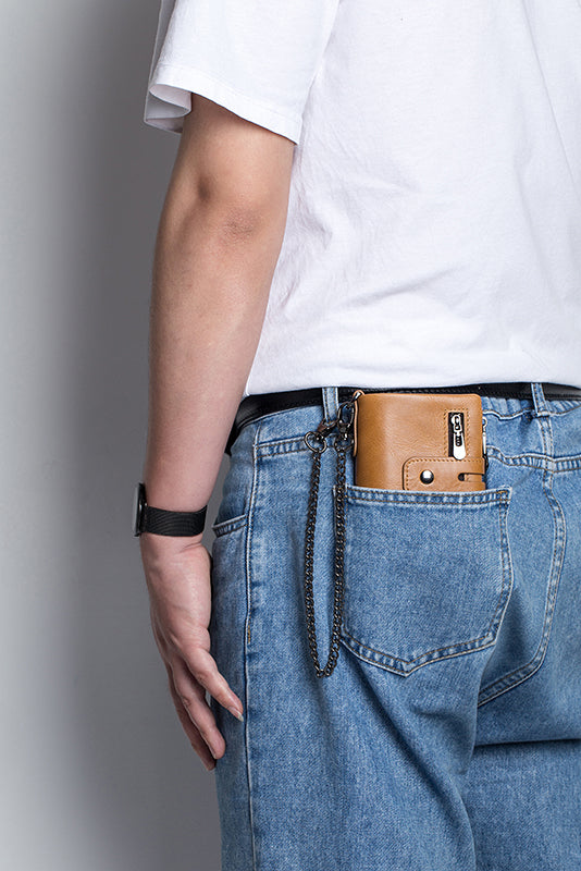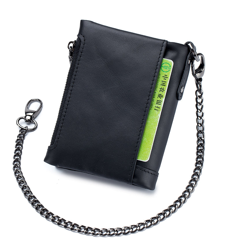 Men's Wallet Genuine Leather Bifold Wallets With Anti-theft Chain
